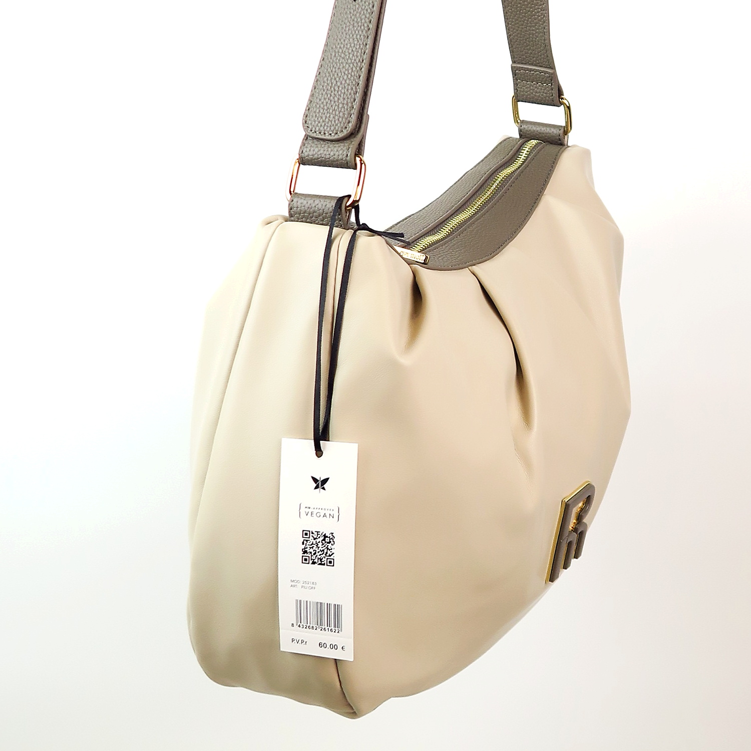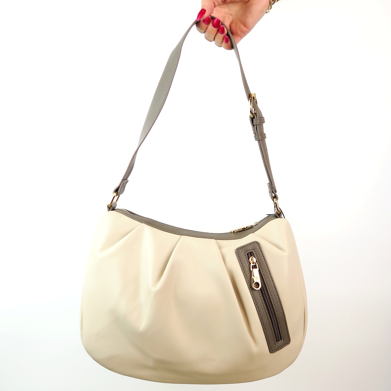 Kvalitná kabelka značky PEPE MOLL. Model v béžovej farbe. Zvršok vyrobený z ekologickej kože.