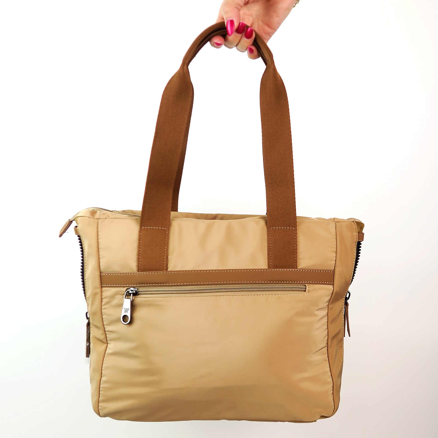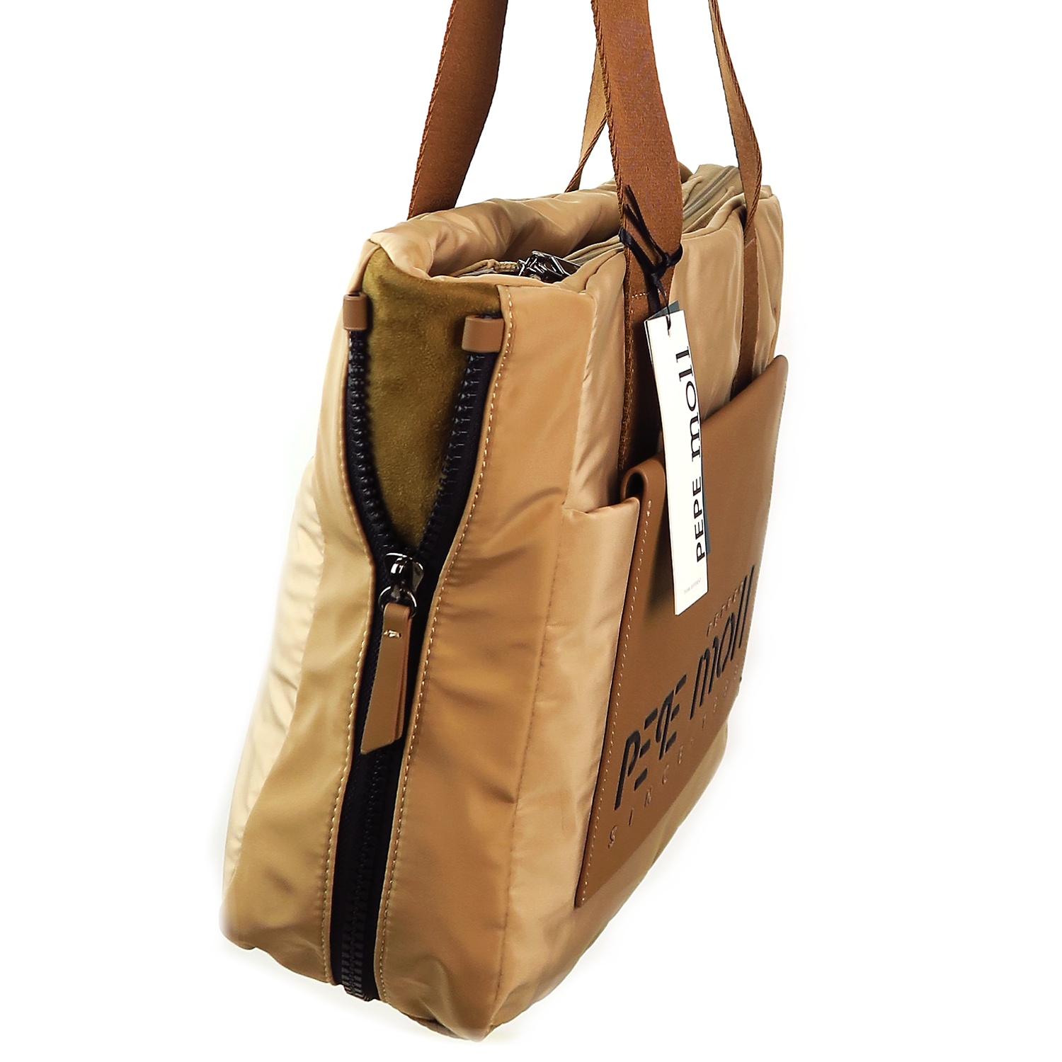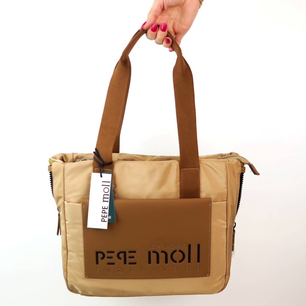 Kvalitná kabelka značky PEPE MOLL. Model v béžovej farbe. Zvršok vyrobený z ekologickej kože.