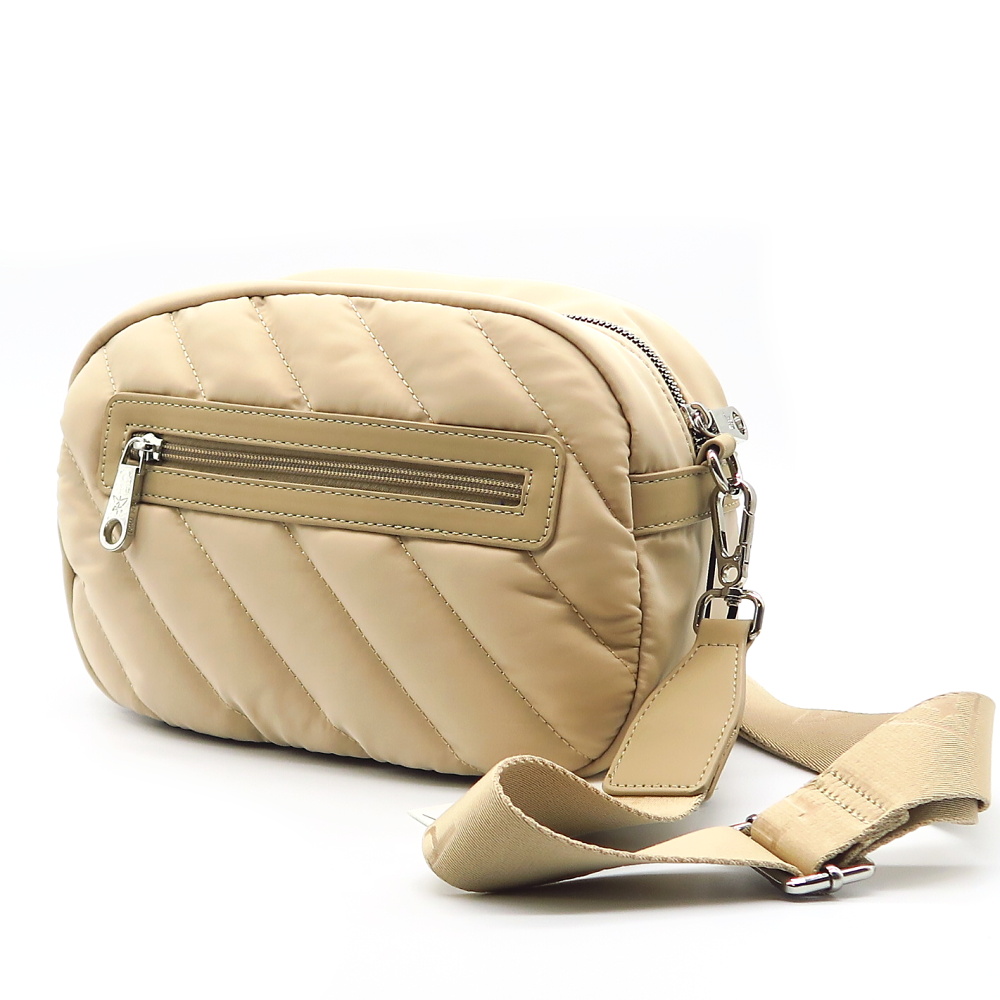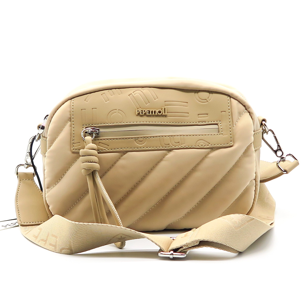 Štýlová kabelka od značky PEPE MOLL. Model v béžovej farbe. Zvršok vyrobený z kvalitného textilného materiálu a eko-kože.
