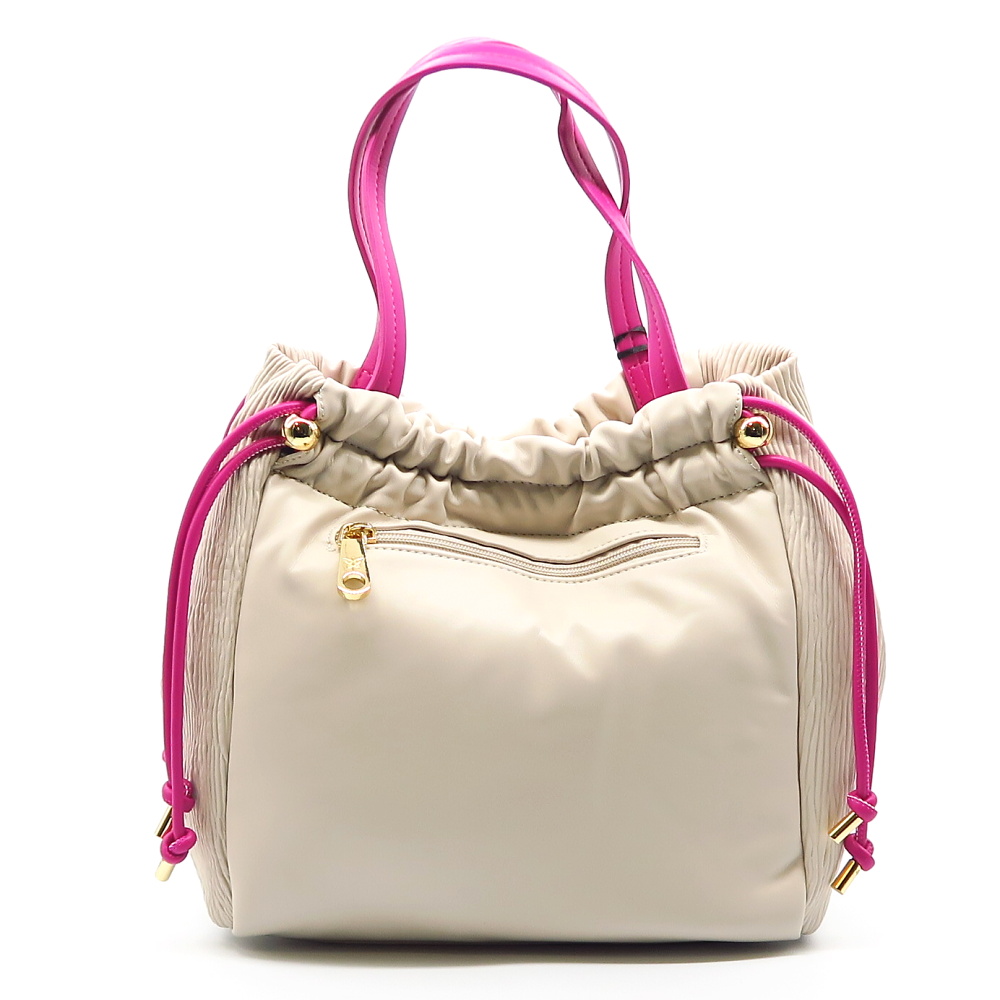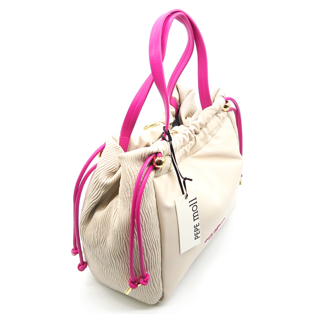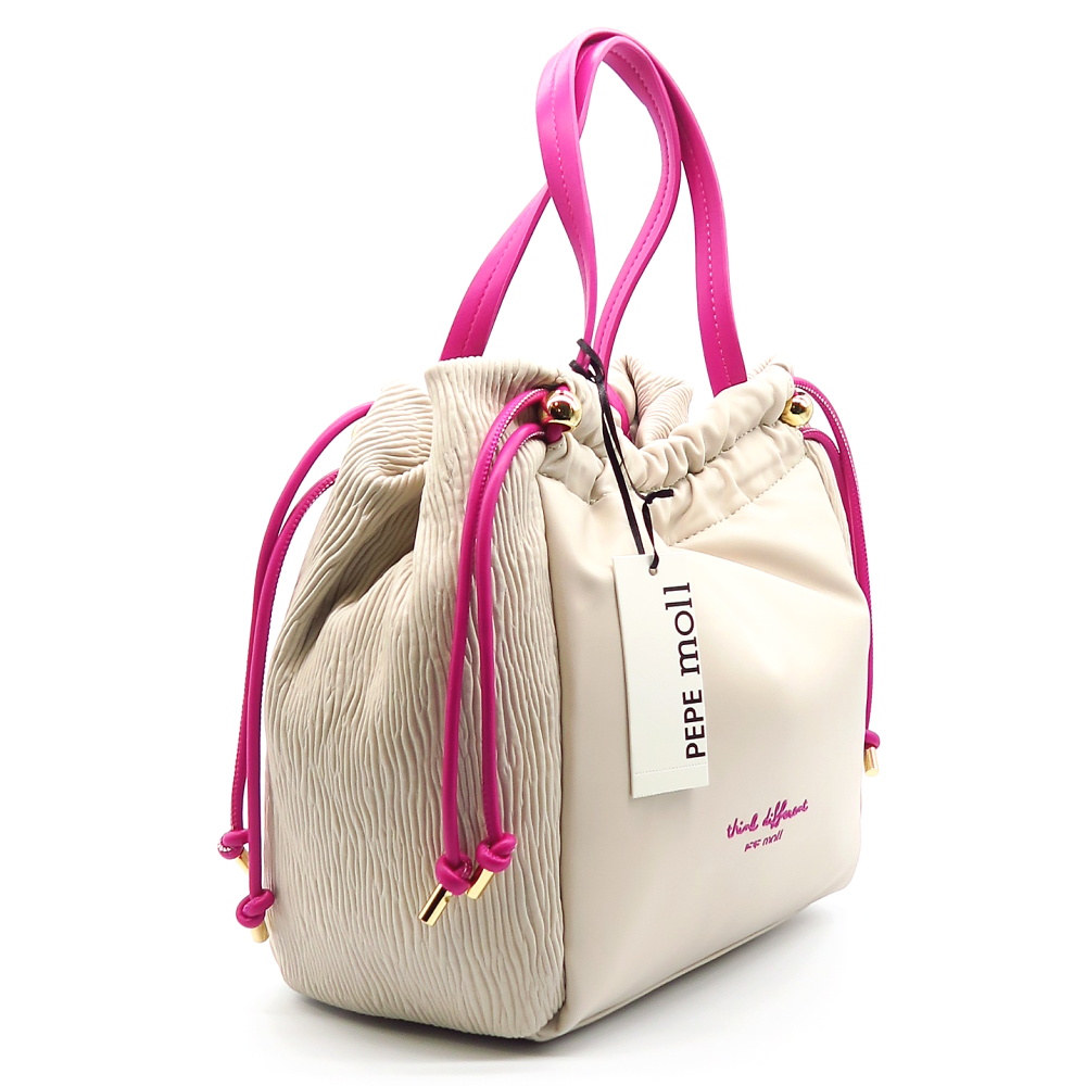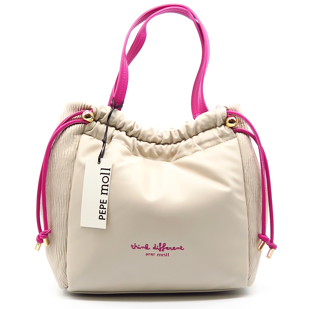 Štýlová kabelka od značky PEPE MOLL. Model v béžovej farbe. Zvršok vyrobený z ekologickej kože.