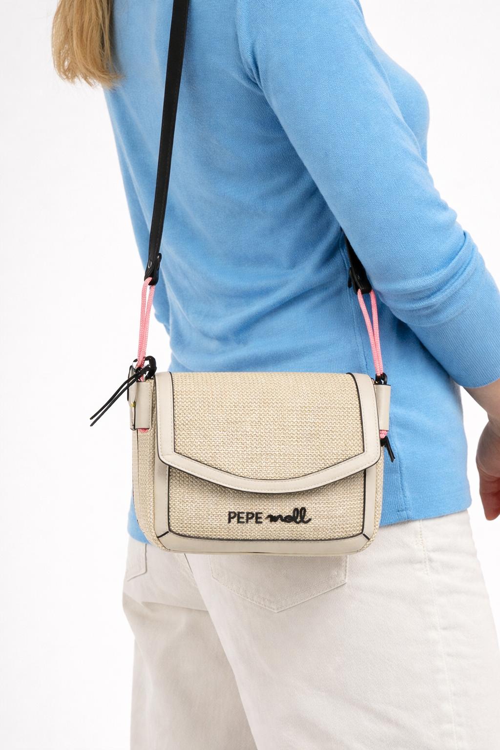Kvalitná kabelka od značky PEPE MOLL. Model v béžovej farbe. Zvršok vyrobený z ekologickej kože.