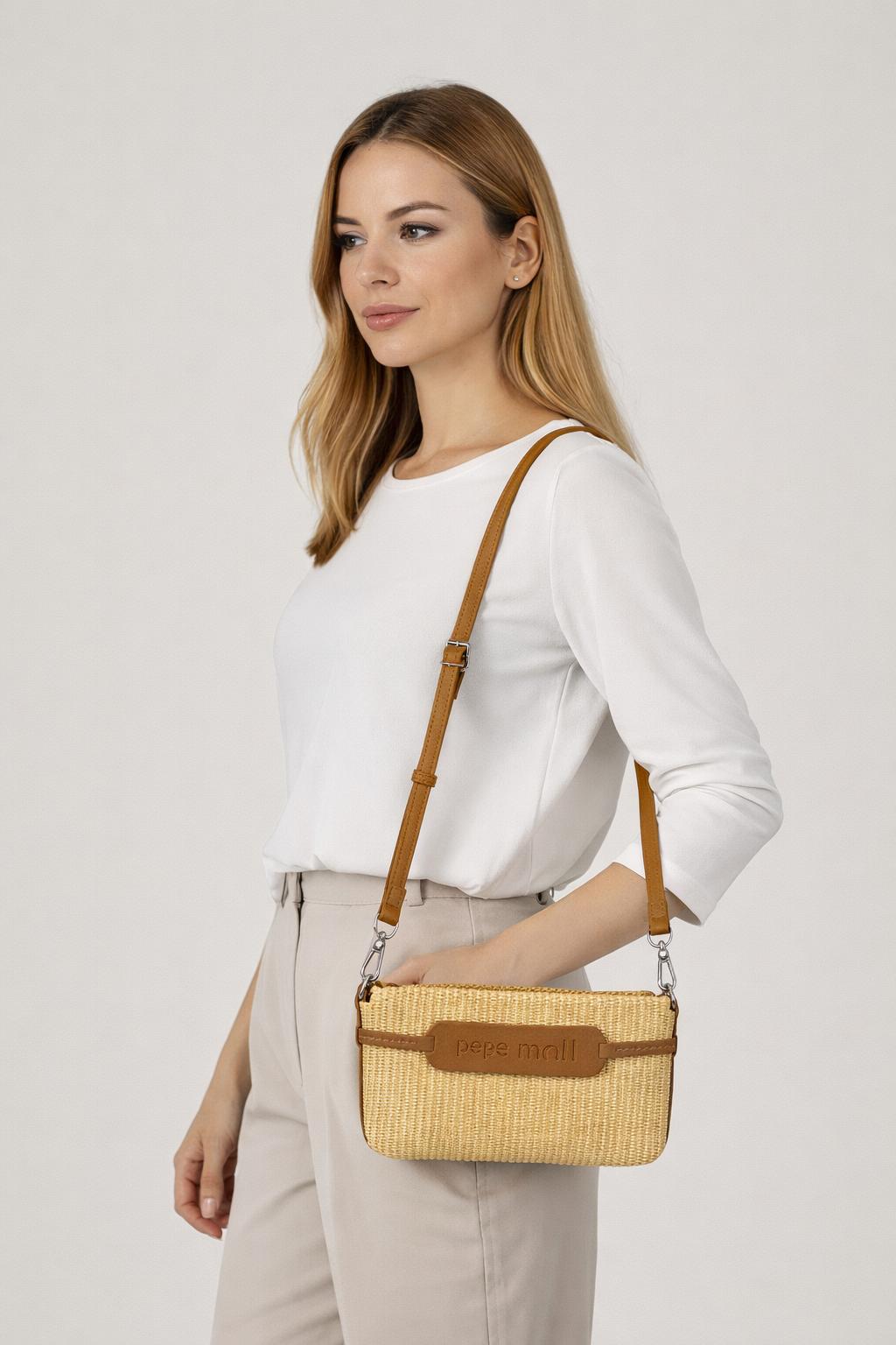 Kvalitná kabelka od značky PEPE MOLL. Model v béžovej farbe. Zvršok vyrobený z ekologickej kože.