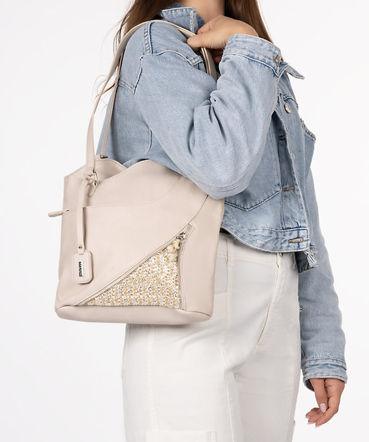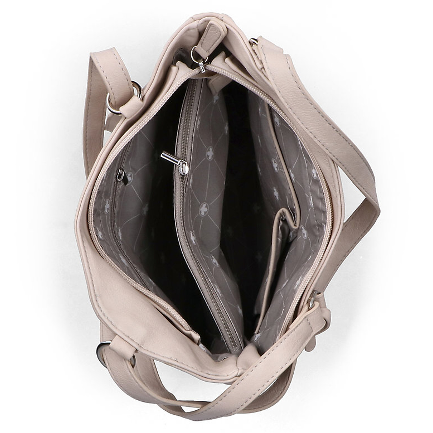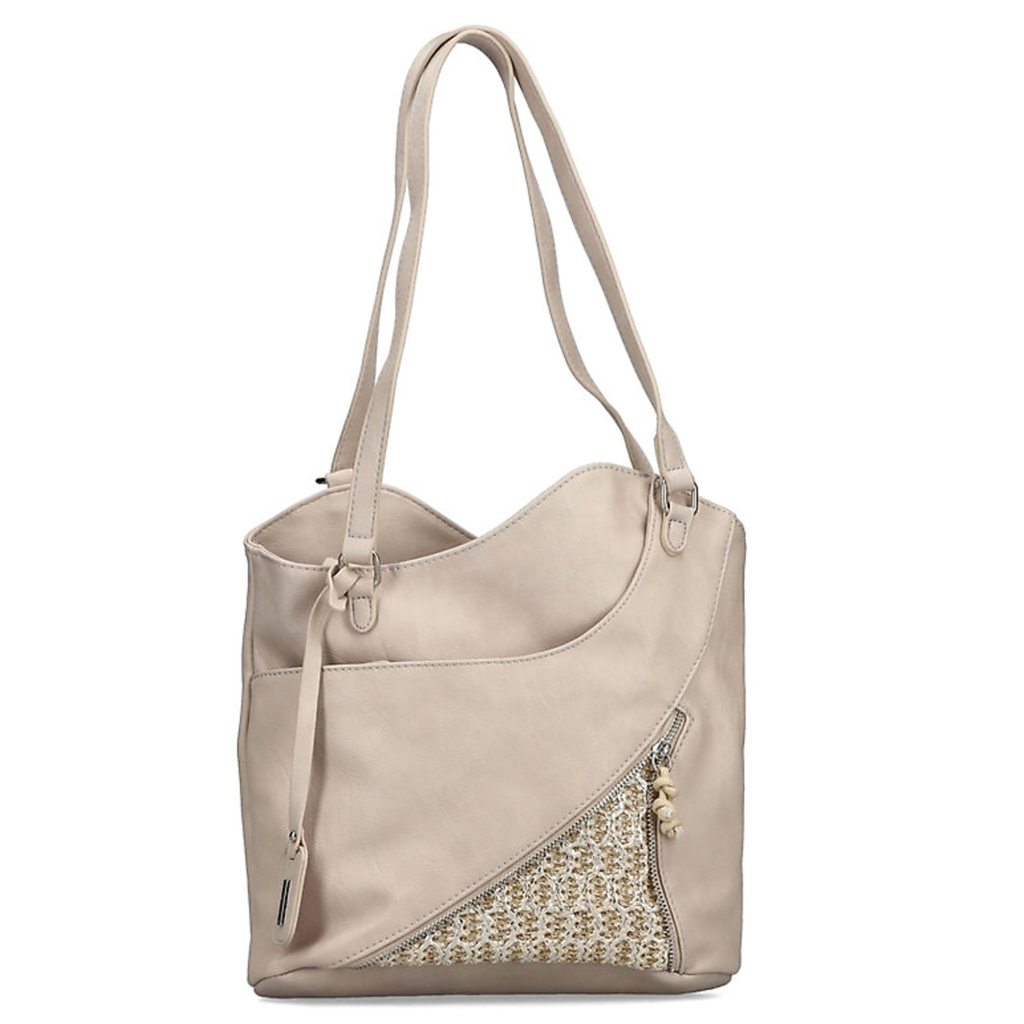 Kvalitná kabelka nemeckej značky RIEKER. Model v béžovej farbe. Zvršok vyrobený z ekologickej kože. Kabelka je vybavená dvoma dlhšími popruhmi, vďaka čomu ju môžete pohodlne nosiť cez rameno alebo zvoliť variantu batohu.