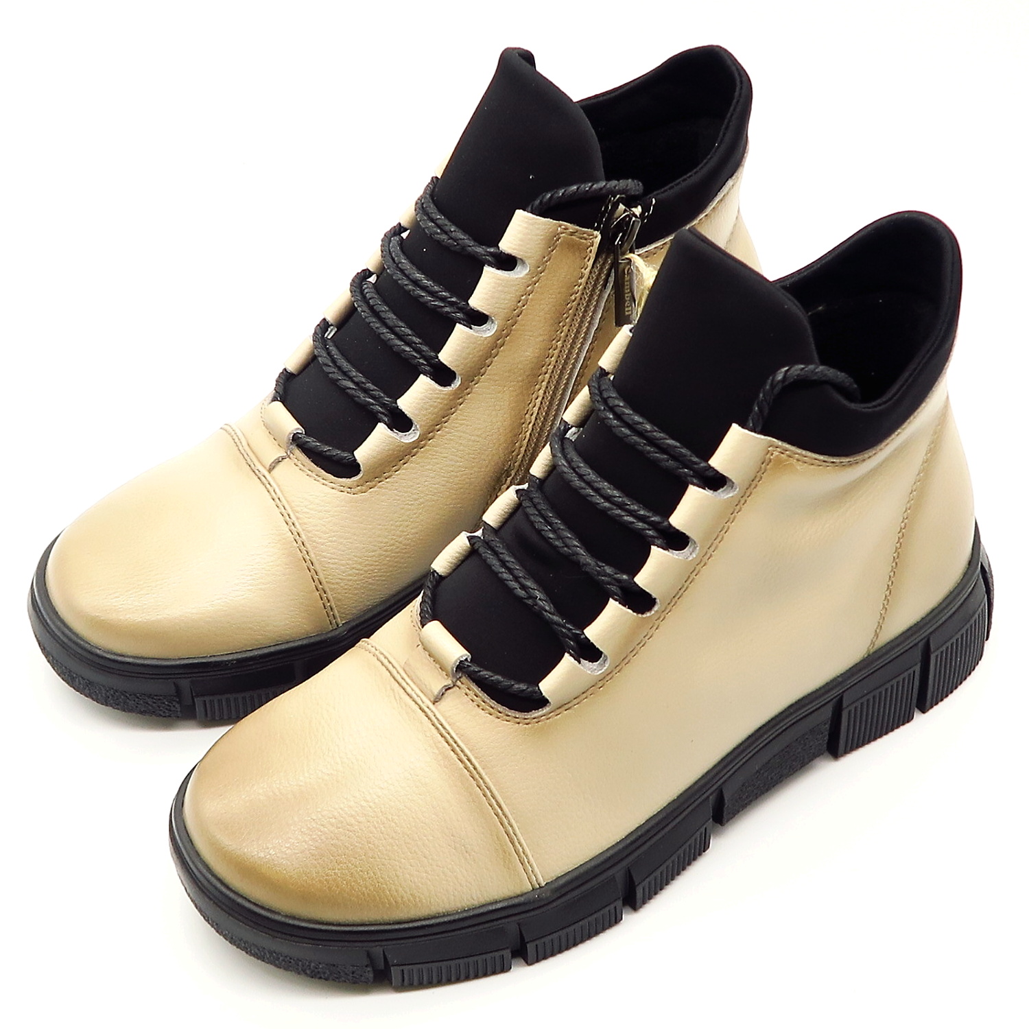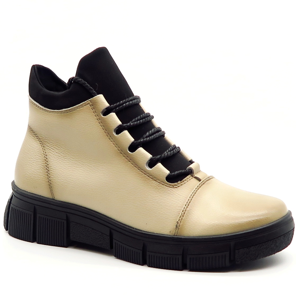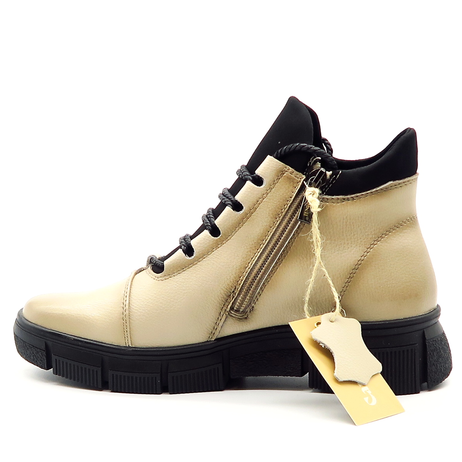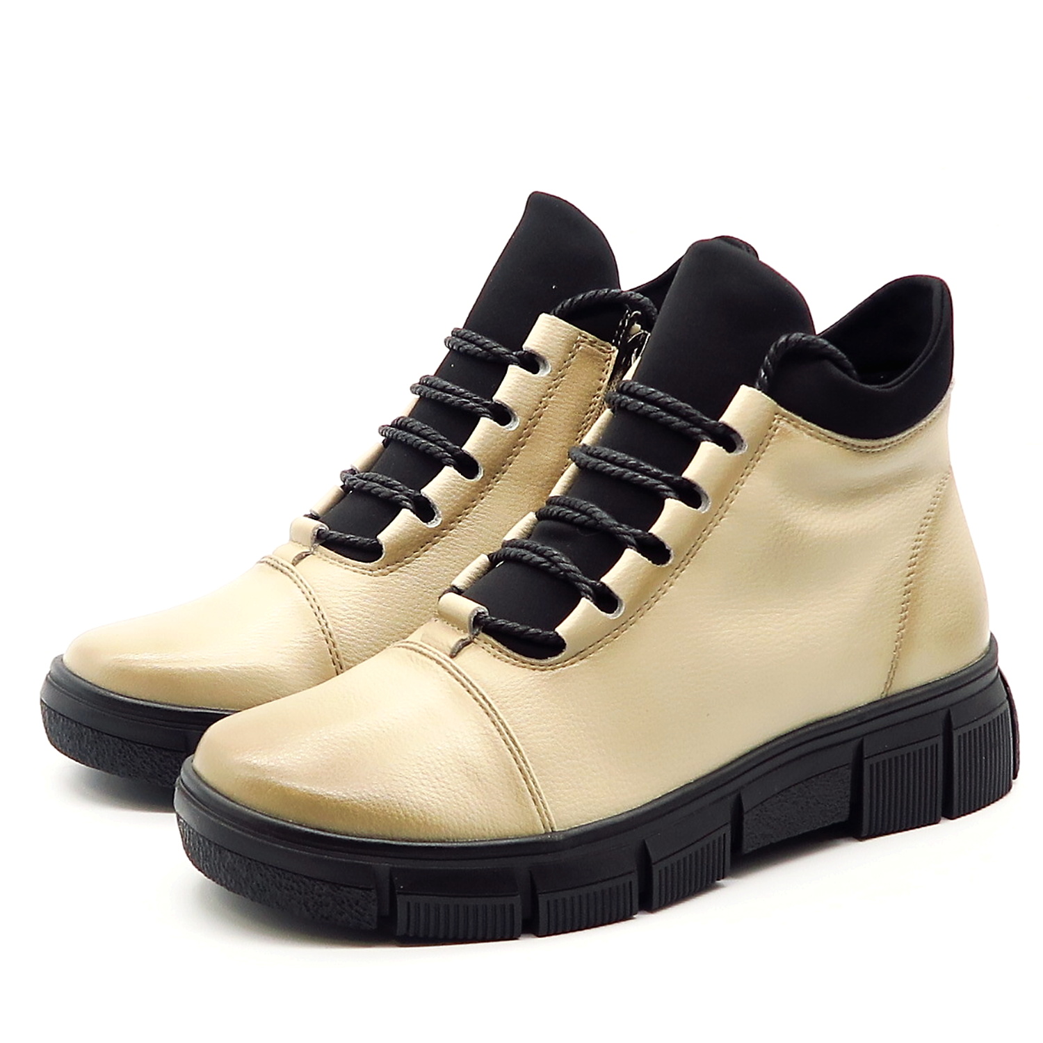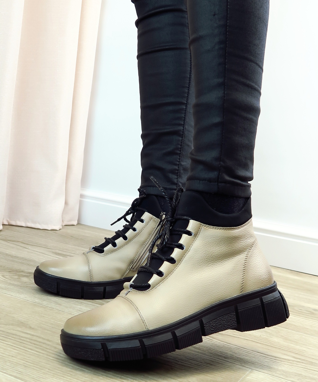Tieto dámske béžovo-čierne zimné topánky sú perfektnou kombináciou komfortu, štýlu a praktickosti. Sú navrhnuté tak, aby poskytovali pohodlie počas celého dňa, no zároveň pôsobili moderne. Zvršok vyrobený z prírodnej kože. Predná elastická časť v čiernej farbe zabezpečuje výborné prispôsobenie tvaru nohy a zjednodušuje obúvanie. Hrubšia čierna podrážka má výrazný protišmykový vzor, ktorý poskytuje stabilitu.