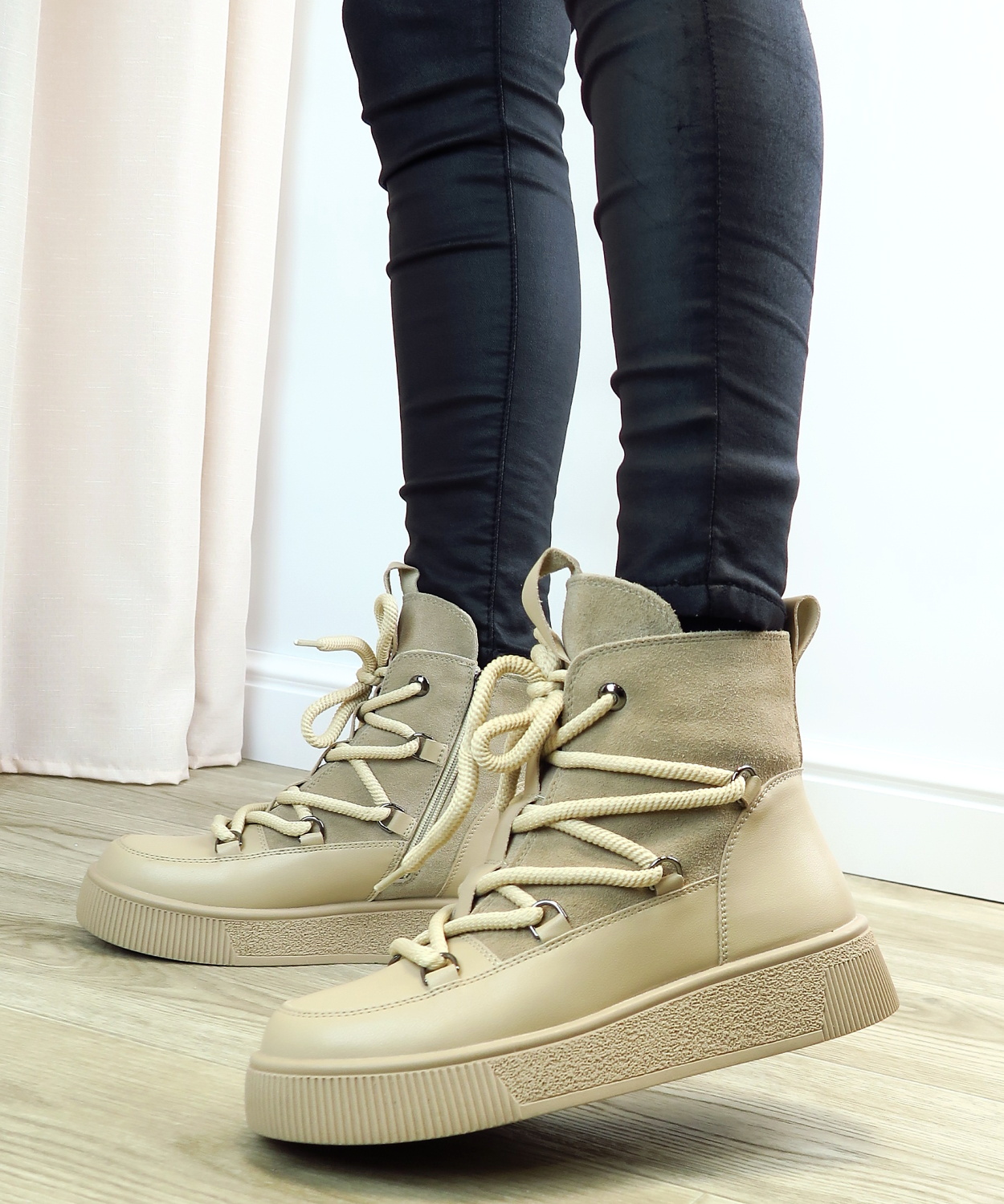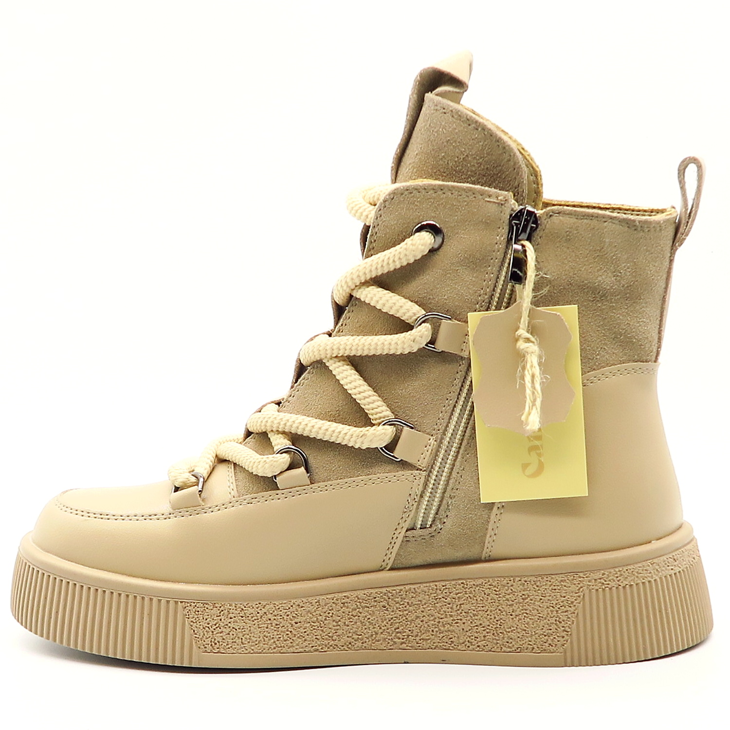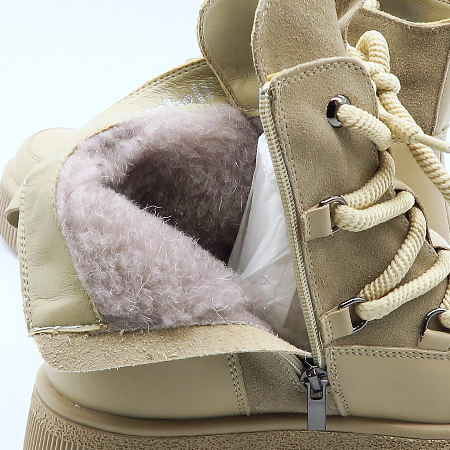 Dámske trendové topánka značky CAMBELL. Topánky majú moderný zvýšený strih a výrazné hrubé šnurovanie, ktoré dodáva topánkam štýlový mestský vzhľad. Zvršok vyrobený z prírodnej kože. Hrubá protišmyková podrážka poskytuje stabilitu a pohodlie na každom kroku. Veľkou výhodou je teplá hrubá kožušina, ktorá Vám zaručí teplo. Zapínanie – bočný zips.