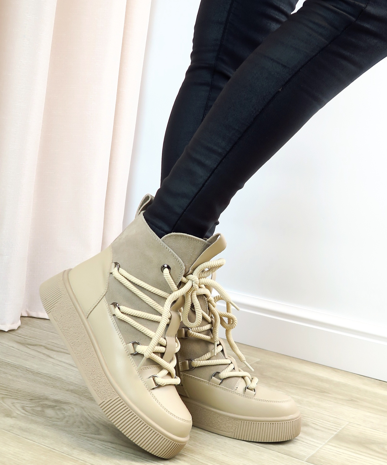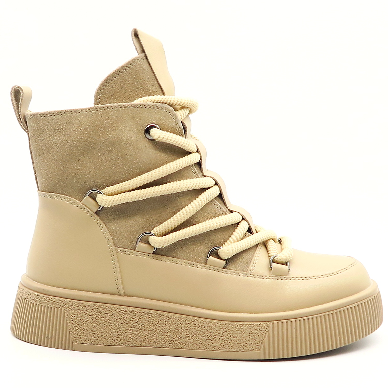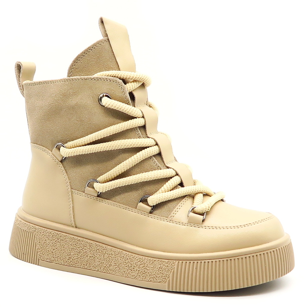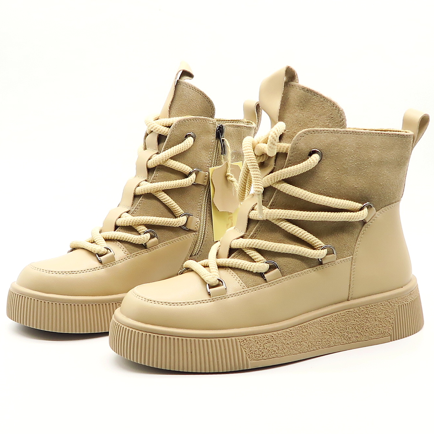 Dámske trendové topánka značky CAMBELL. Topánky majú moderný zvýšený strih a výrazné hrubé šnurovanie, ktoré dodáva topánkam štýlový mestský vzhľad. Zvršok vyrobený z prírodnej kože. Hrubá protišmyková podrážka poskytuje stabilitu a pohodlie na každom kroku. Veľkou výhodou je teplá hrubá kožušina, ktorá Vám zaručí teplo. Zapínanie – bočný zips.