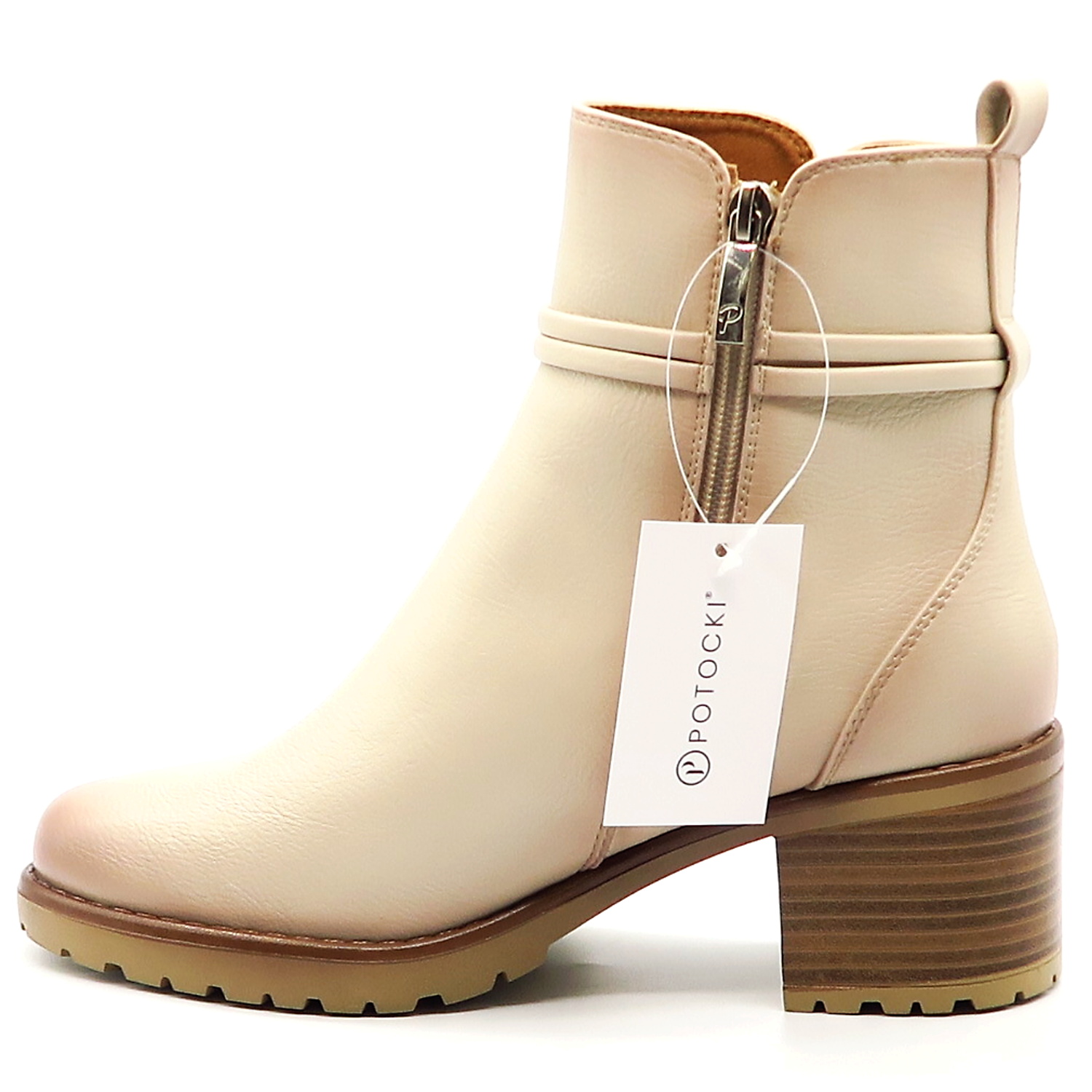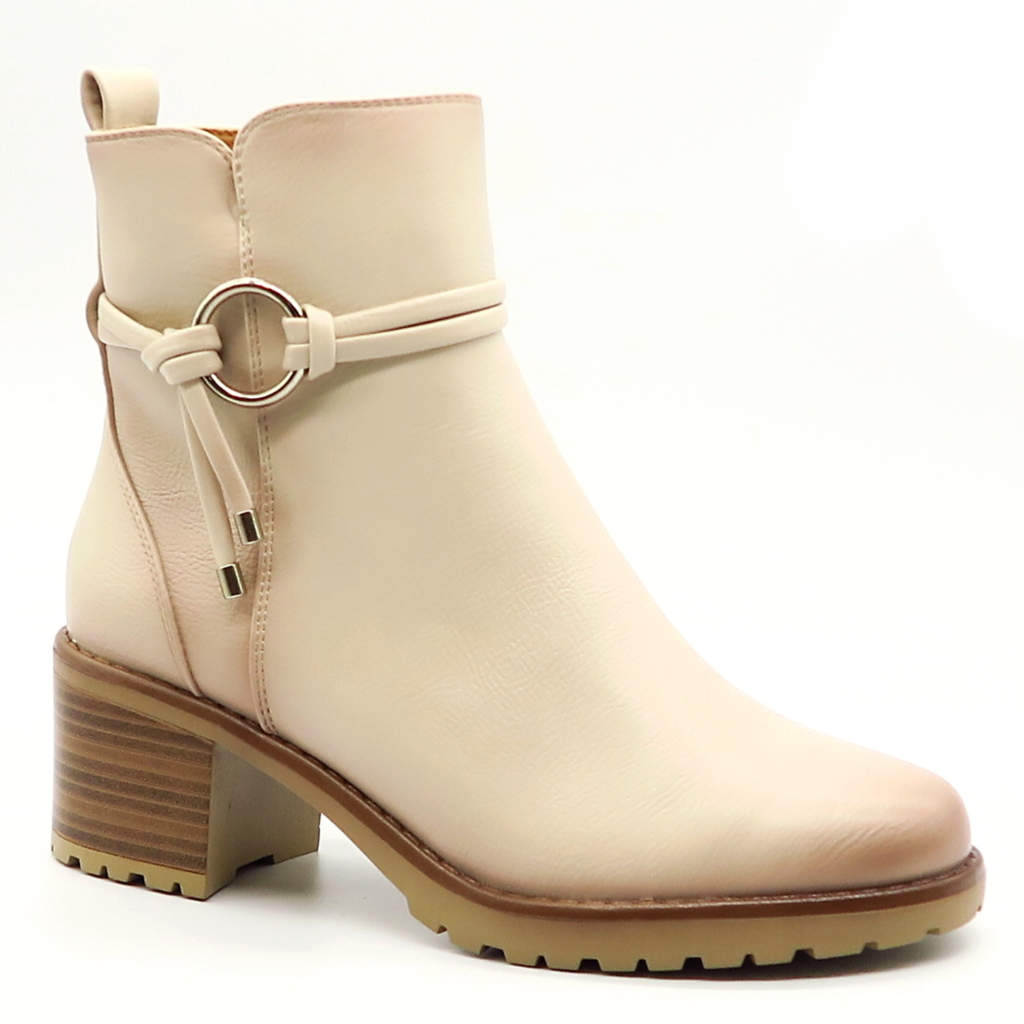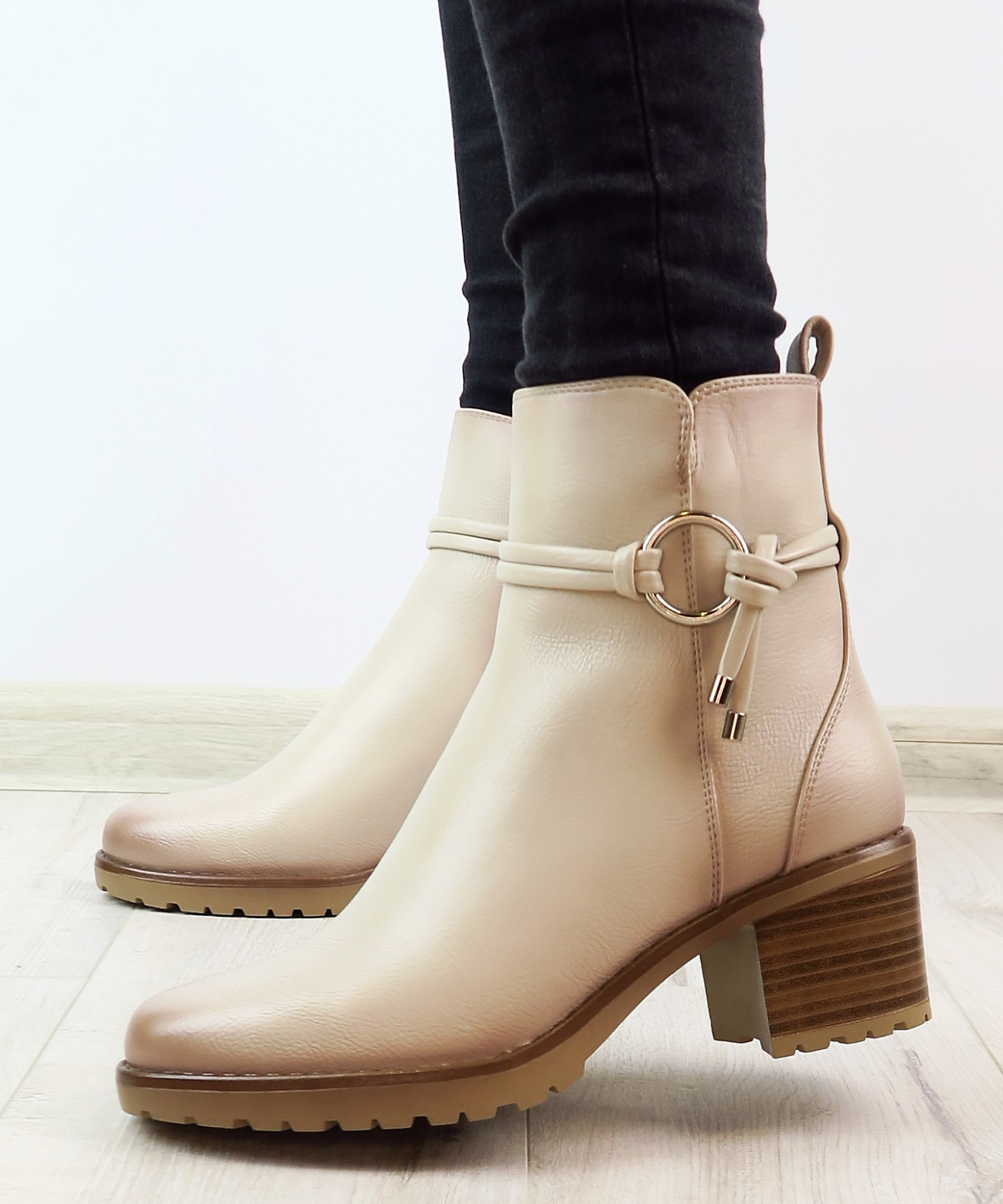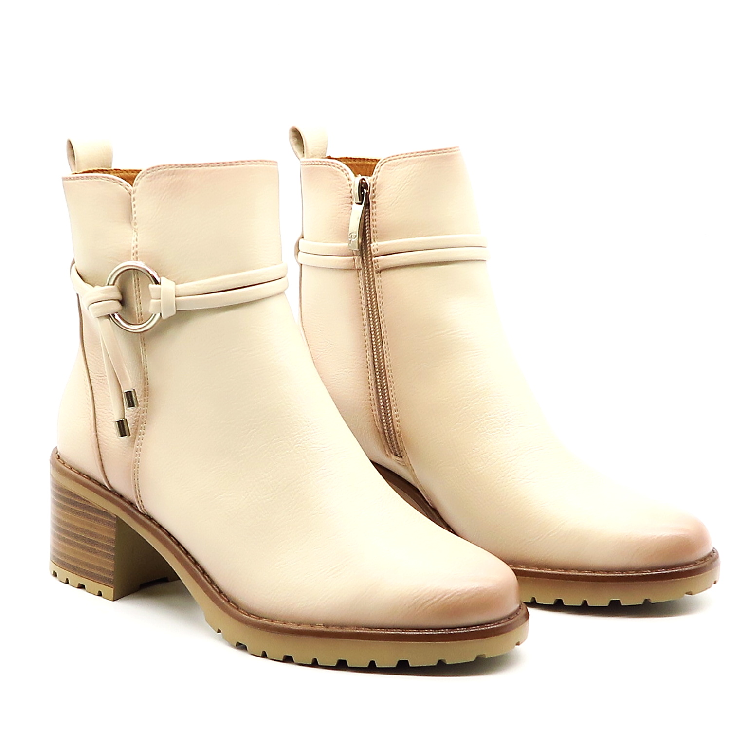 Dámske členkové topánky značky EVENTO. Model v krásnej béžovej farbe. Zvršok vyrobený z ekologickej kože. Pekným doplnkom je kovová pracka na bočnej strane, ktorá dodáva topánkam moderný look. Komfortný hrubší podpätok zaručí pohodlie počas nosenia. Vnútro zateplené kožušinou, ktorá zahreje počas chladných dní.