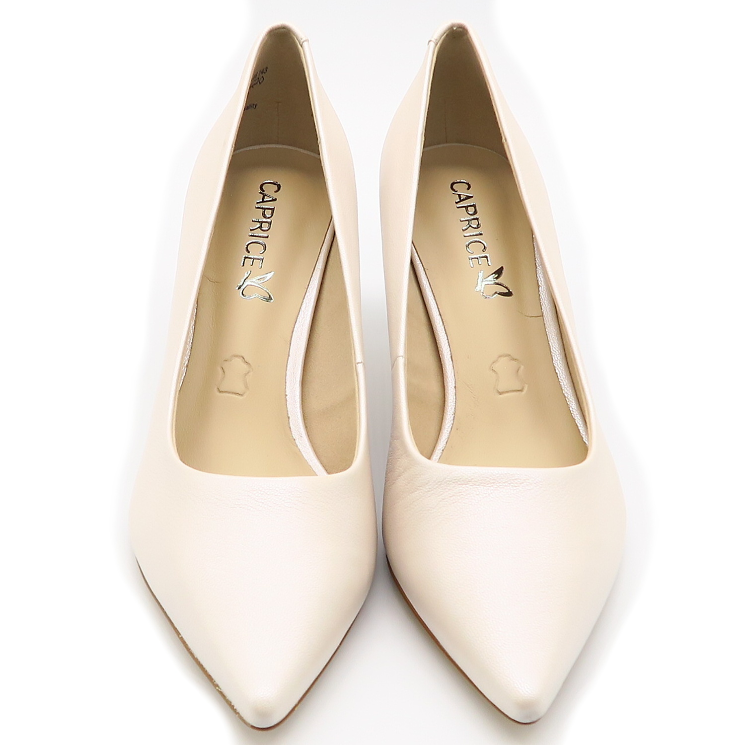 Elegantné dámske lodičky CAPRICE v béžovej farbe s jemným perleťovým odleskom. Model na stabilnom stredne vysokom podpätku, vďaka čomu sú vhodné aj na dlhšie nosenie. Hladký povrch pôsobí nadčasovo a ľahko sa kombinuje s pracovným aj spoločenským outfitom. Značka CAPRICE je známa dôrazom na pohodlie, kvalitné spracovanie a mäkkú stielku, čo zaručuje komfort pri každom kroku.