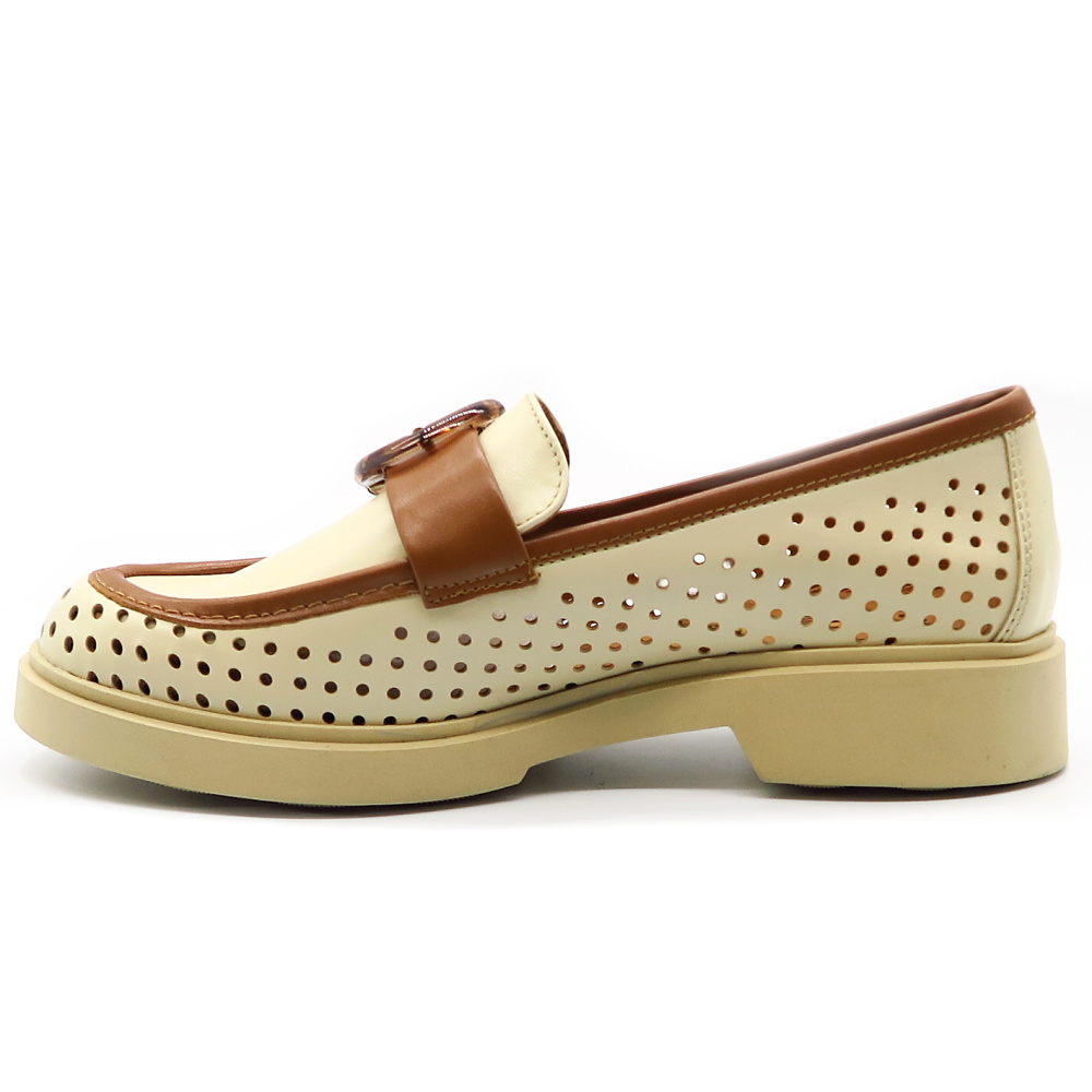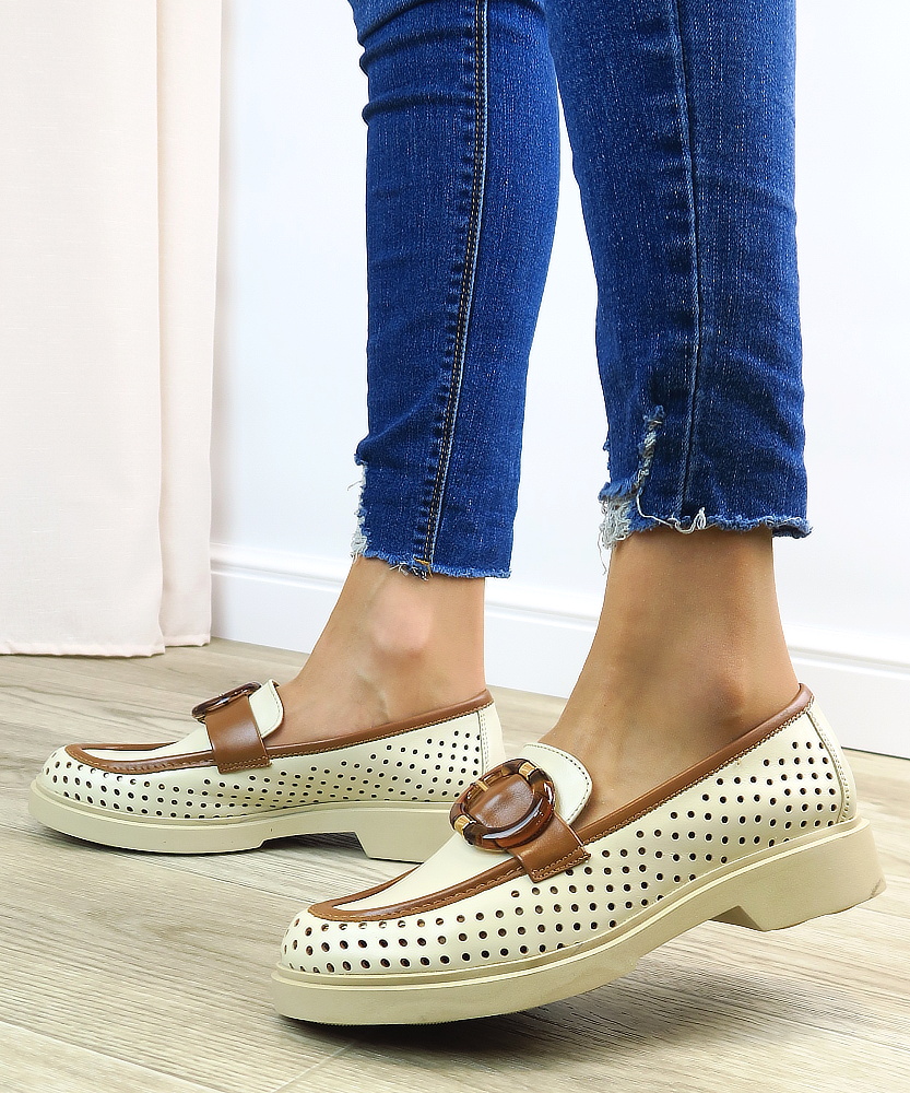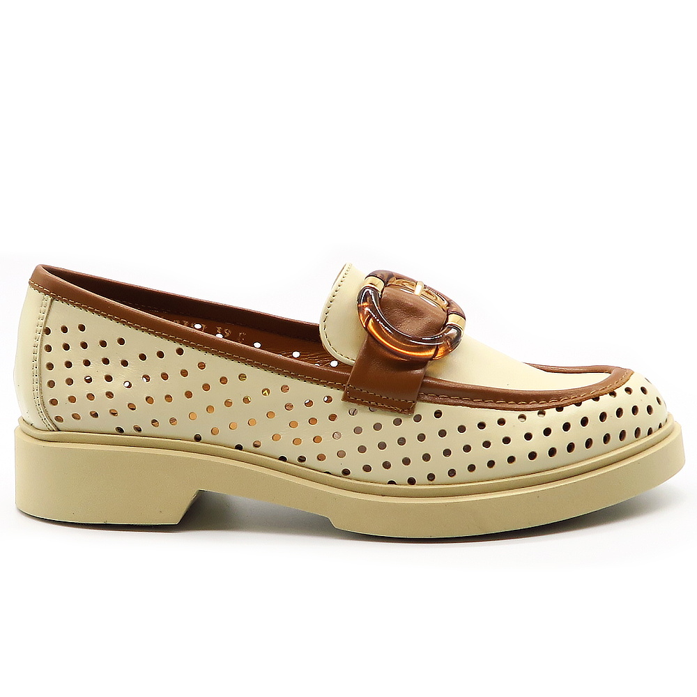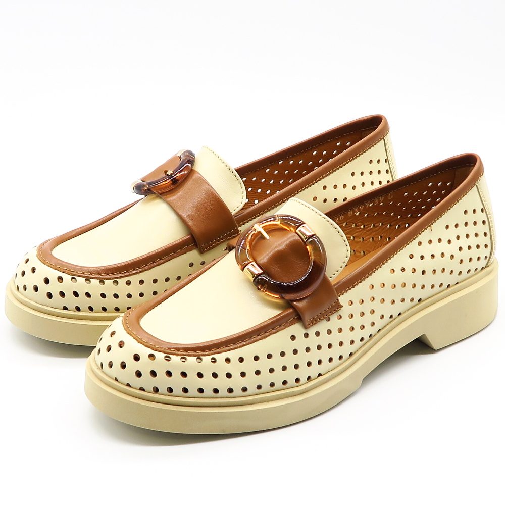 Objavte dokonalú kombináciu elegancie a pohodlia v týchto štýlových mokasínach značky SIMEN, ktoré zaujmú jemnou béžovo-hnedou farebnou kombináciou a výraznou dekoratívnou prackou. Perforovaný zvršok nielenže pôsobí moderne a vzdušne, ale zároveň zabezpečuje príjemnú cirkuláciu vzduchu, vďaka čomu sú topánky ideálne aj na celodenné nosenie počas teplejších dní. Univerzálny dizajn sa ľahko kombinuje s elegantnými nohavicami, kostýmom, džínsami aj letnými šatami.