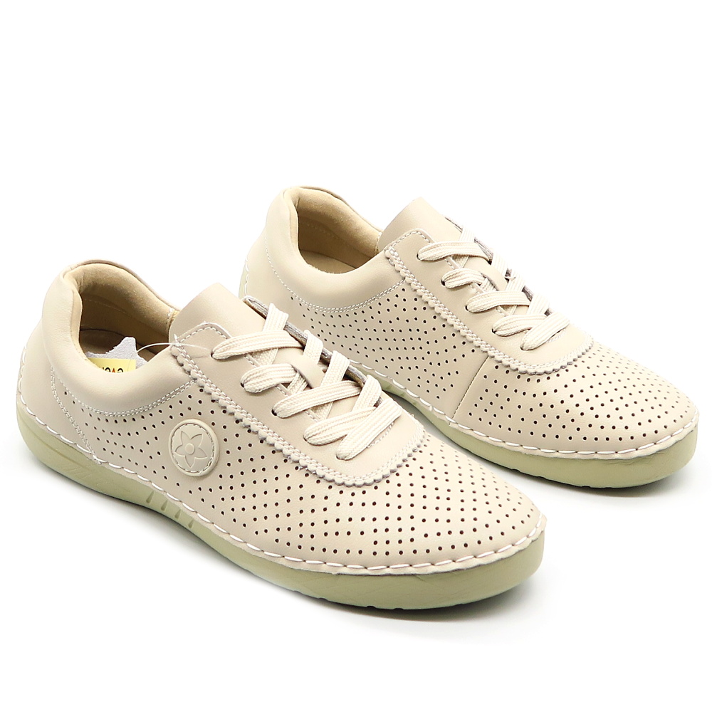 Praktické kožené topánky značky EVENTO. 100 % komfortný model, ktorý Vás zaručene osloví. Model v béžovej farbe. Majú perforovaný zvršok, ktorý je vzdušný a vhodný na letné dni. Mäkká kožená stielka zaistí komfort počas celého dňa. Veľkou výhodou tohto modelu je ich ľahkosť. Vhodné aj na širšie chodidlá.