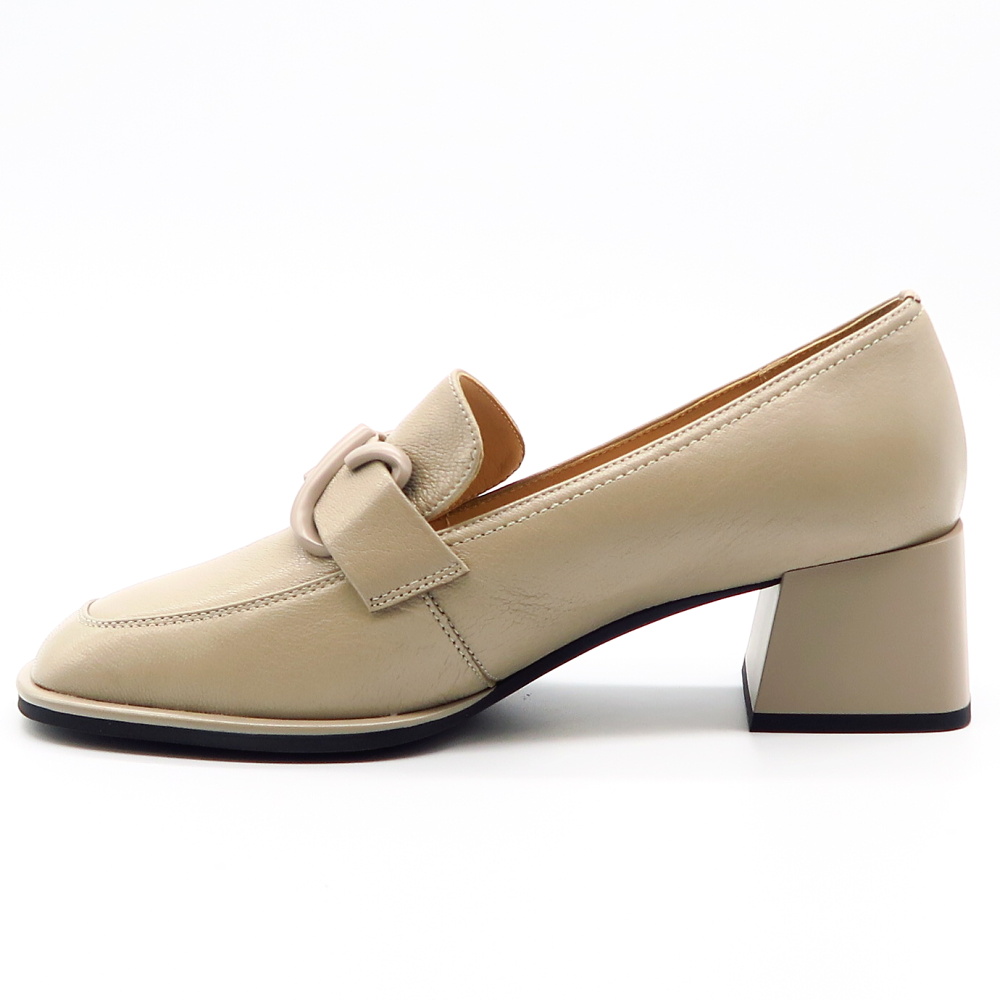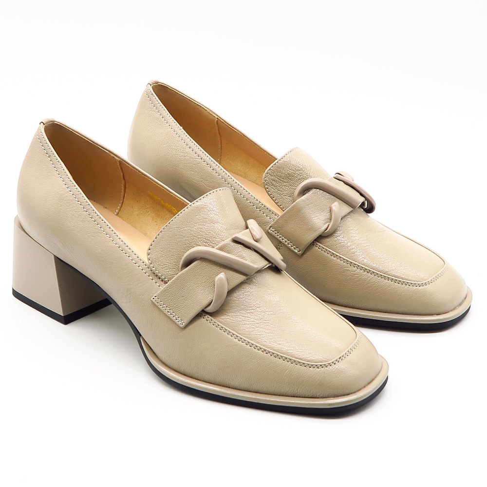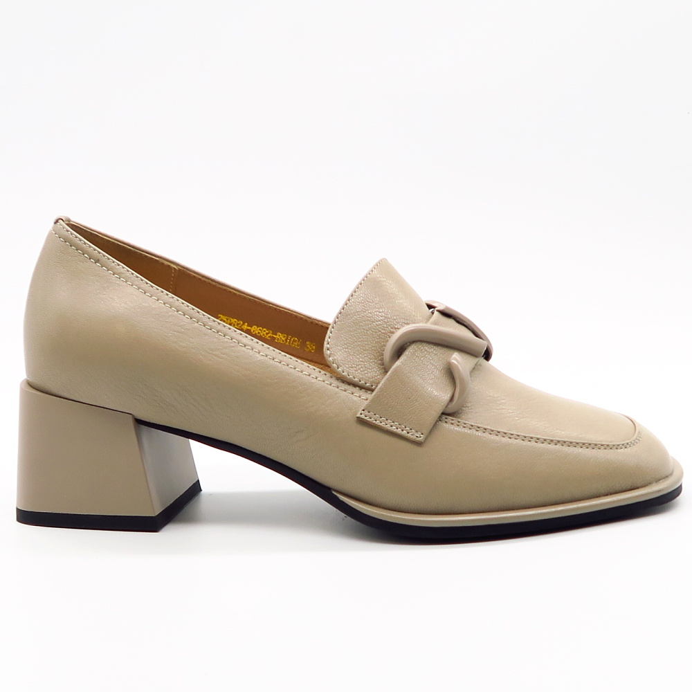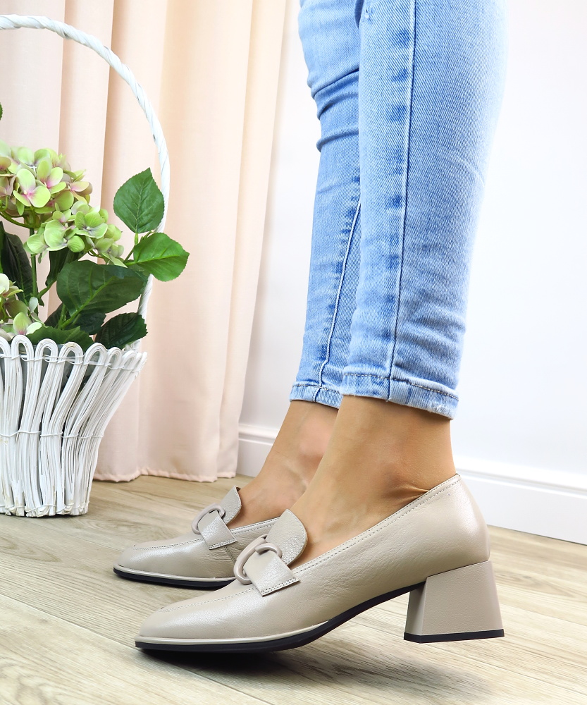 Elegantné dámske poltopánky v jemnom béžovom odtieni sú ideálnou voľbou pre ženy, ktoré hľadajú spojenie štýlu a pohodlia. Nadčasový mokasínový strih dopĺňa výrazná ozdobná pracka na priehlavku, ktorá dodáva topánkam moderný a sofistikovaný vzhľad. Stabilný širší podpätok zabezpečuje komfort pri chôdzi a zároveň opticky predlžuje postavu. Celokožený zvršok s jemnou štruktúrou pôsobí elegantne a ľahko sa kombinuje.