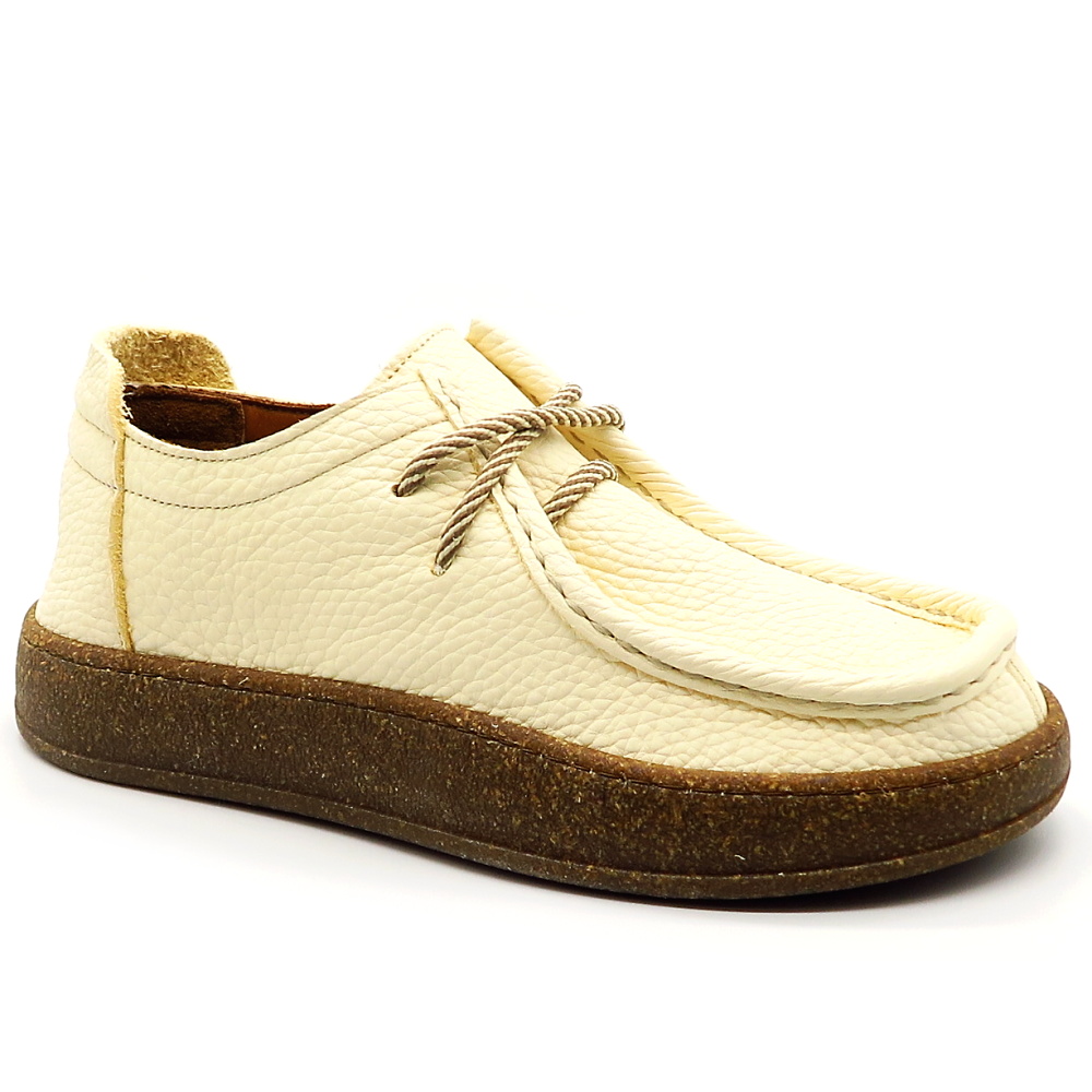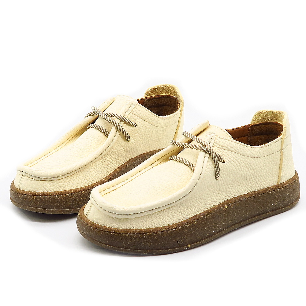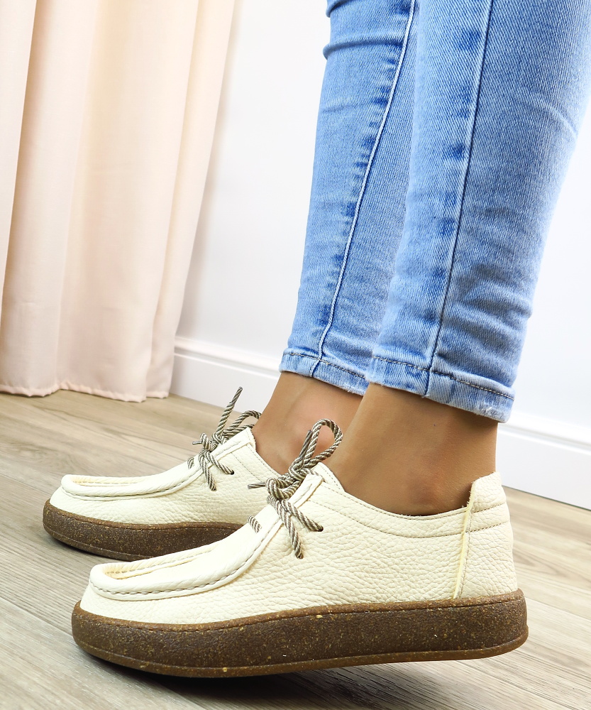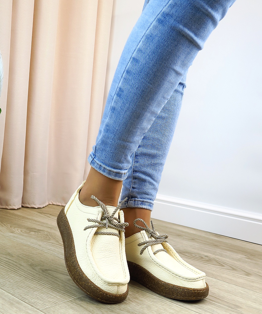 Dámske poltopánky značky RAVINI. Štýlové a neprehliadnuteľné poltopánky v krásnej béžovej farbe, ktorá sa hodí k rôznym štýlom. Vyrobené z kvalitnej prírodnej kože. Kontrastné prešívanie a šnúrky dodávajú topánkam štýl. Hrubšia prírodne pôsobiaca podrážka zabezpečuje stabilitu, pohodlie a tlmenie nárazov pri chôdzi. Vďaka vnútornej stielke sú ideálna na celodenné nosenie – do práce, do mesta aj na voľný čas.