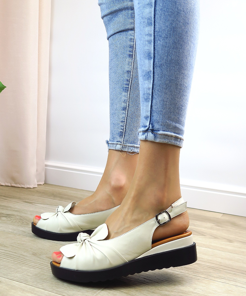 Béžové sandále na platforme od značky BOMBONELLA sú štýlovou a pohodlnou voľbou na leto. Ich moderný dizajn spája eleganciu s ležérnym vzhľadom, vďaka čomu sú vhodné na rôzne príležitosti – od bežného nosenia až po večerné výjazdy. Veľká nariasená mašľa v prednej časti pridáva sandálom jemnosť a ženskosť, zatiaľ čo platformová podrážka zabezpečuje extra výšku bez straty pohodlia. Tieto sandále sa ľahko kombinujú s letnými šatami, džínsami či elegantnými nohavicami.