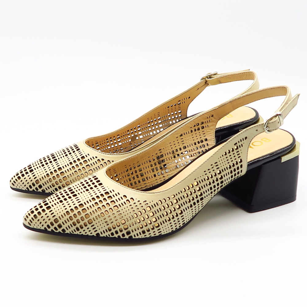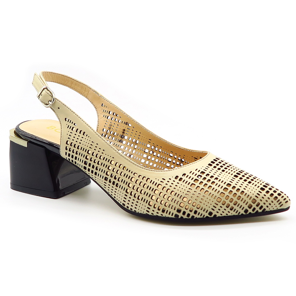 Elegantné sandále s otvorenou pätou sú dokonalým spojením štýlu a pohodlia. Majú perforovaný zvršok, čo im dodáva nielen elegantný vzhľad, ale aj výbornú priedušnosť. Kožené sandále v béžovej farbe, ktorá sa ľahko kombinuje. Módny hrubší podpätok zabezpečuje komfort pri chôdzi, zatiaľ čo mäkká stielka ponúka príjemný pocit po celý deň. Vďaka svojmu dizajnu sú ideálne na formálne aj neformálne príležitosti.