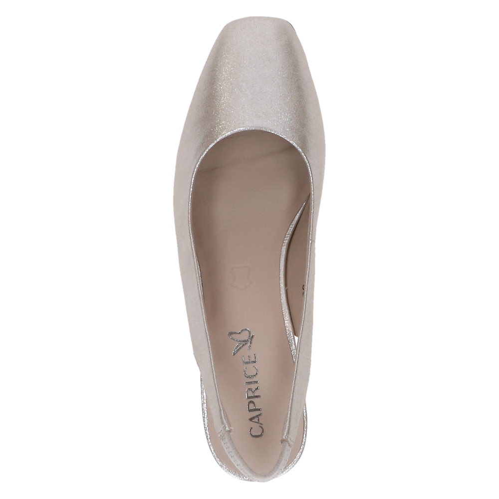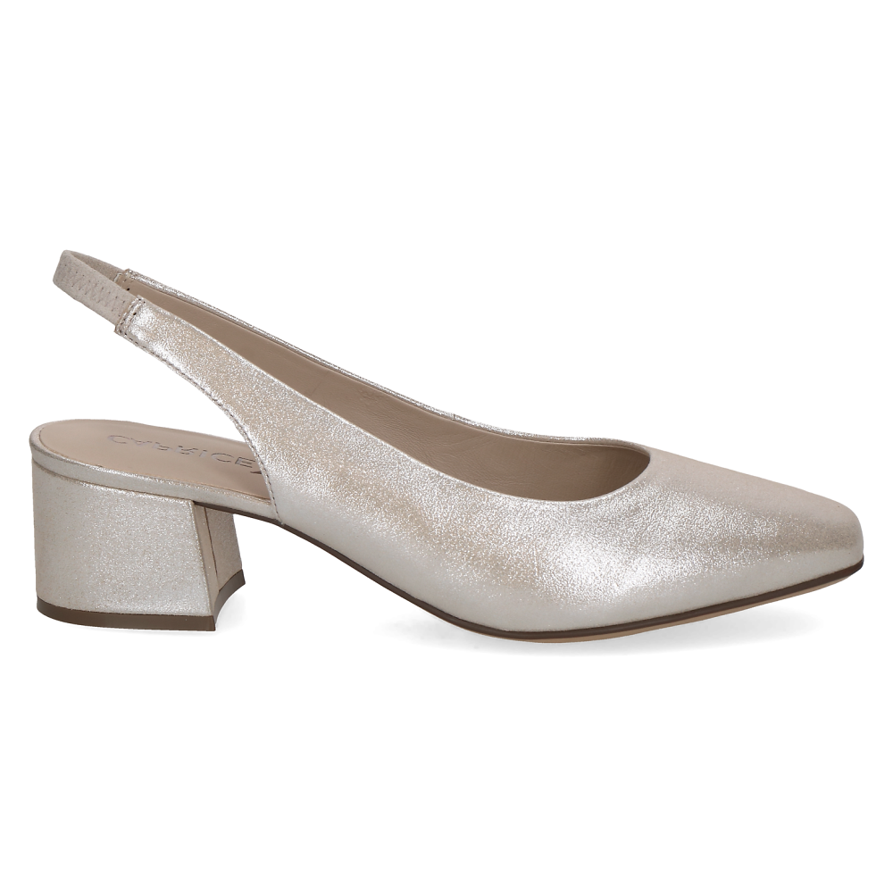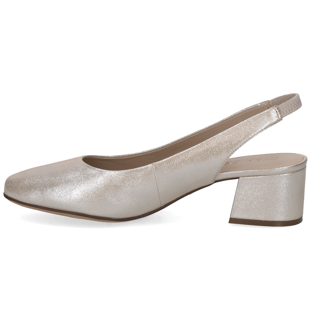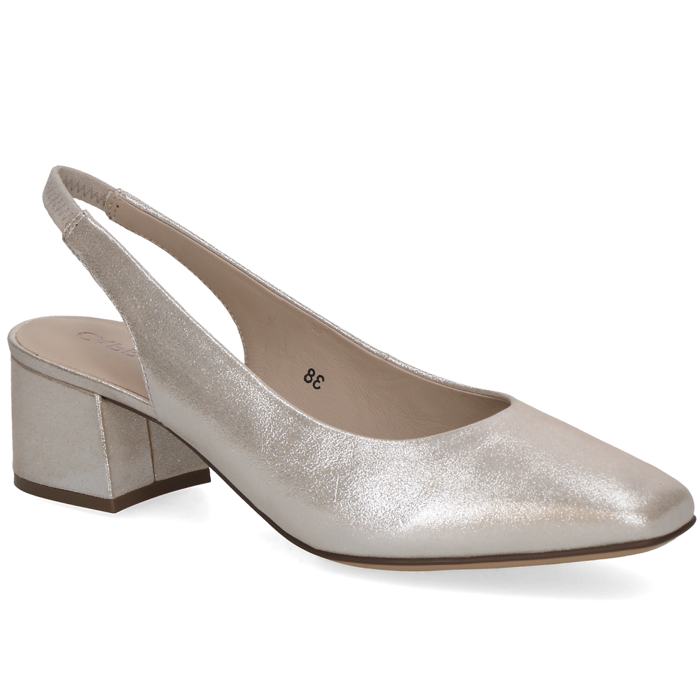 Elegantné dámske sandále CAPRICE v béžovo-metalickom odtieni, ktorý dodáva topánkam elegantný vzhľad, vhodný do práce aj na spoločenské príležitosti. Model má uzavretú špičku a otvorenú pätu s elastickým ramienkom, ktorý zabezpečuje pohodlné obúvanie a dobré držanie nohy. Stabilný hrubší podpätok poskytuje komfort aj pri celodennom nosení. Značka CAPRICE je známa dôrazom na pohodlie a kvalitu.