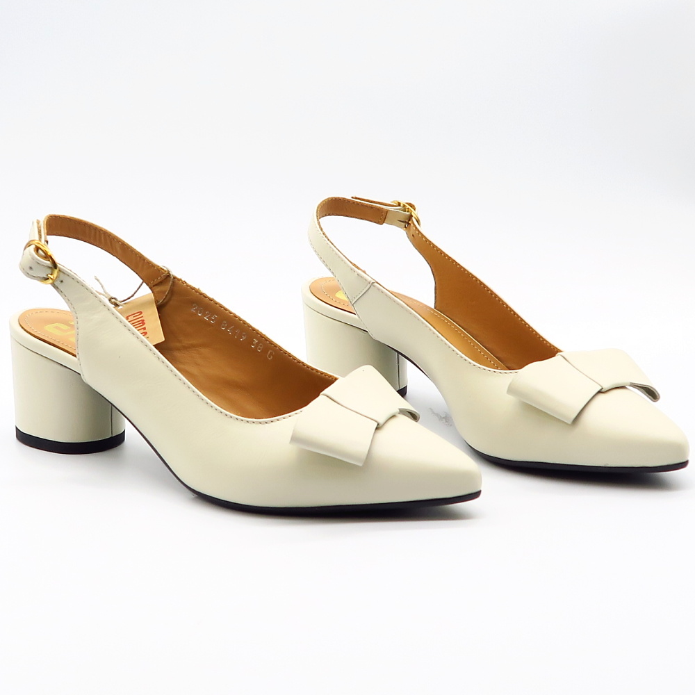 Dámske sandále od značky SIMEN. Kvalitný model v béžovej farbe, ktorá sa hodí k rôznym outfitom. Zvršok tvorí prírodná koža. Celý tento model dopĺňa mašľa v prednej časti, vďaka ktorej tento model pôsobí moderným vzhľadom. Hrubý nízky podpätok zaistí komfort pri chôdzi. Sandále, ktoré na nohách pekne vyniknú.