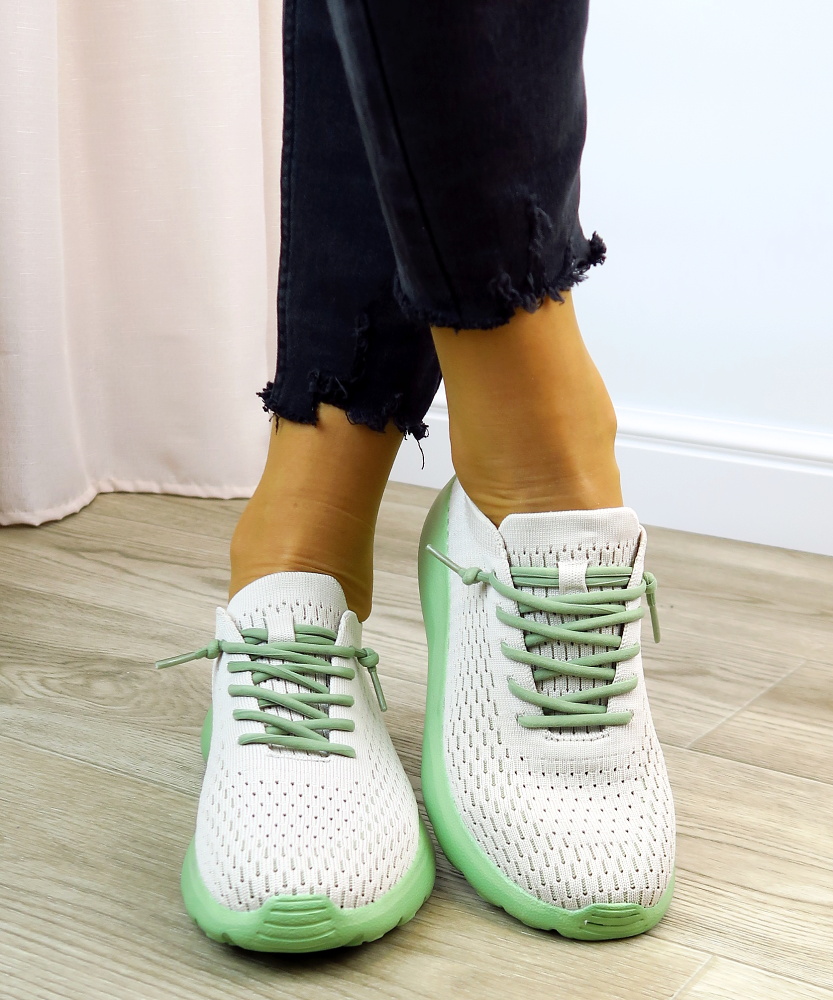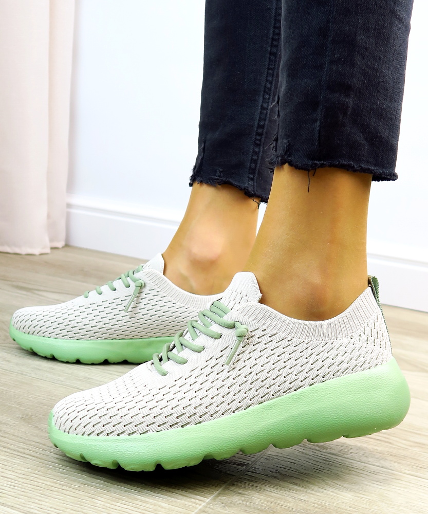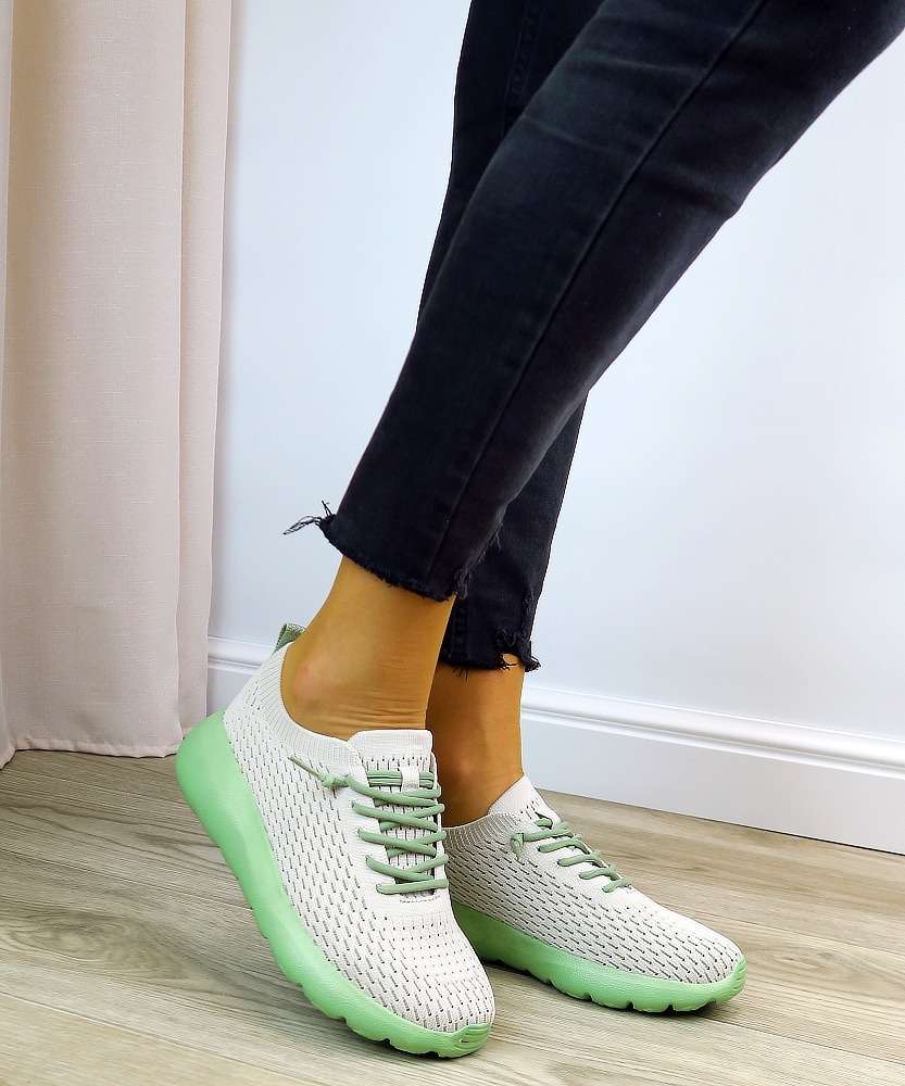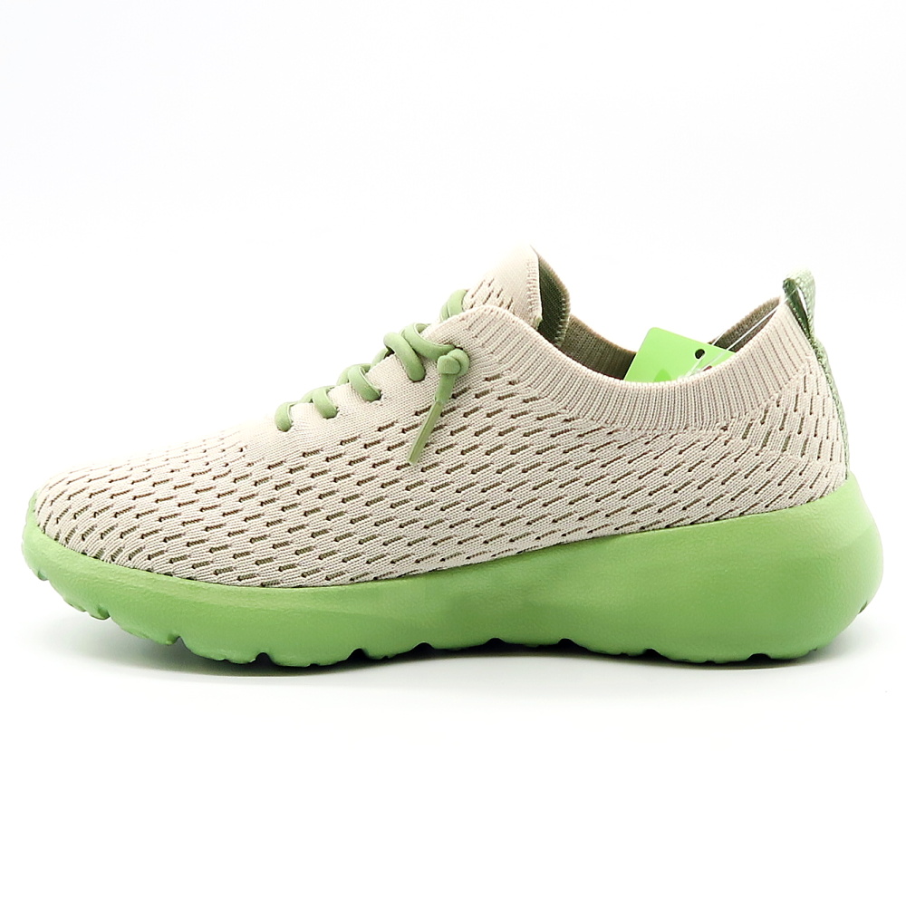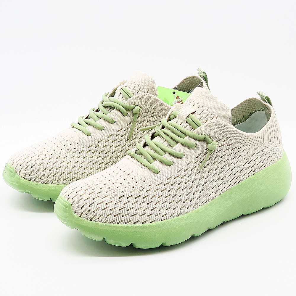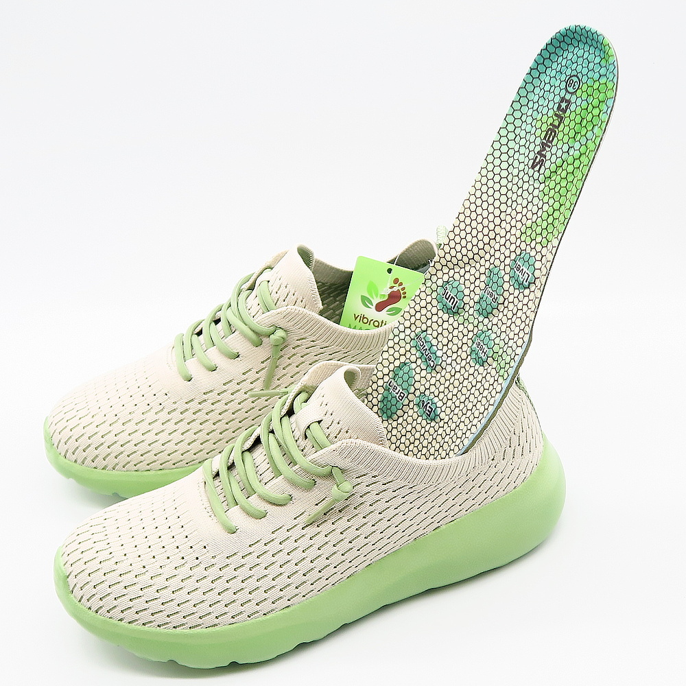 Moderné dámske tenisky v jemnej kombinácii krémovej a pastelovo zelenej farby zaujmú nielen štýlovým vzhľadom, ale aj výnimočným komfortom. Priedušný textilný zvršok s jemnou perforáciou sa dokonale prispôsobí chodidlu a zabezpečí optimálnu cirkuláciu vzduchu počas celého dňa. Dominantou je ľahká a flexibilná podrážka, ktorá tlmí nárazy pri chôdzi a dodáva pocit mäkkosti na každom kroku. Tenisky sú vybavené vibračnou a masážnou vložkou, ktorá stimuluje chodidlá, podporuje krvný obeh a zvyšuje pohodlie.
