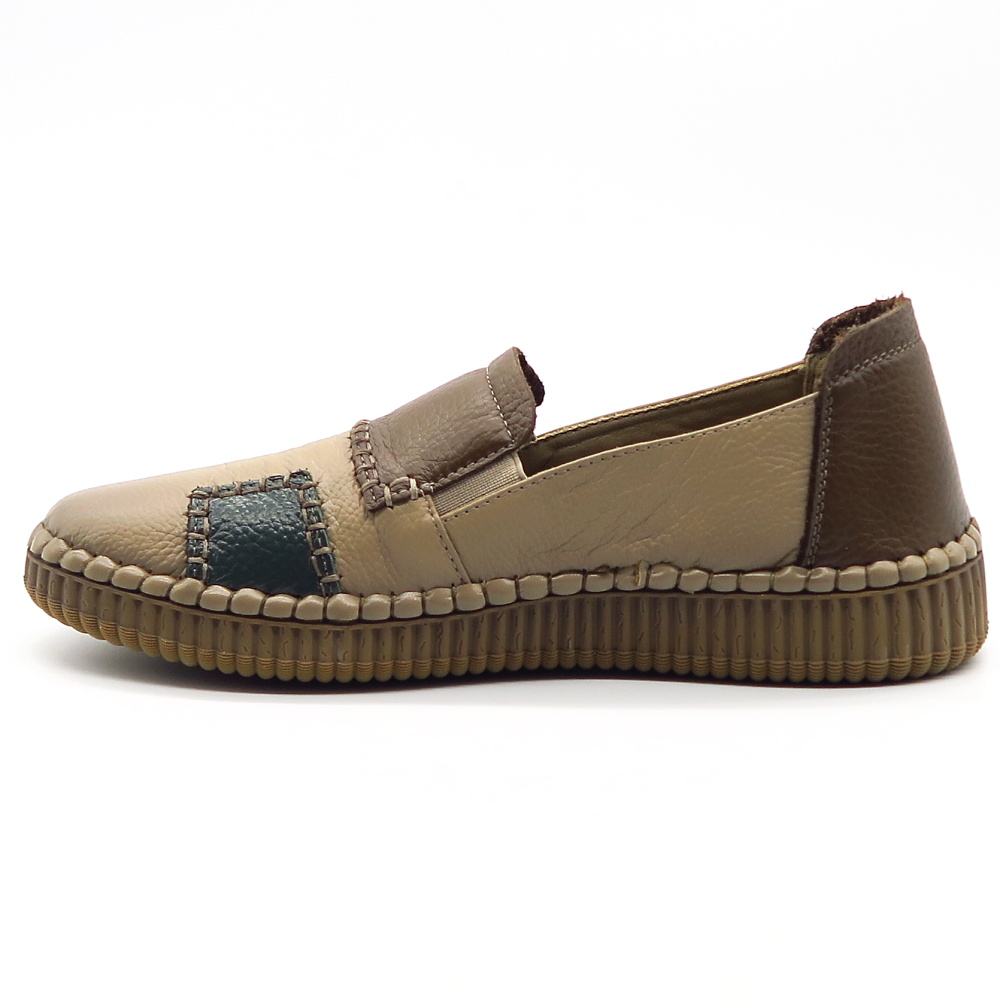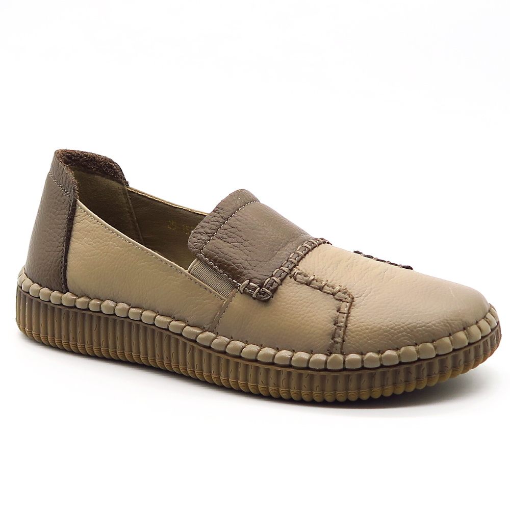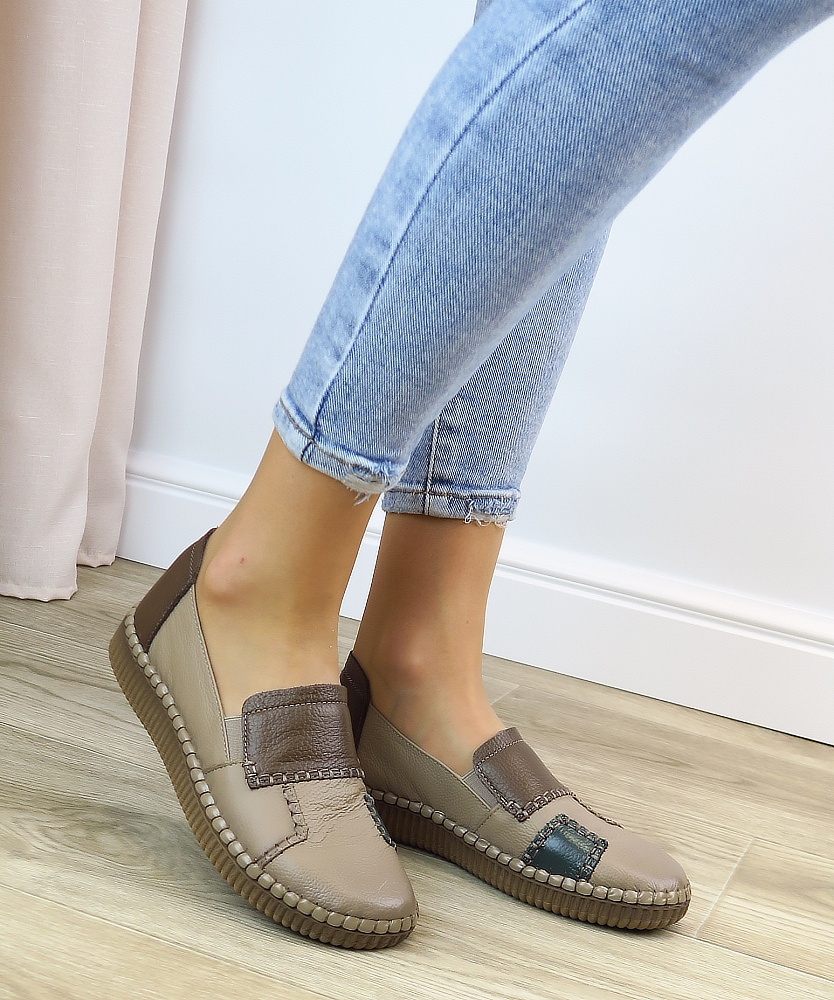 Dámske kožené topánky navrhnuté pre maximálne pohodlie aj pri širších chodidlách. Tento model v elegantnom béžovo-hnedom prevedení zaujme jemne štruktúrovanou pravou kožou a precíznym prešitím, ktoré dodáva topánkam kvalitný a nadčasový vzhľad. Vďaka širšiemu strihu poskytujú dostatok priestoru a zabezpečujú komfort počas celého dňa. Mäkká stielka sa prispôsobí chodidlu, zatiaľ čo flexibilná, ľahká podrážka podporuje prirodzený pohyb. Elastické gumičky po stranách uľahčujú obúvanie.