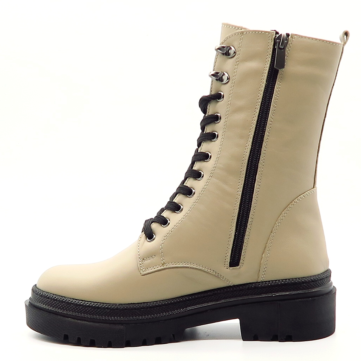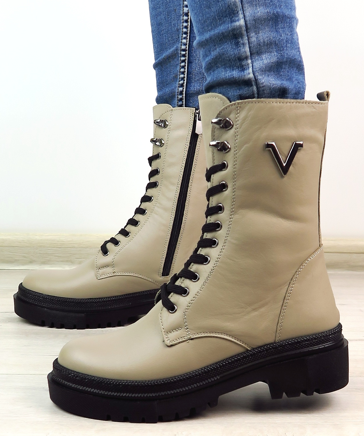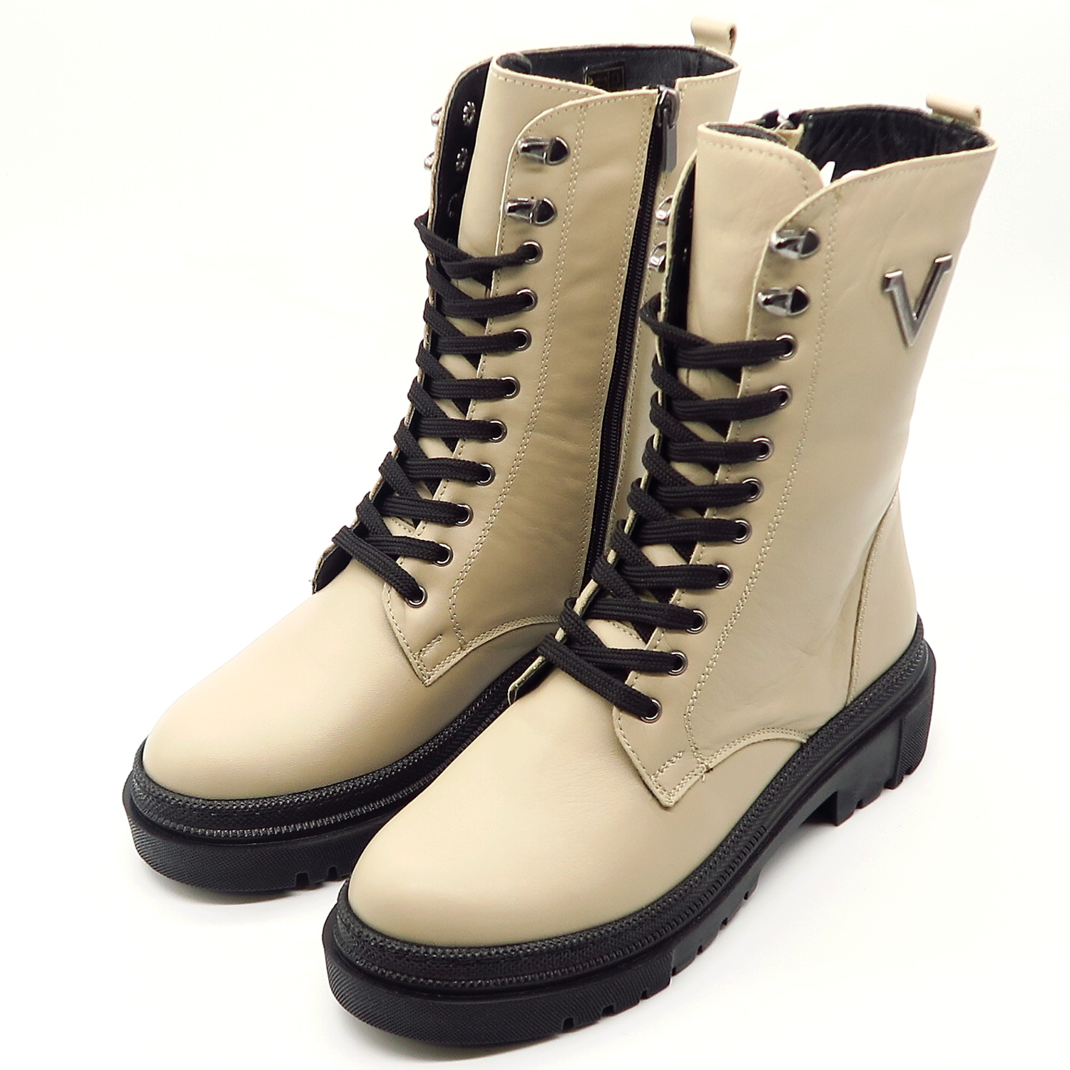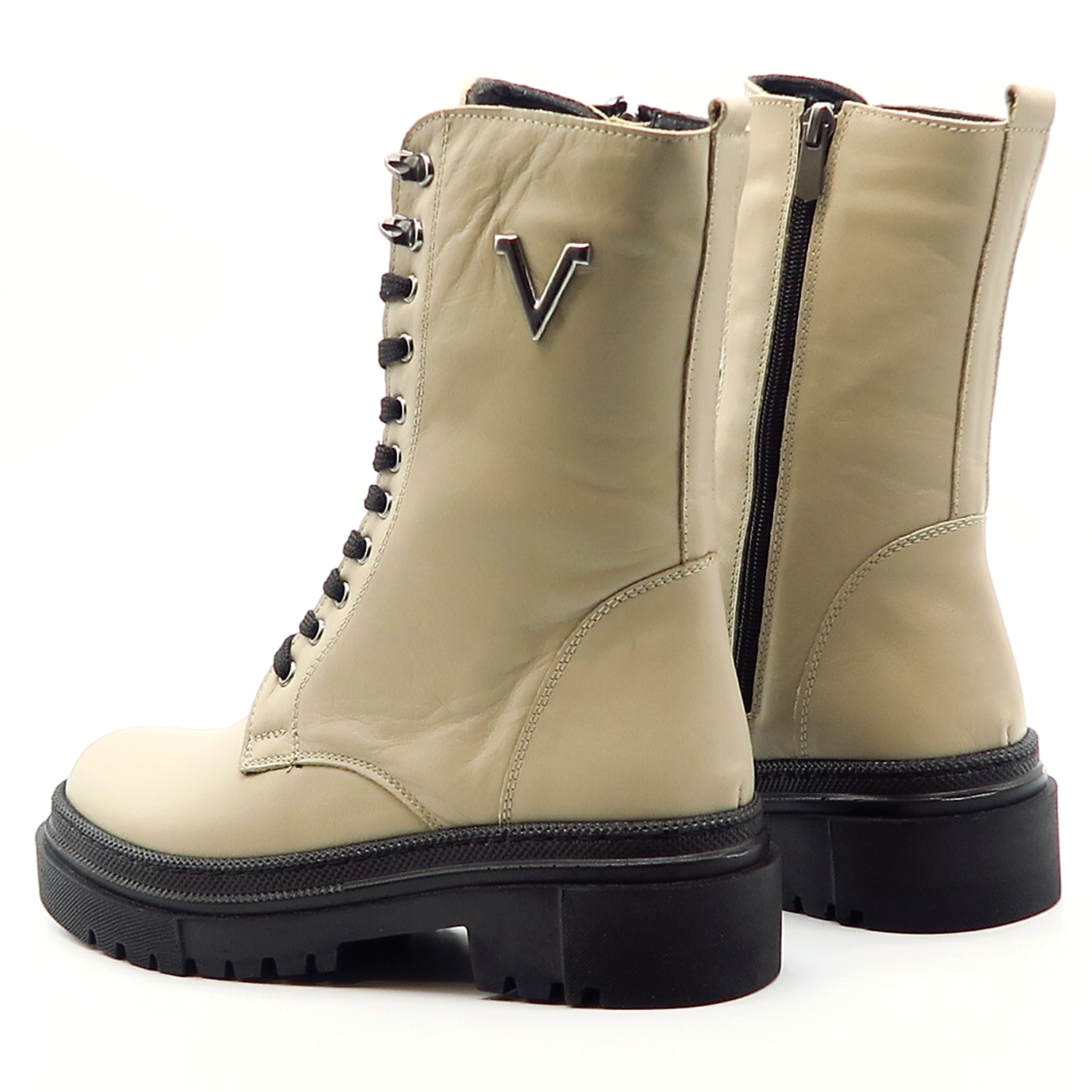 Dámske trendové workery značky KLOP. Model v béžovej farbe, ktorá sa super hodí k rôznym outfitom. Zvršok vyrobený z prírodnej kože. Bočnú časť zdobí strieborná aplikácia v tváre V. Počas chladných zimných dni Vás bude hriať vnútorná kožušinka. Dizajn, ktorý pôsobí moderne a štýlovo. Zapínanie – šnurovanie, ale aj bočný zips.