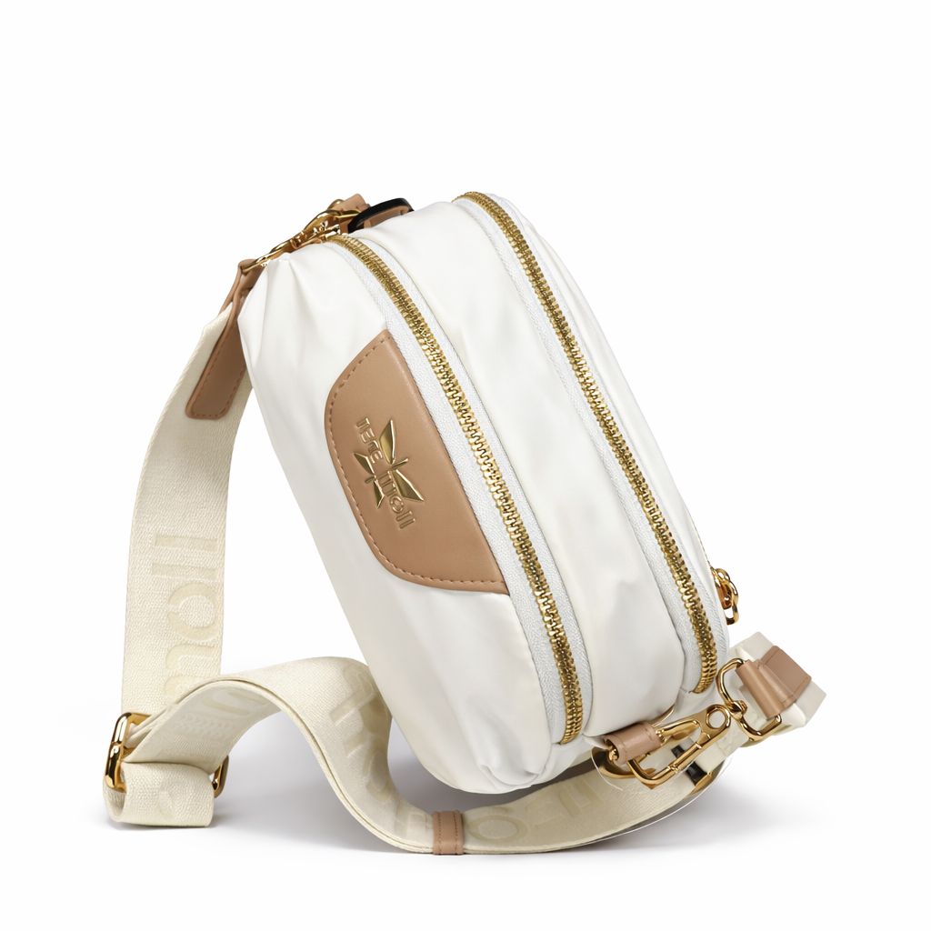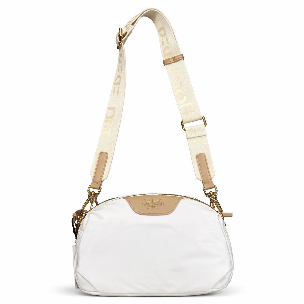 Kvalitná kabelka od značky PEPE MOLL. Model v biele farbe. Zvršok vyrobený z kvalitného textilného materiálu a eko-kože.