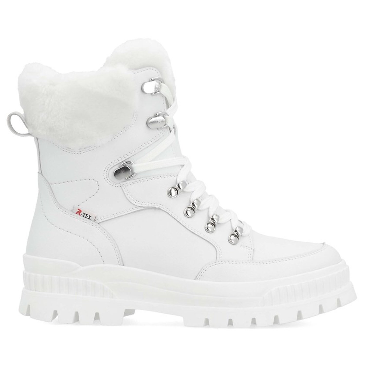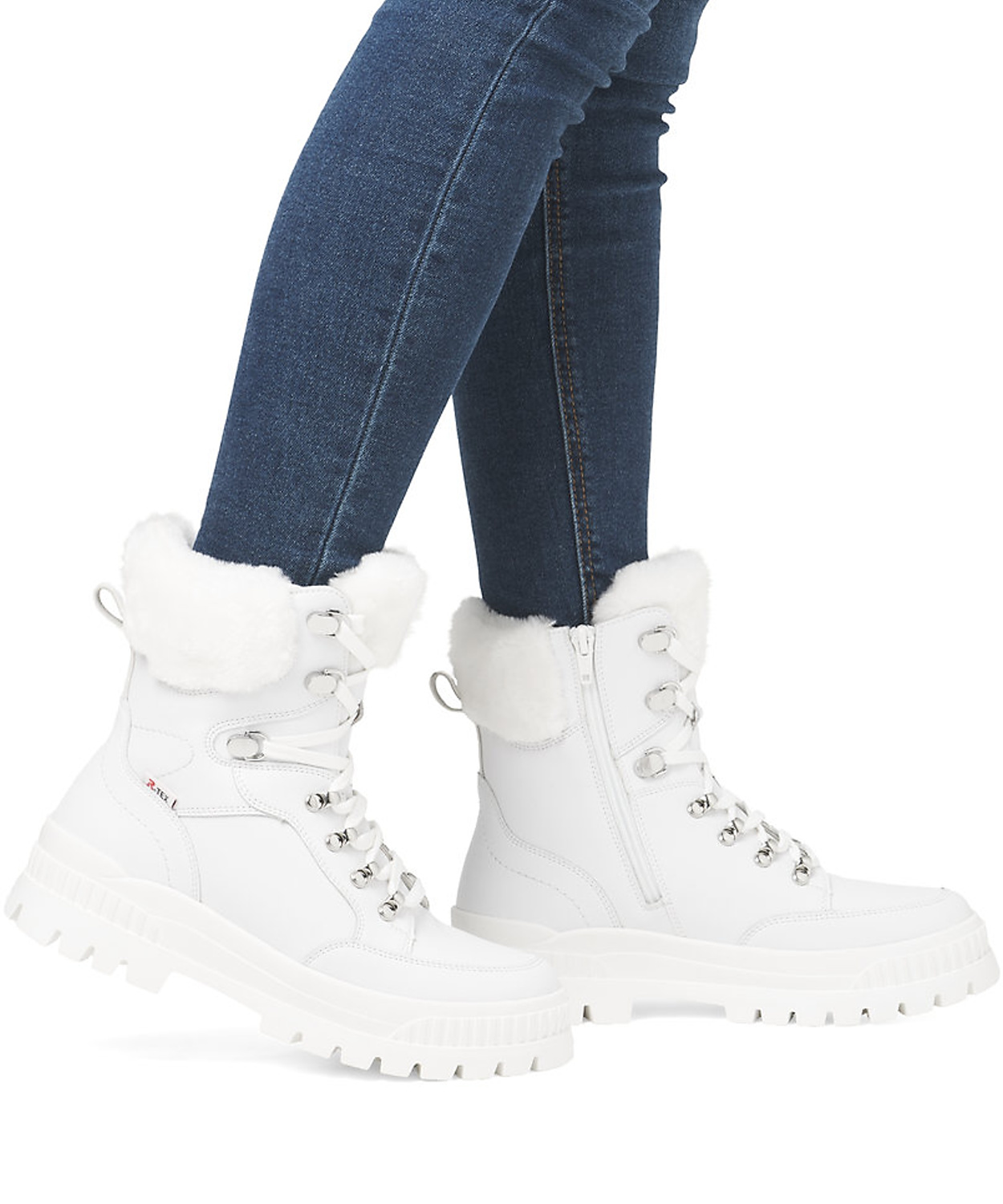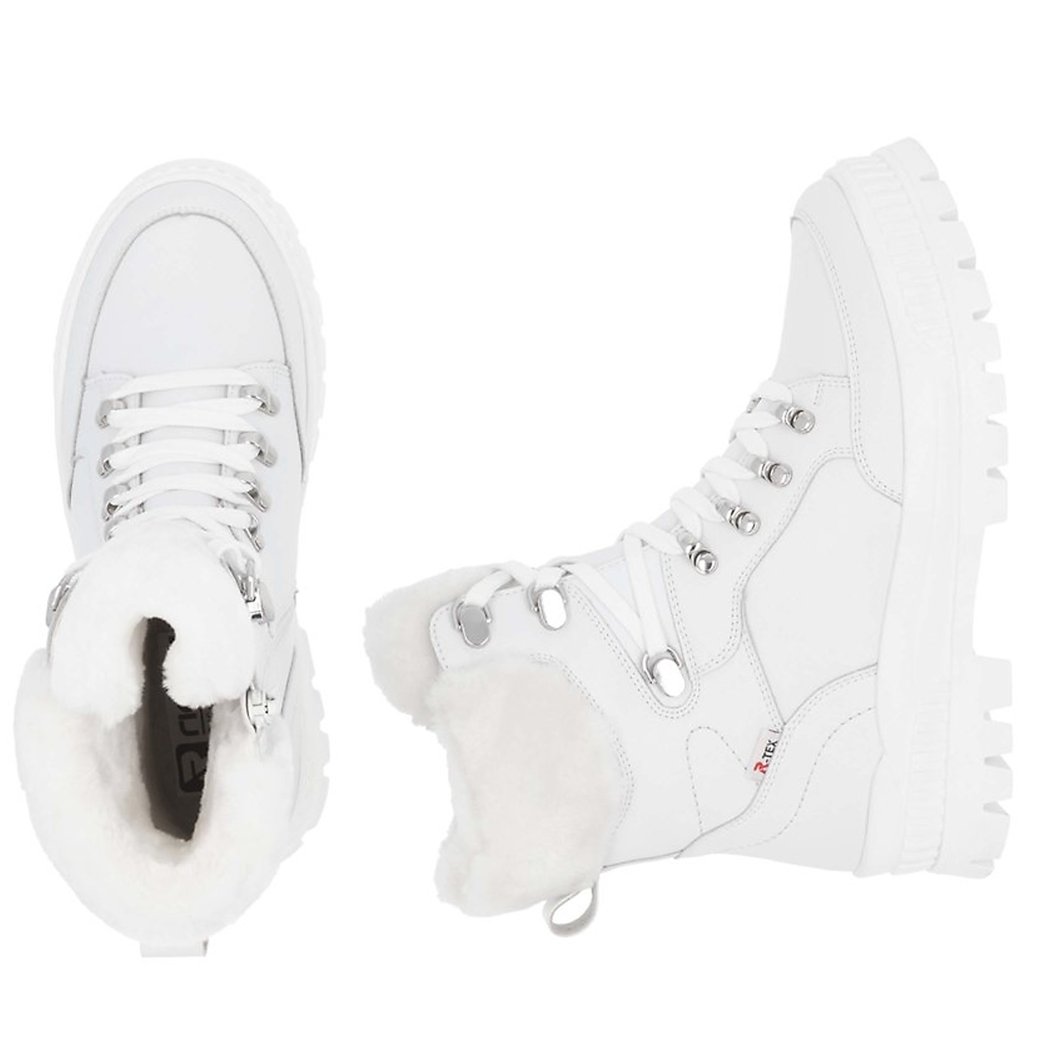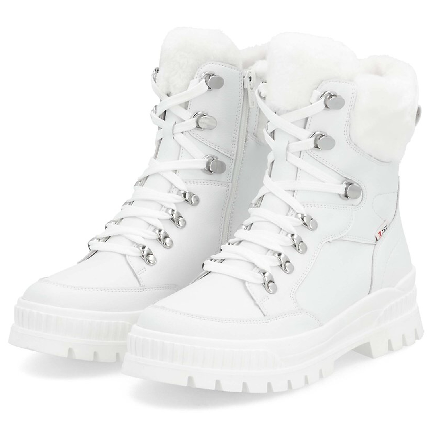 Dámske členkové topánky nemeckej značky RIEKER. Zvršok vyrobený z prírodnej kože. Topánky sú vybavené teplou podšívkou, ktorá udrží nohy v pohodlí počas chladných dní. Pre ešte väčší komfort sú doplnené o mäkkú vyberateľnú stielku, vďaka ktorej sa Vám budú dobre nosiť. Zapínanie – bočný zips a šnurovanie. TEX membrána zaistí pocit sucha. Výhodou tohto modelu je protišmyková podrážka.
