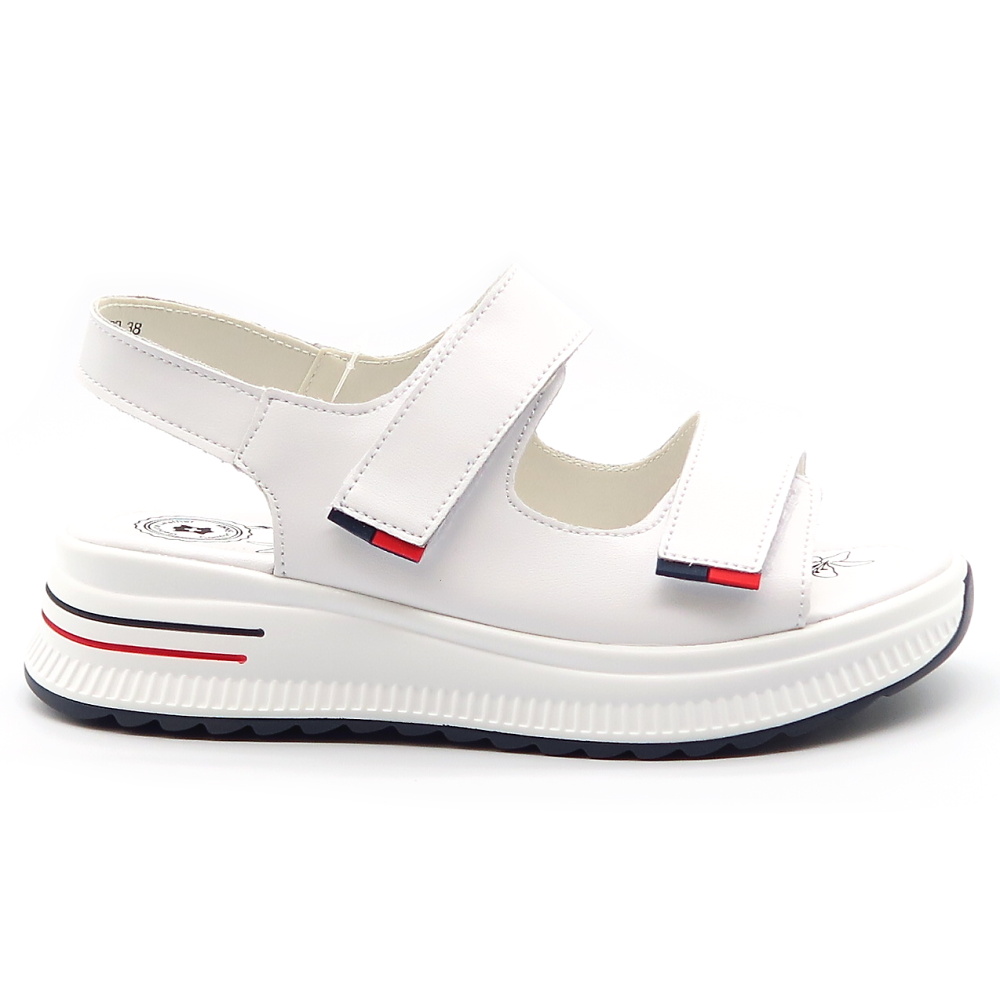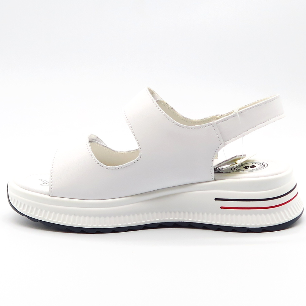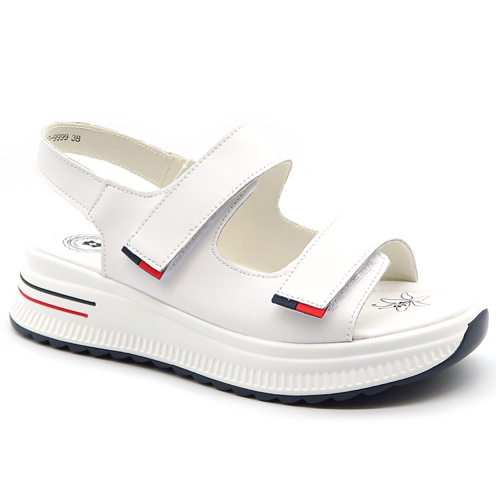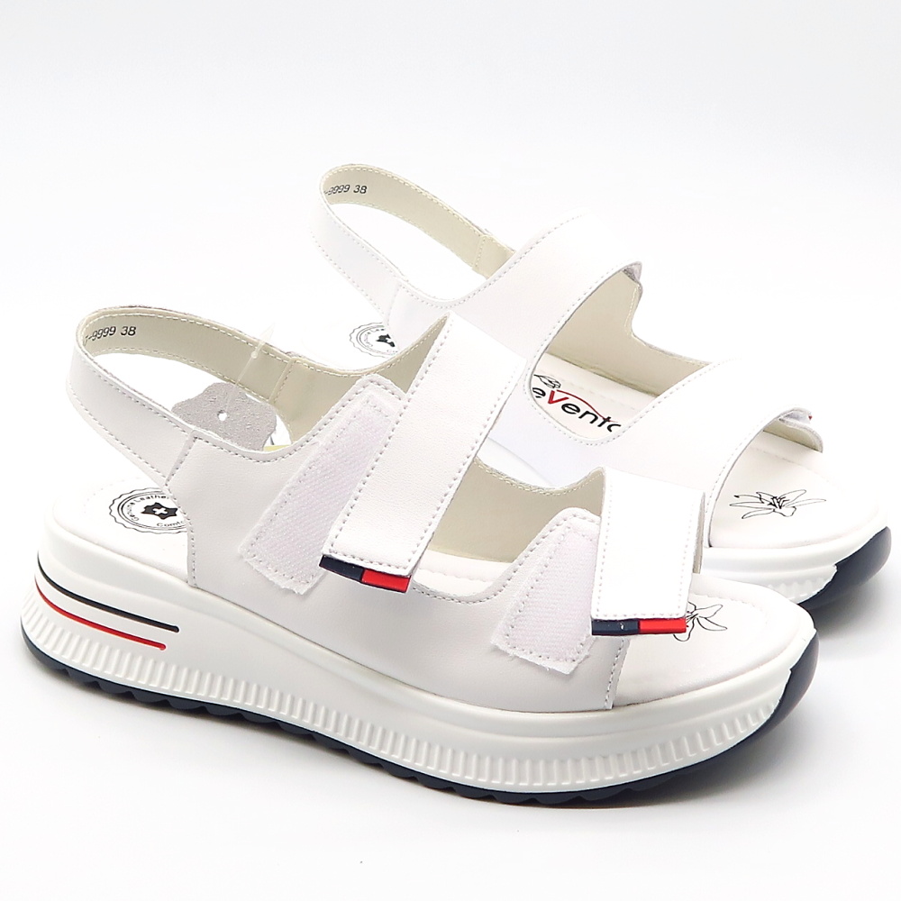 Dámske pohodlné sandále značky EVENTO. Model v bielej farbe, ktorá sa ľahko kombinuje s rôznymi outfitmi. Zvršok vyrobený z prírodnej kože. Vďaka praktickému zapínaniu na suchý zips sa sandále ľahko prispôsobia chodidlu a umožňujú rýchle a pohodlné obúvanie. Mäkká, kožená stielka a vyššia podrážka poskytujú maximálny komfort aj pri dlhšom nosení. Vhodné aj na širšie chodidlá.