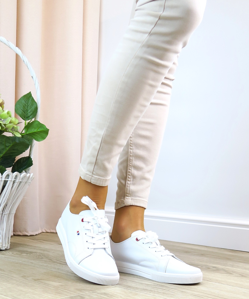 Biele tenisky sú univerzálnou a štýlovou obuvou, ktorá sa hodí k rôznym outfitom. Sú vyrobené z prírodnej kože s pohodlnou gumovou podrážkou. Ich minimalistický dizajn dodáva čistý vzhľad, vďaka čomu sú ideálne na bežné nosenie, športové aktivity alebo aj do mesta. Biele tenisky sú obľúbené pre svoju všestrannosť a jednoduchosť.