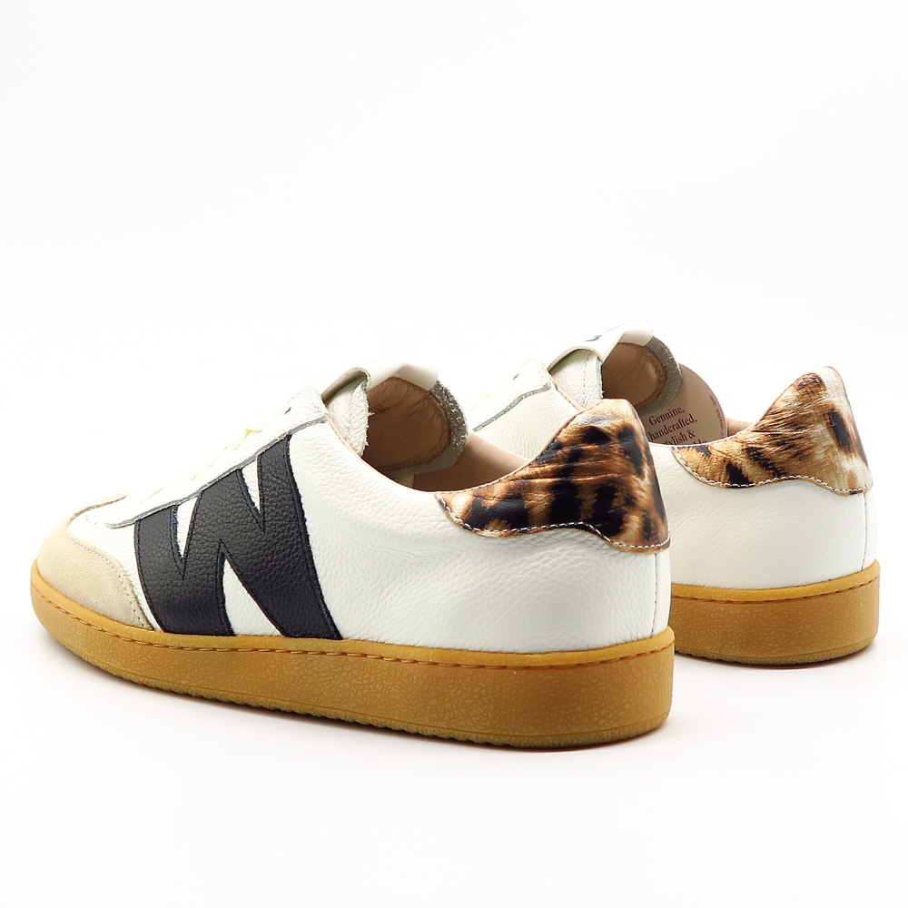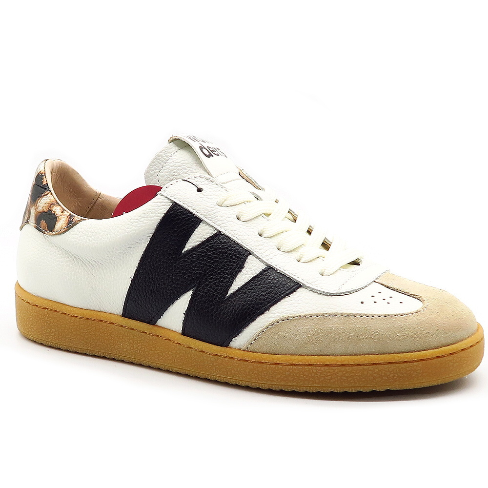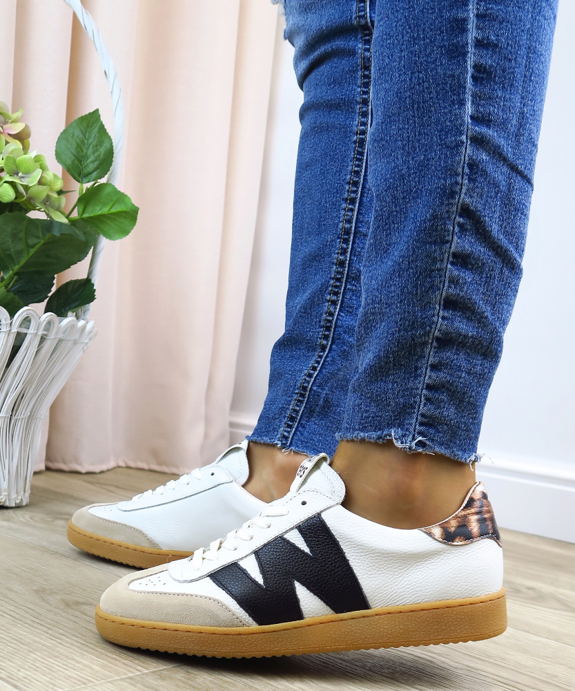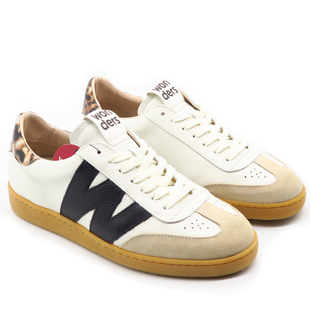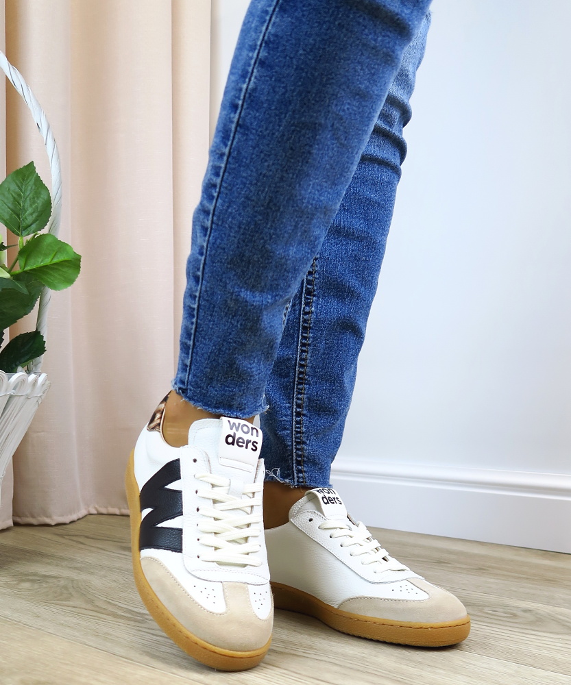 Štýlové dámske tenisky značky WONDERS sú ideálnou voľbou pre ženy, ktoré chcú spojiť pohodlie s moderným dizajnom. Biele kožené prevedenie dopĺňajú kontrastné čierne detaily a jemné semišové prvky na špičke, ktoré dodávajú teniskám originálny a trendový vzhľad. Charakteristický bočný prvok v tvare “W” podčiarkuje jedinečný štýl značky. Kvalitné spracovanie a mäkká stielka zabezpečujú maximálne pohodlie počas celého dňa.