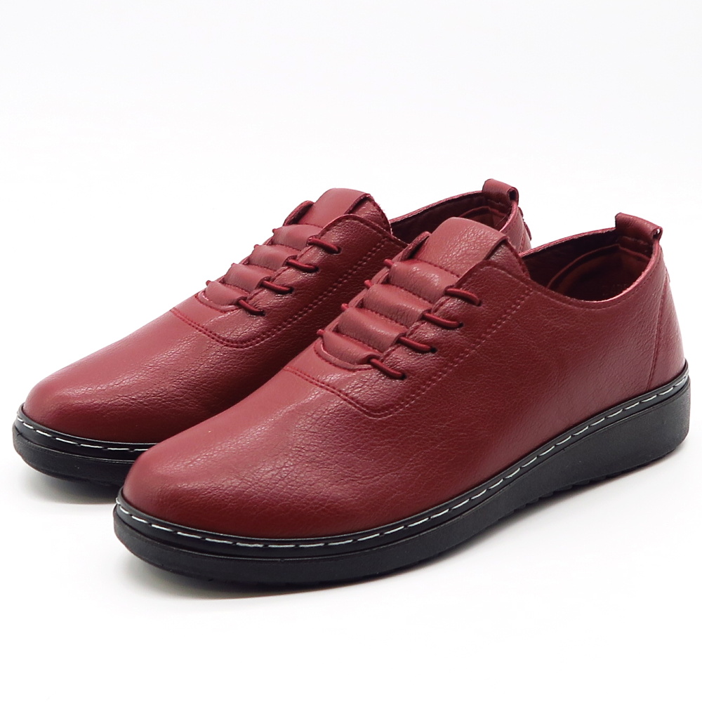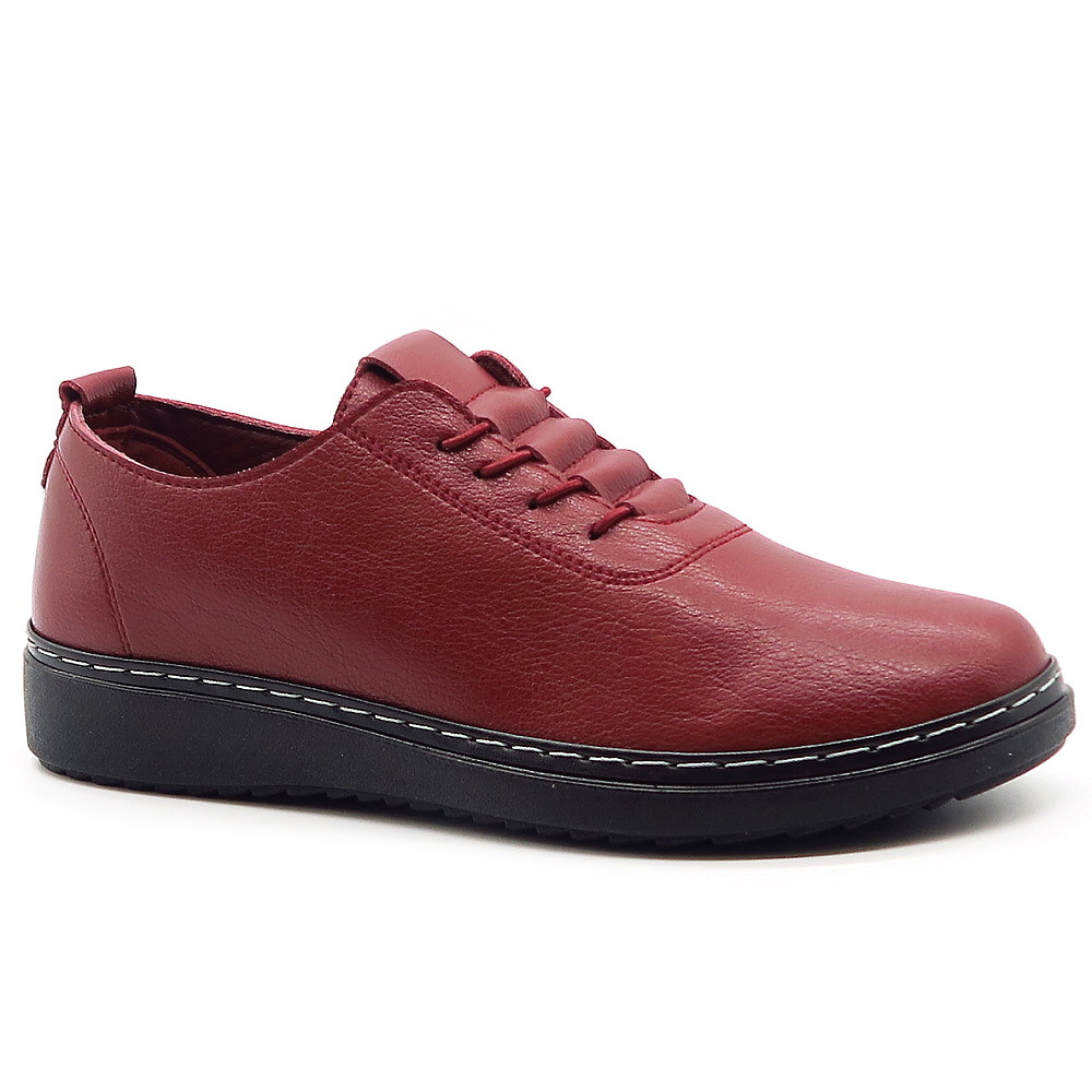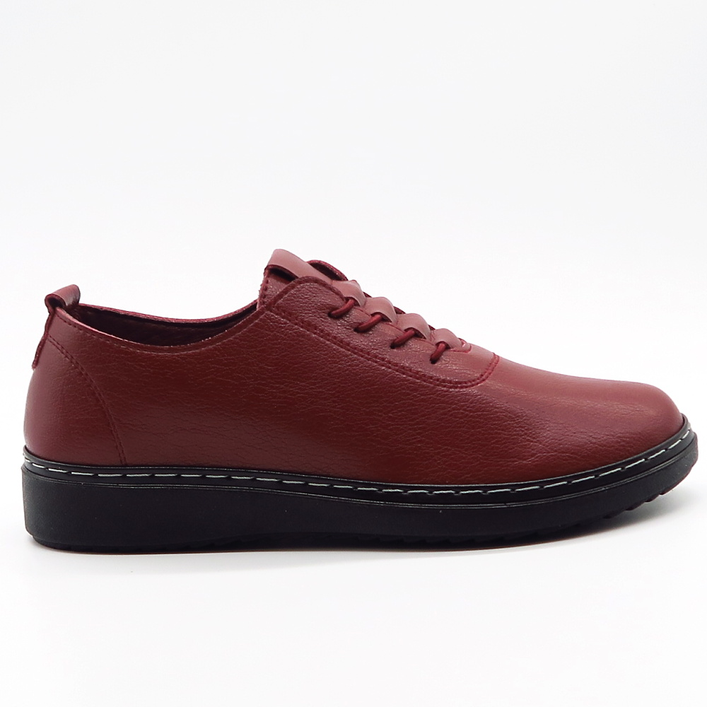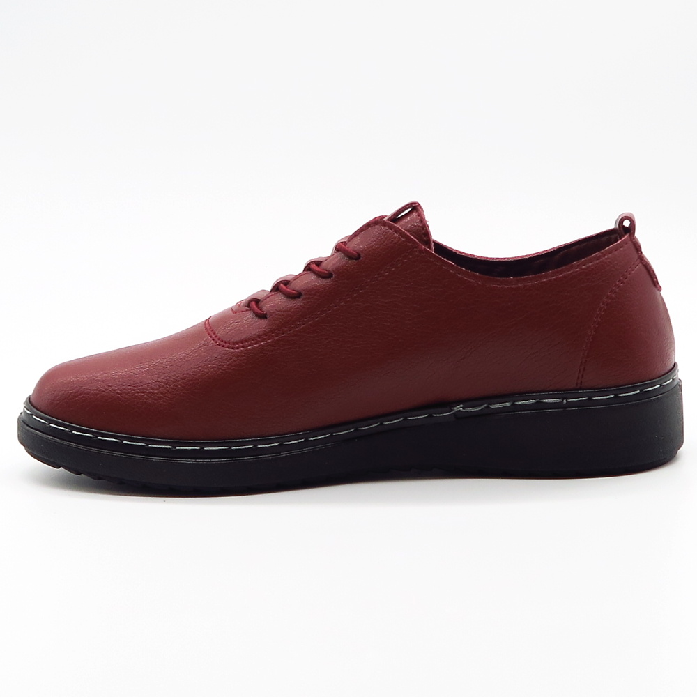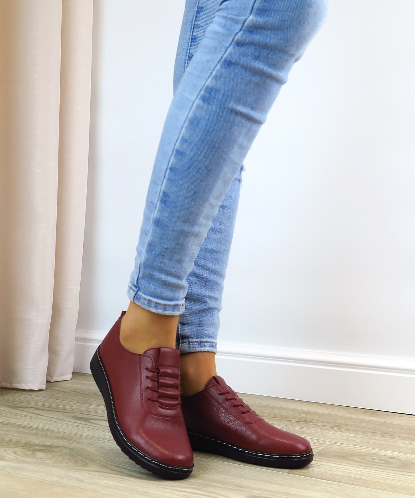 Pohodlné dámske poltopánky navrhnuté pre ženy, ktoré hľadajú spoľahlivú obuv na každý deň bez kompromisov medzi štýlom a komfortom. Zvršok vyrobený z ekologickej kože. Bordová farba dodáva topánkam elegantný charakter a oživí každý outfit. Elastické šnurovanie umožňuje rýchle obúvanie a pohodlné nosenie aj počas celého dňa. Výhodou je ich flexibilná podrážka a mäkká vnútorná stielka.