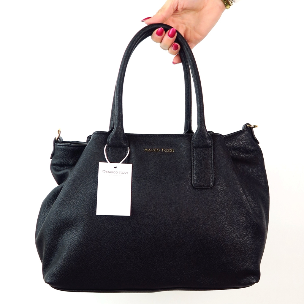 Kvalitná kabelka nemeckej značky MARCO TOZZI. Model v čiernej farbe. Zvršok vyrobený z ekologickej kože.