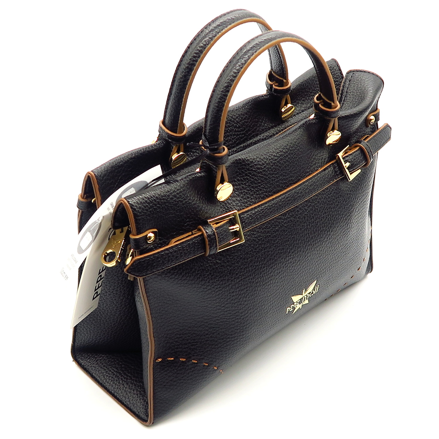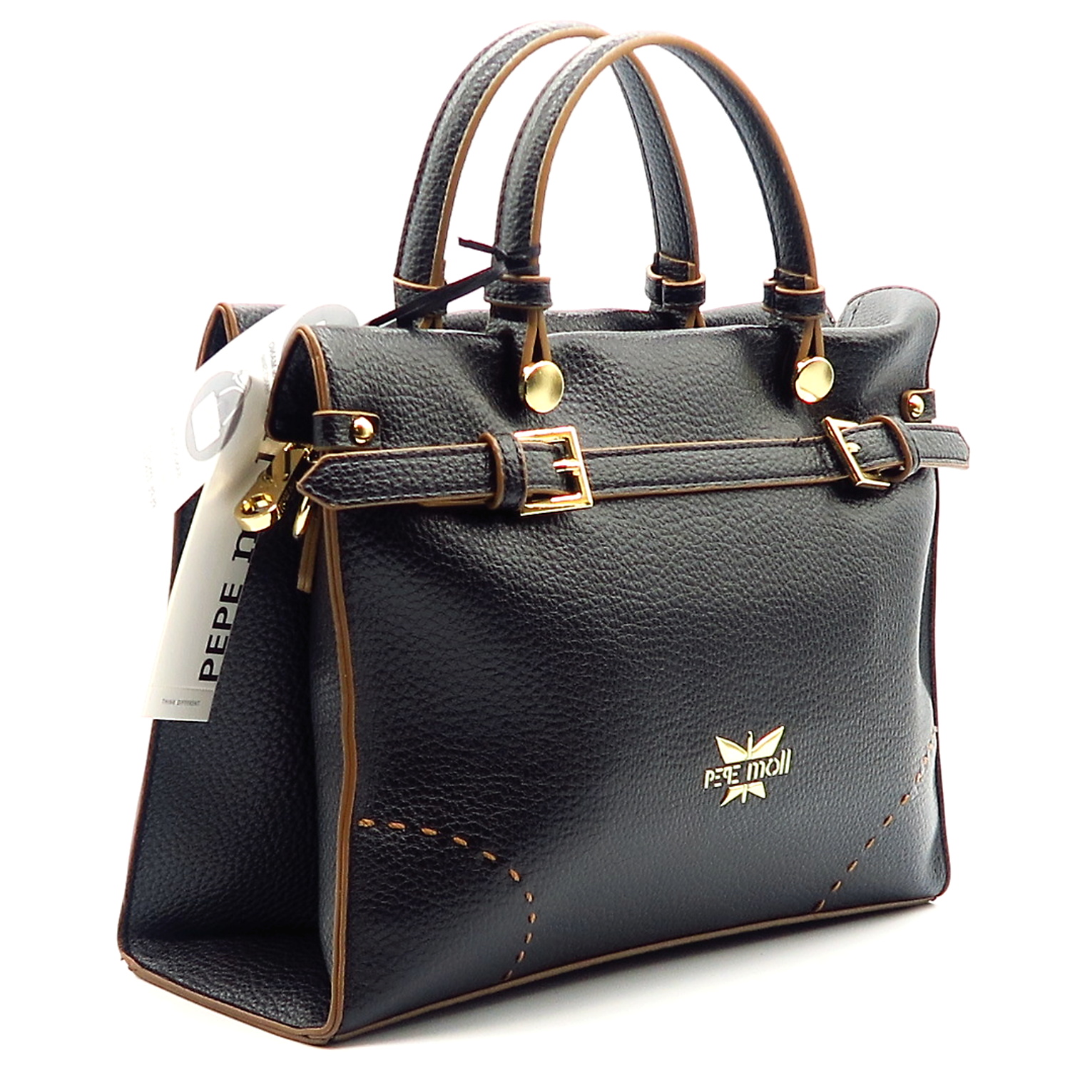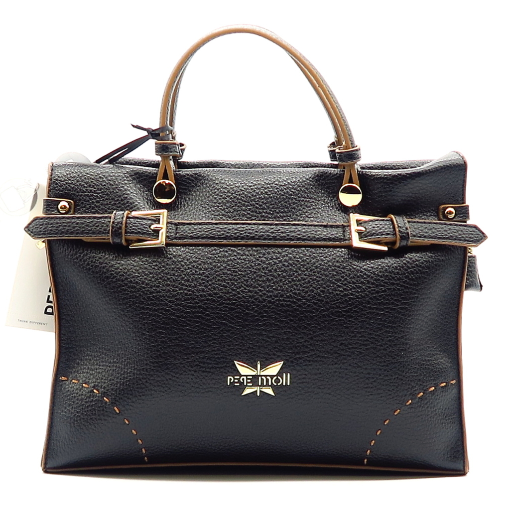 Kvalitná kabelka značky PEPE MOLL. Model v čiernej farbe. Zvršok vyrobený z ekologickej kože.