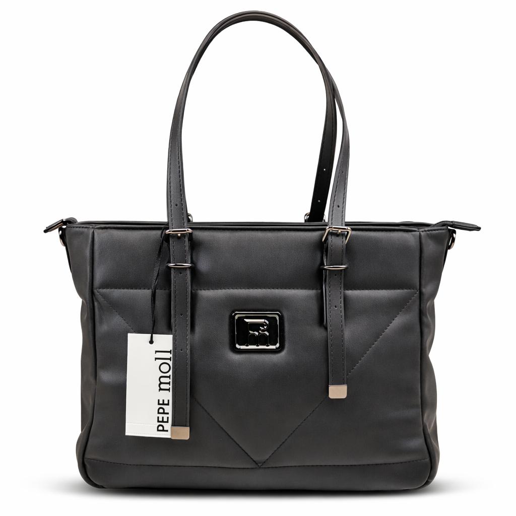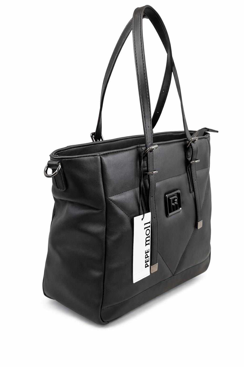 Kvalitná kabelka od značky PEPE MOLL. Model v čiernej farbe. Zvršok vyrobený z ekologickej kože.
