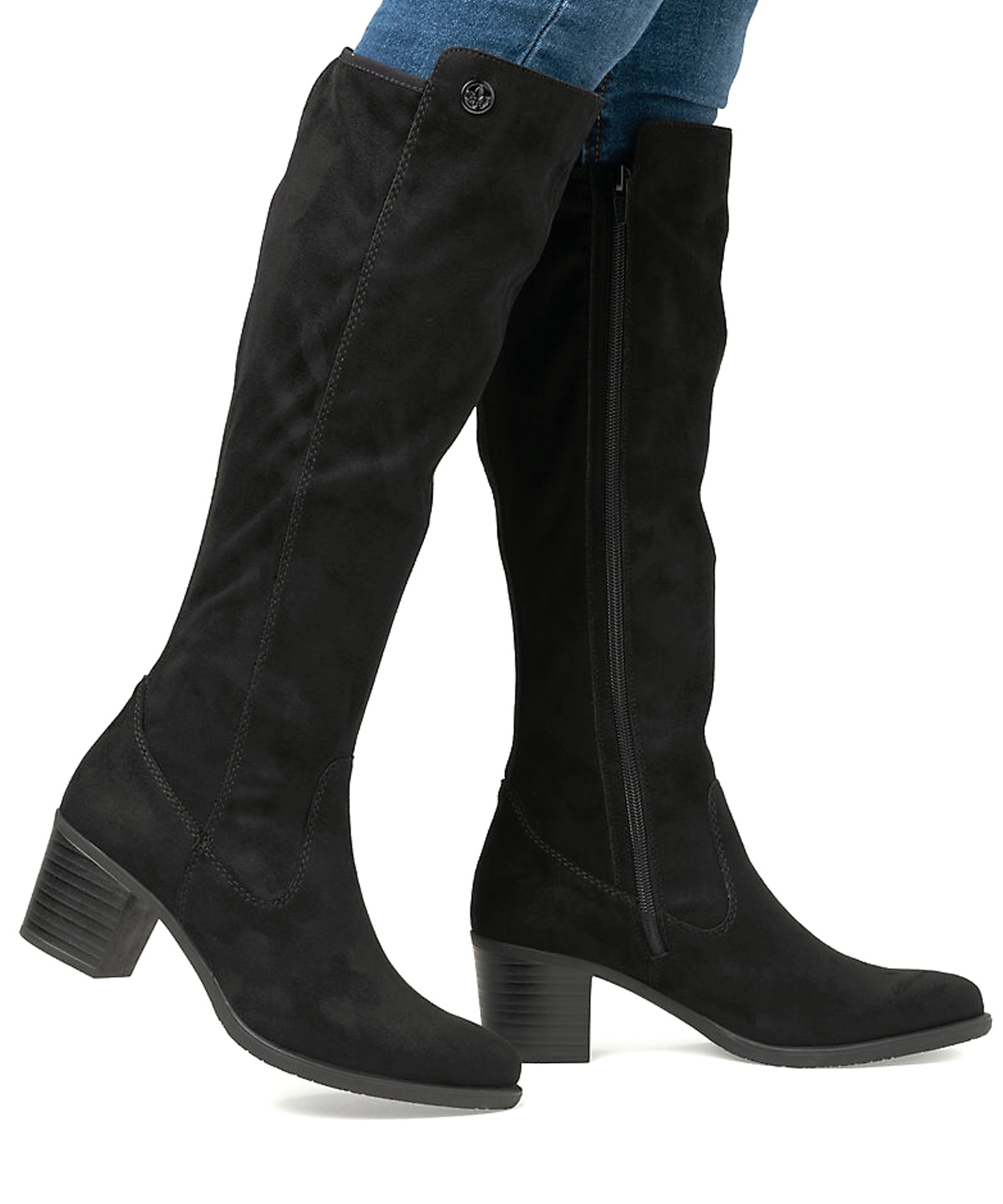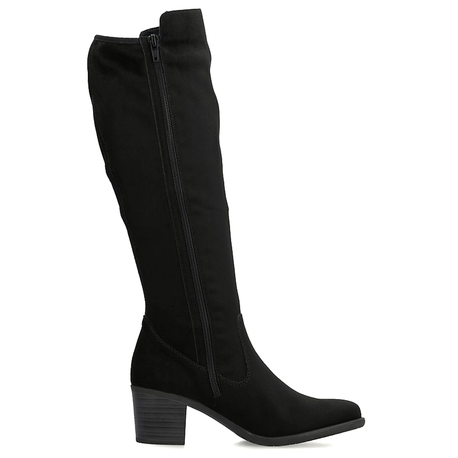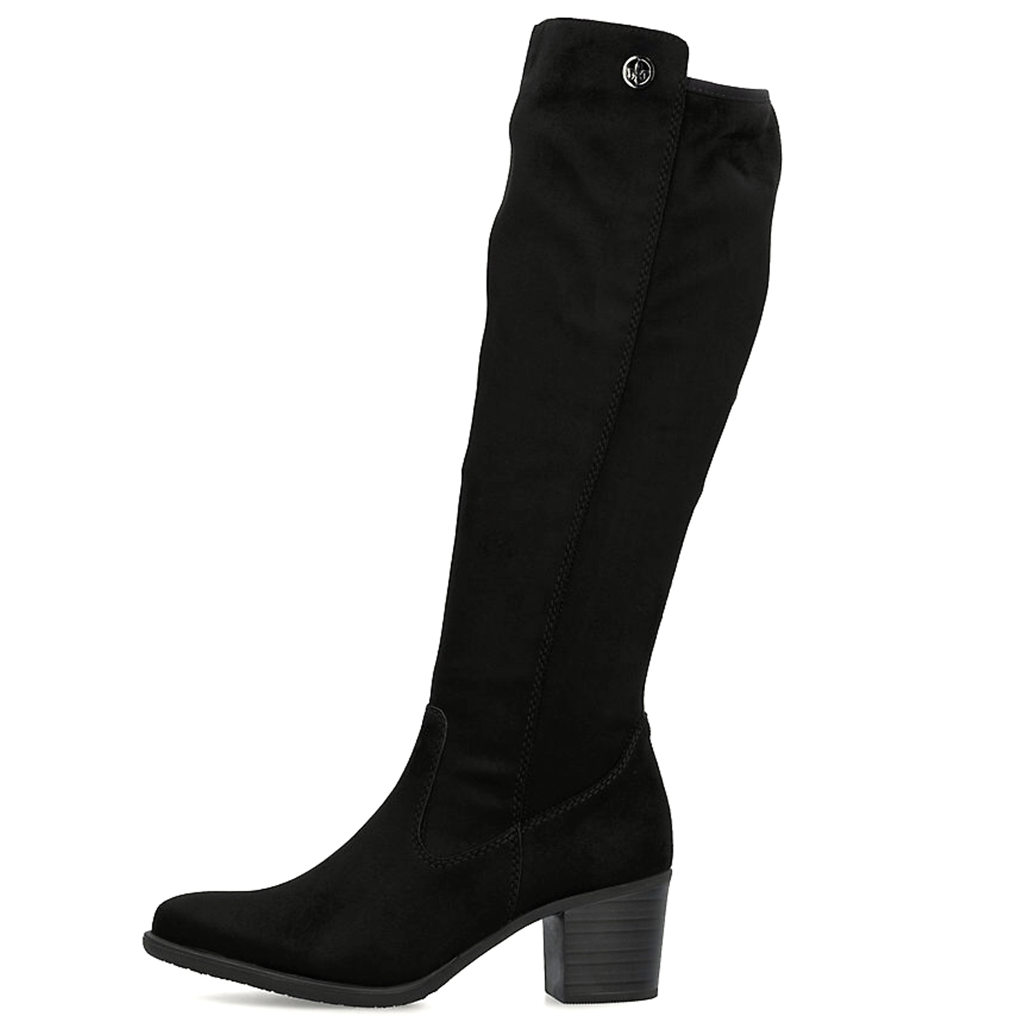 Dámske čižmy RIEKER spájajú elegantný vzhľad s typickým pohodlím, ktoré táto značka ponúka. Zvršok je vyrobený z kvalitného textilného materiálu v čiernom odtieni, ktorý sa ľahko kombinuje. Čižmy majú jednoduchý, nadčasový dizajn s jemným prešívaním. Vďaka hrubšiemu podpätku poskytujú stabilitu aj pri dlhšom nosení. Flexibilná podrážka s technológiou ANTISTRESS tlmí nárazy a prispieva k celkovému komfortu. Vnútorná časť je zateplená mäkkou textilnou podšívkou.