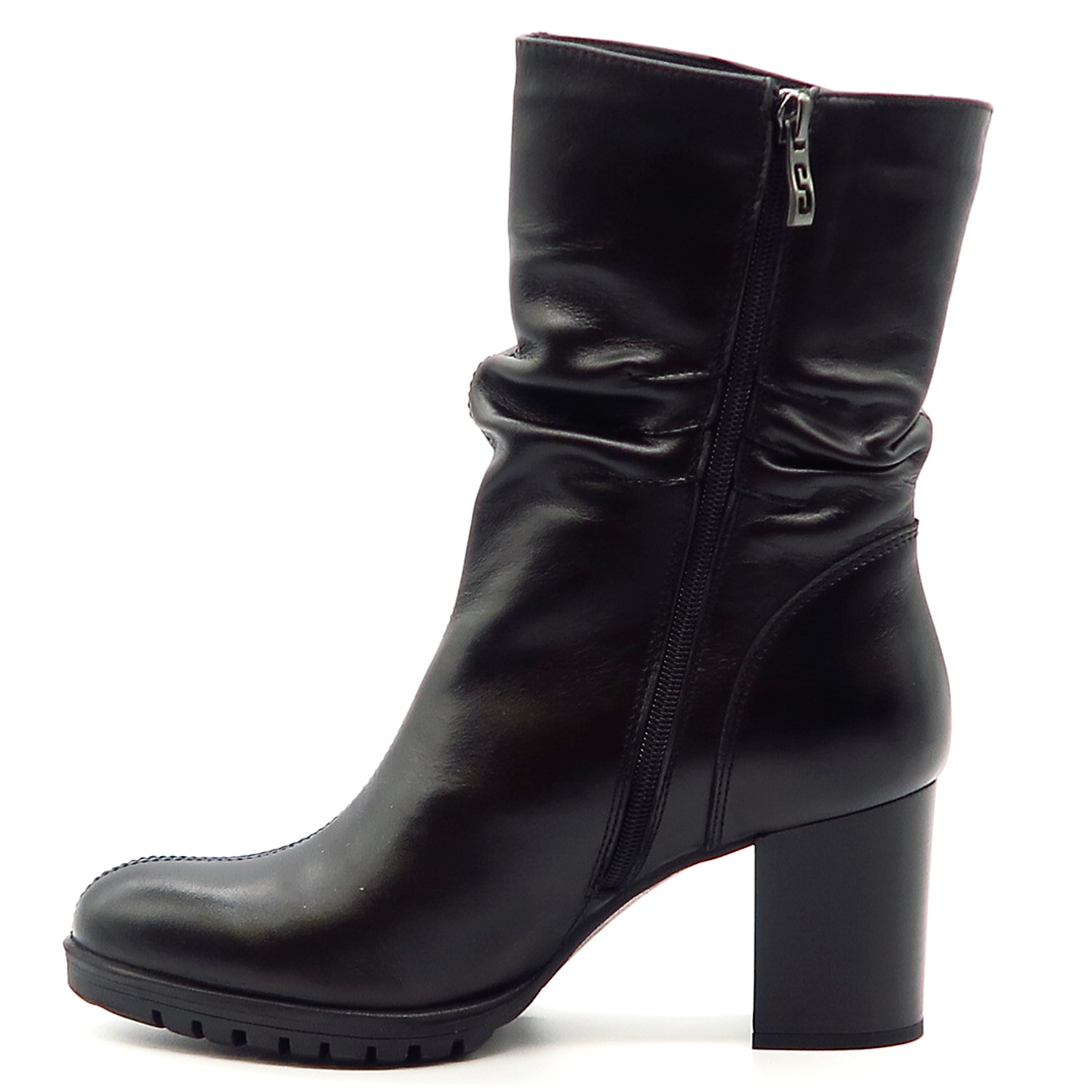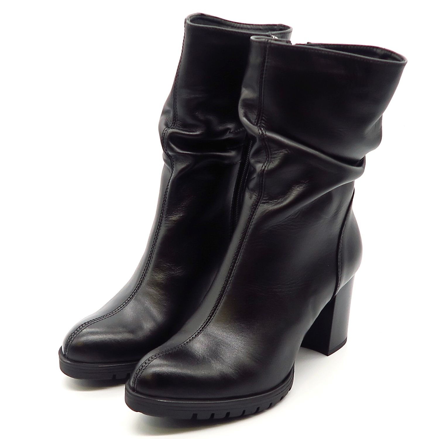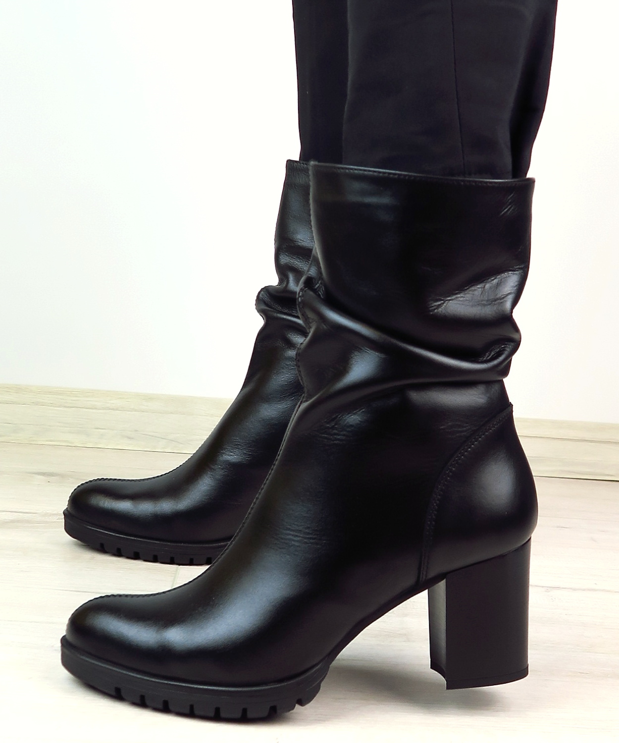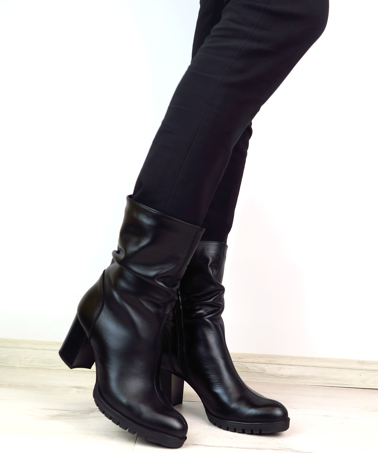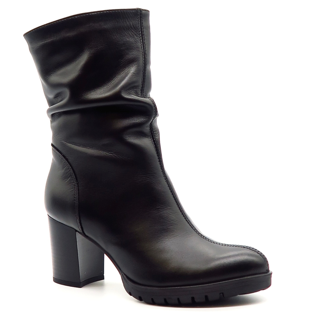 Dámske členkové topánky od značky SIMEN. Model v praktickej čiernej farbe. ktorá sa ľahko kombinuje. Zvršok vyrobený z prírodnej kože. Kvalitný kúsok v modernom prevedení, ktorý krásne sadne. Jemne riasenie robí tento model výnimočným. Zateplené sú kožušinou. Moderné čižmy na vyššom podpätku, ktoré oživia nejeden zimný outfit.