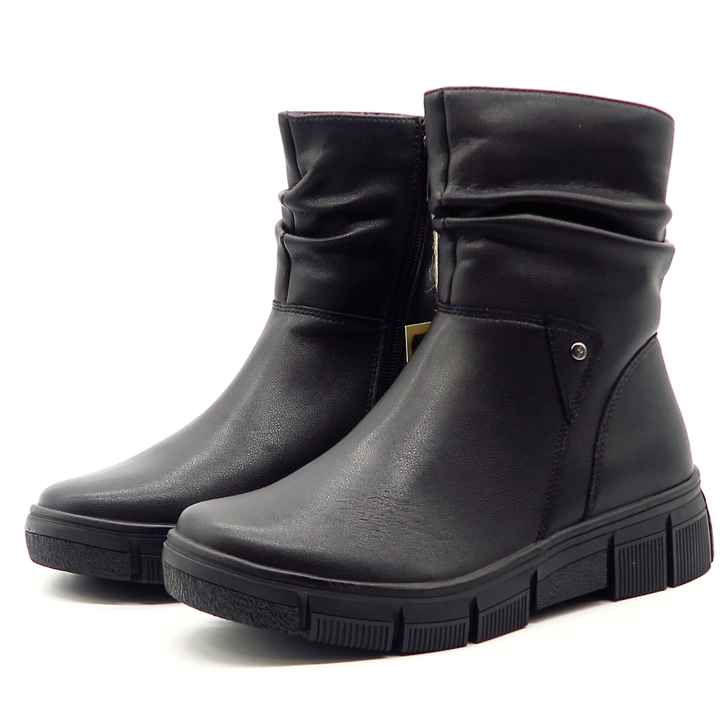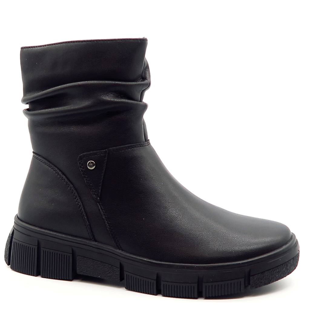 Čierne členkové topánky značky CAMBELL. Model v čiernej farbe. Zvršok vyrobený z prírodnej kože. Jednoduchý, čistý dizajn je doplnený jemným prešitím a mierne riaseným detailom v oblasti členka. Hrubá podrážka zabezpečuje stabilitu a komfort pri chôdzi, vďaka čomu sú topánky ideálne na každodenné nosenie. Vhodné na širšie chodidlá. Počas chladných dní Vás zahreje hrubšia kožušina vo vnútri.