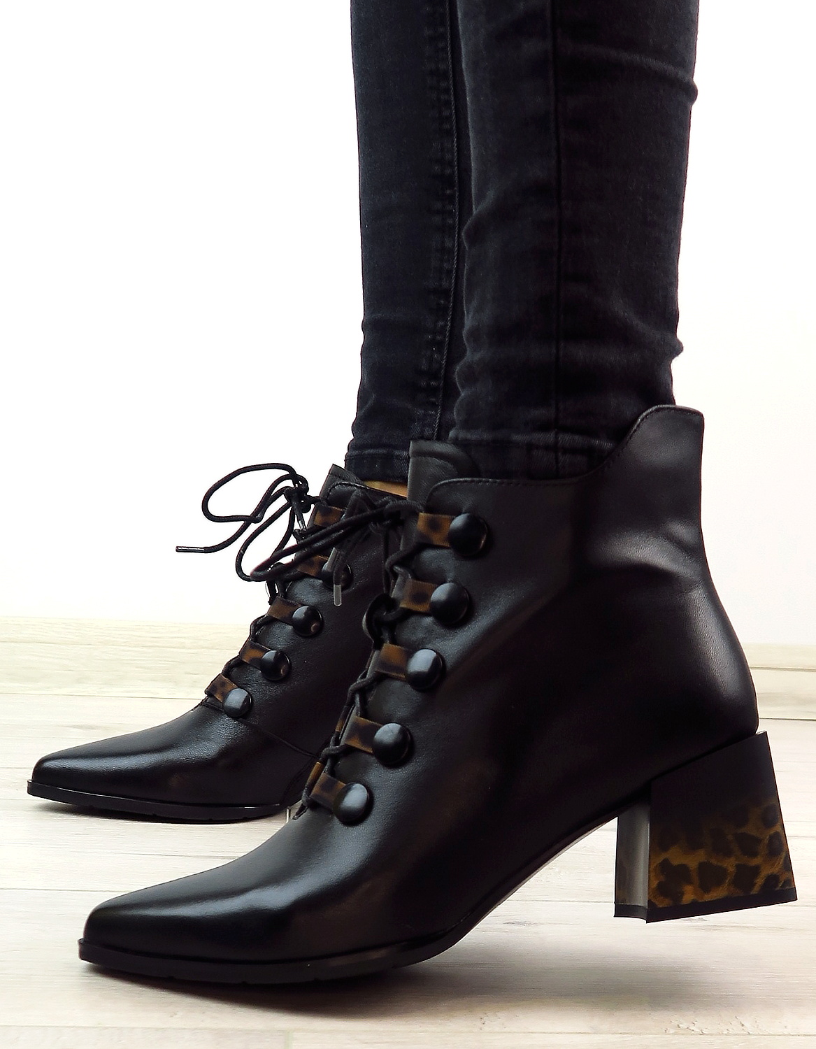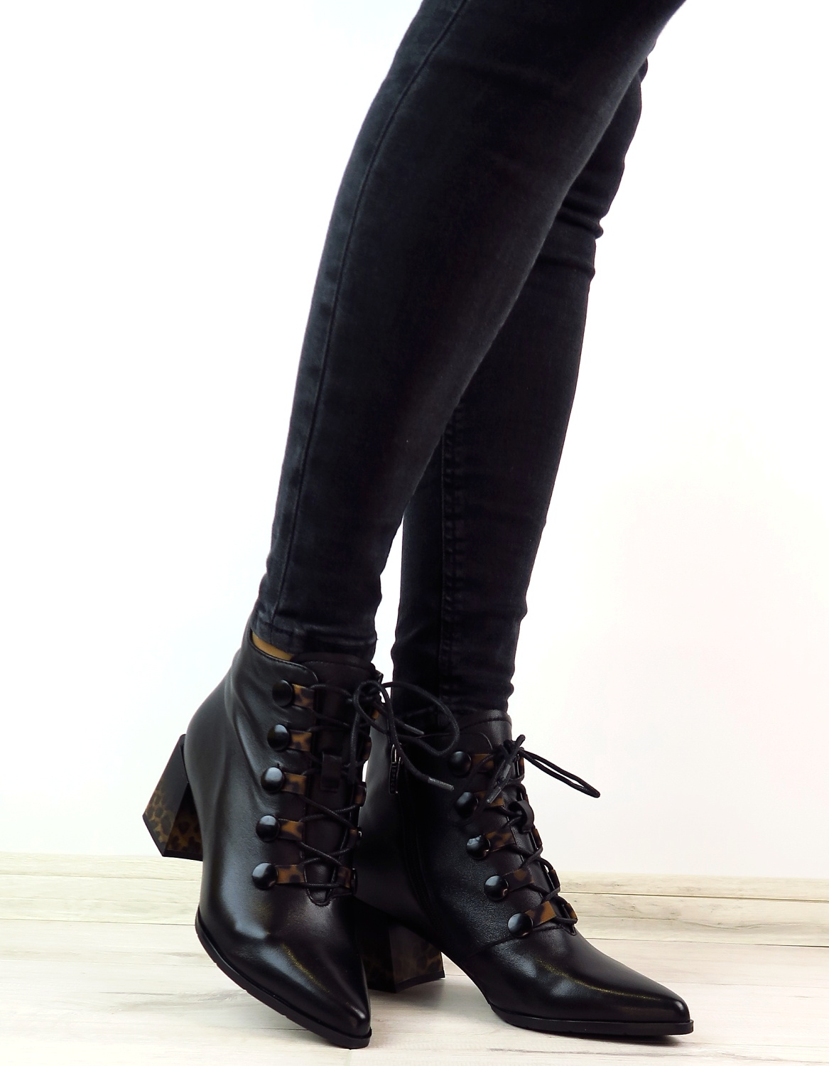 Dámske členkové topánky od kvalitnej značky EPICA. Topánky v čiernej farbe doplnené o zvierací motív na podpätku a pri šnurovaní, ktorý dotvára moderný look. Zvršok vyrobený z prírodnej kože. Pekne tvarovaný zvršok, ktorý super sadne. Komfortný krok Vám zaručí hrubší stabilný podpätok. Vhodné aj na chladnejšie dní. Zateplené jemnou kožušinou.