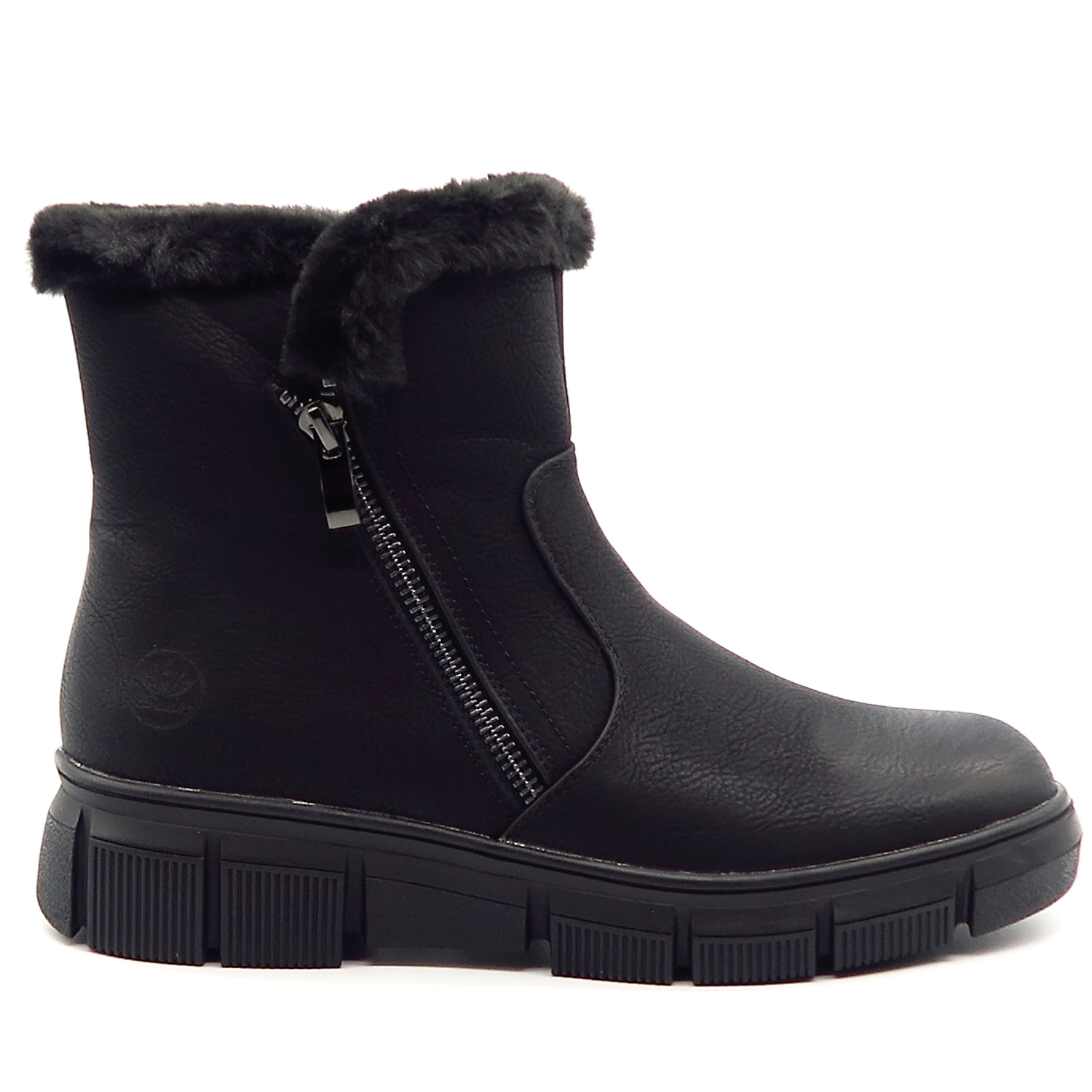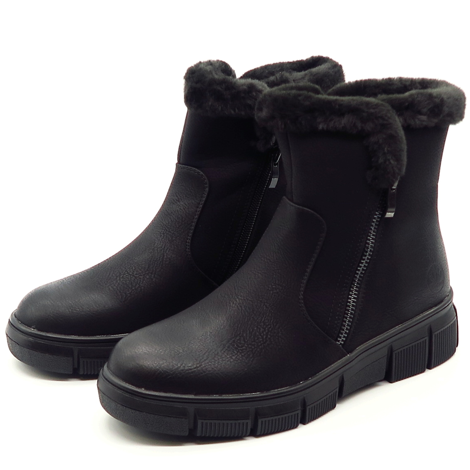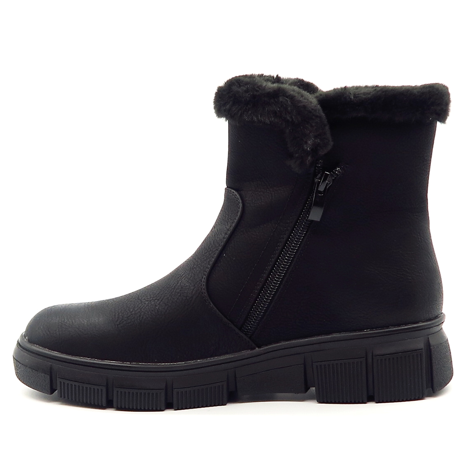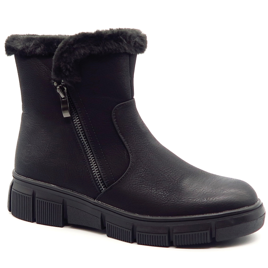 Čierne členkové topánky značky EVENTO. Model v čiernej farbe. Zvršok vyrobený z ekologickej kože. Veľkou výhodou sú dve funkčné zipsy, ktoré Vám uľahčia obúvanie a zároveň sú pekným doplnkom. Vhodné na širšie chodidlá. Počas chladných dní Vám zahreje hrubšia kožušina vo vnútri.