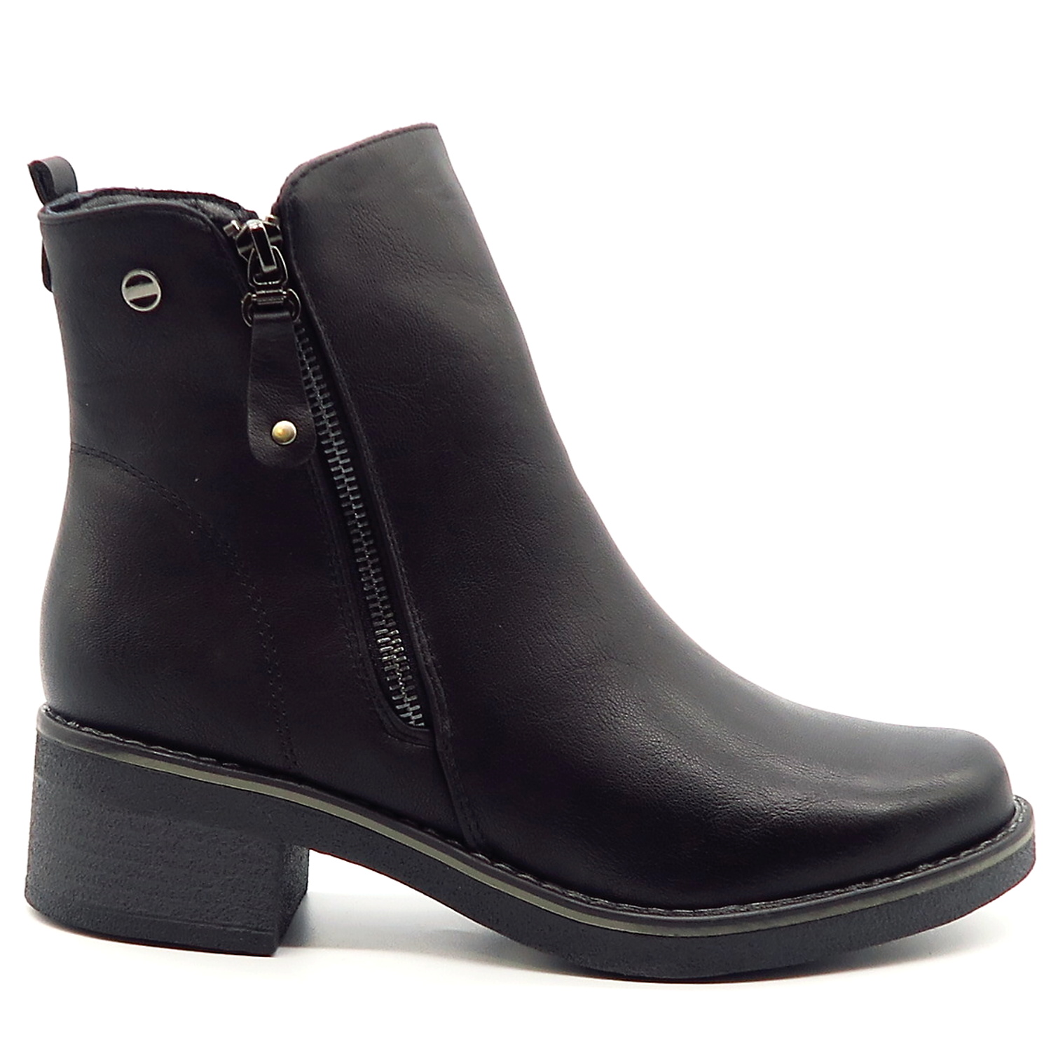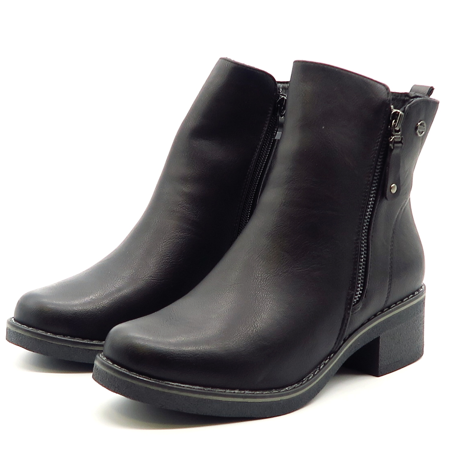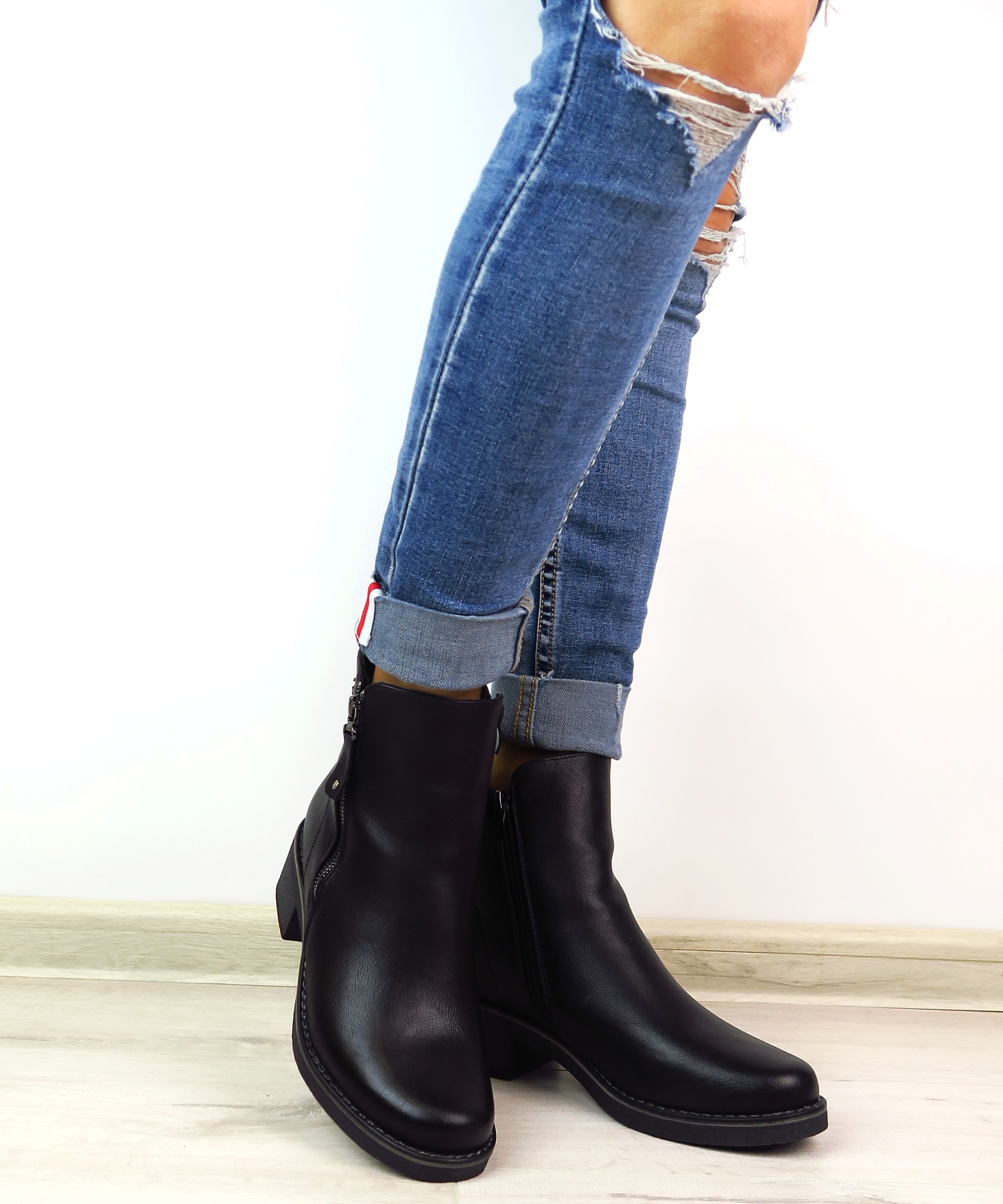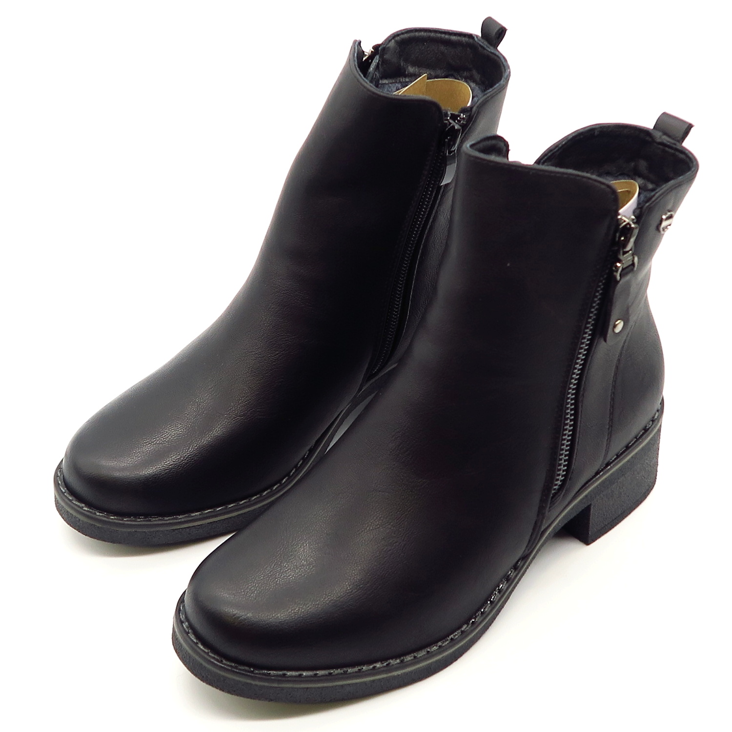 Dámske členkové topánky značky UNISOFT. Model v čiernej farbe. Zvršok vyrobený z ekologickej kože. Elegantné topánky v jednoduchom dizajne, ideálne na každodenné nosenie. Výhodou tohto modelu sú bočné zipsy, ktoré Vám uľahčia obúvanie. Topánky vhodné na zimné obdobie a to vďaka vnútornej kožušine, ktorá prijemne zahreje. Komfortný hrubší podpätok ocení každá z Vás.