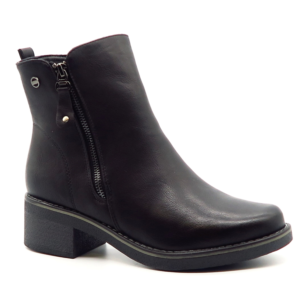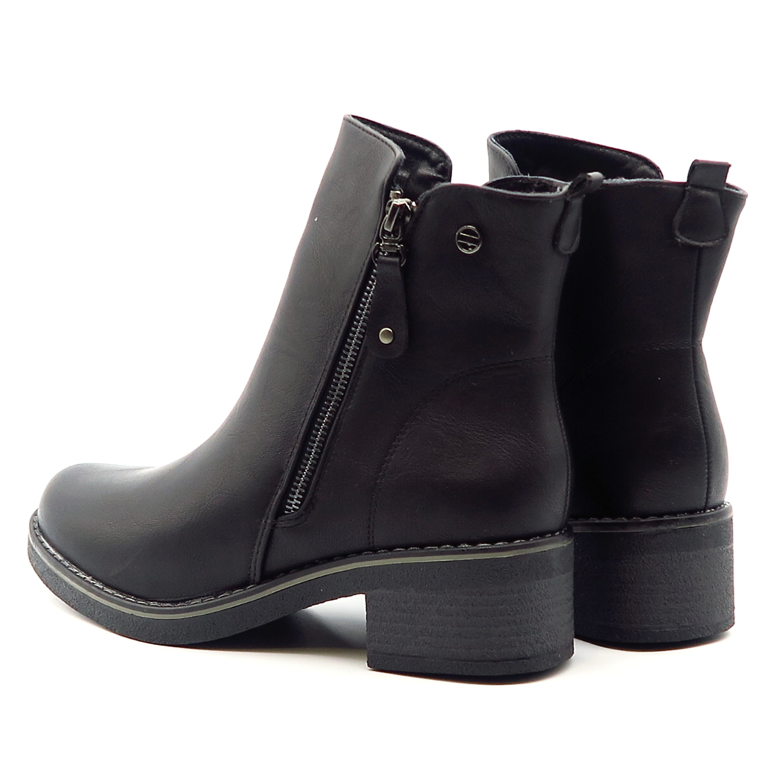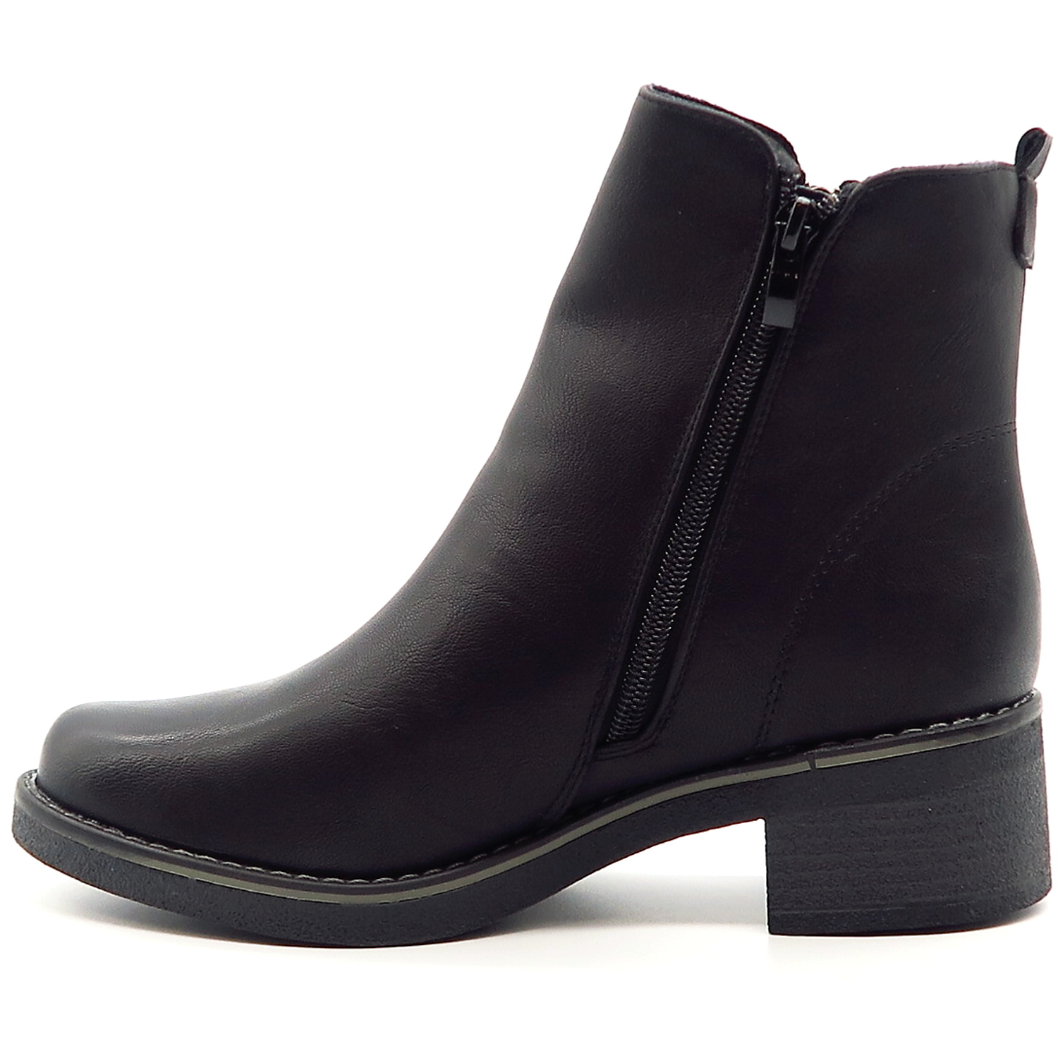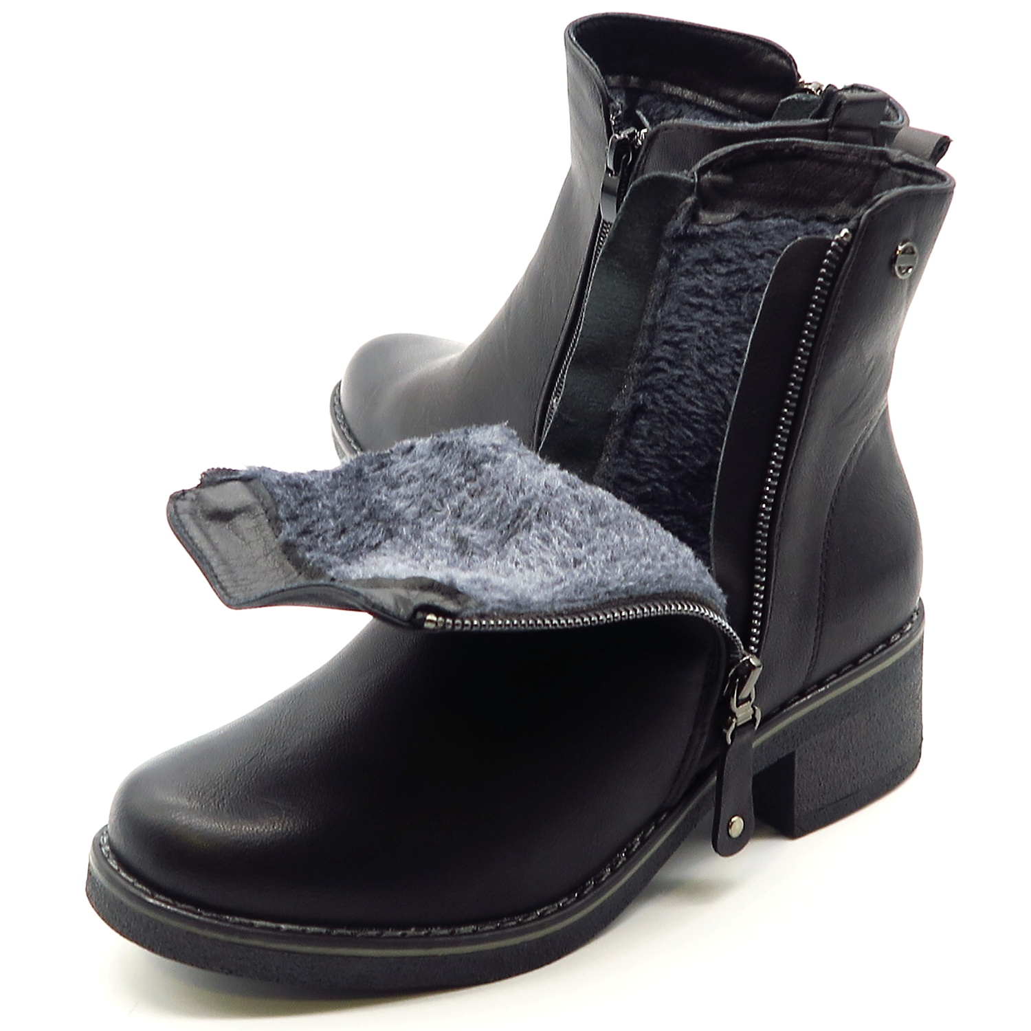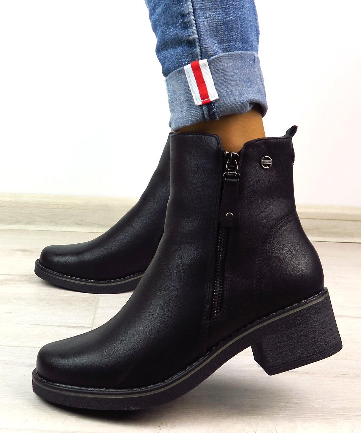 Dámske členkové topánky značky UNISOFT. Model v čiernej farbe. Zvršok vyrobený z ekologickej kože. Elegantné topánky v jednoduchom dizajne, ideálne na každodenné nosenie. Výhodou tohto modelu sú bočné zipsy, ktoré Vám uľahčia obúvanie. Topánky vhodné na zimné obdobie a to vďaka vnútornej kožušine, ktorá prijemne zahreje. Komfortný hrubší podpätok ocení každá z Vás.