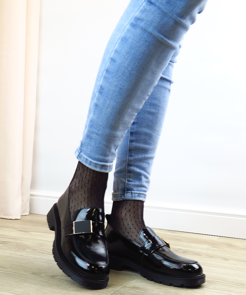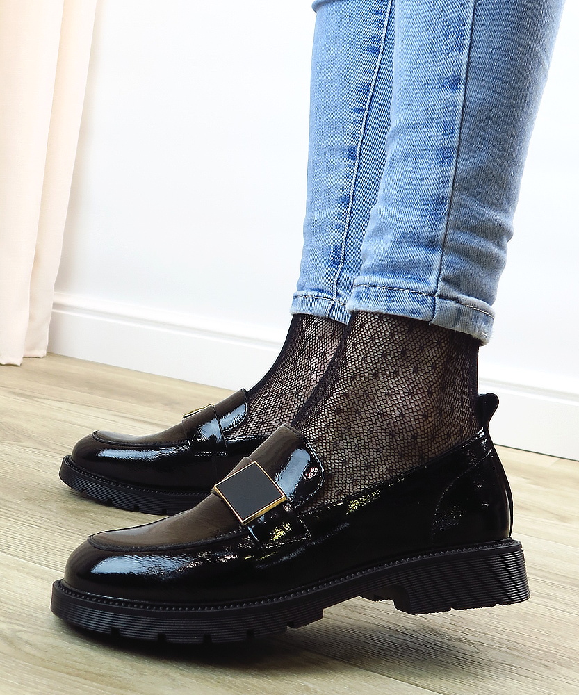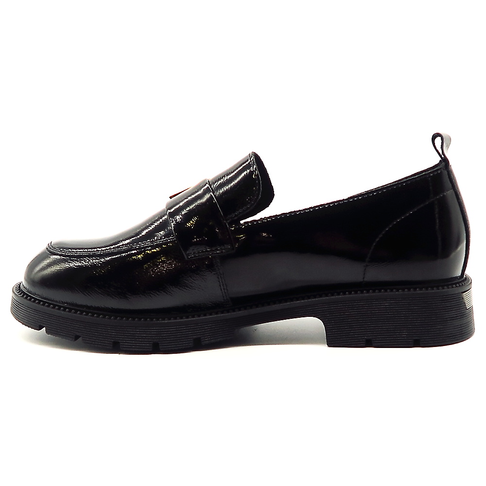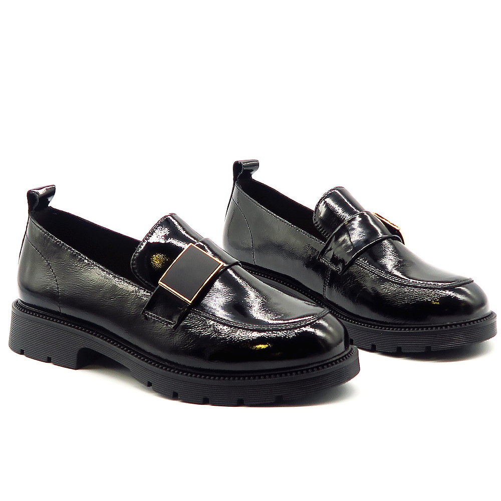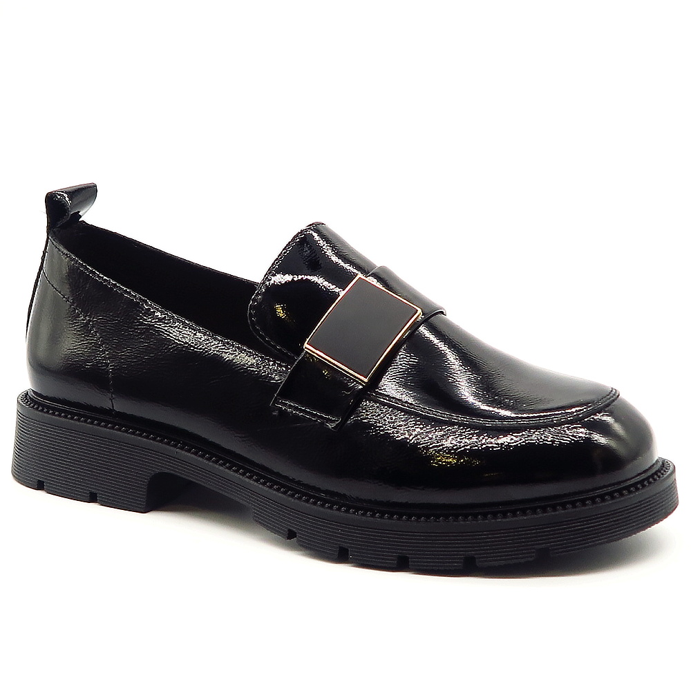 Dámske mokasíny od kvalitnej značky PASS. Model v čiernej farbe. Zvršok výrobený z prírodnej kože. Ich lakovaný vzhľad dodáva celému modelu eleganciu. Pekným doplnkom je aplikácia na narte. Výhodou tohto modelu je ich komfort, a vďaka mäkkej kože pekne sadnú na chodidlo. Topánky, ktoré určite nesklamú.