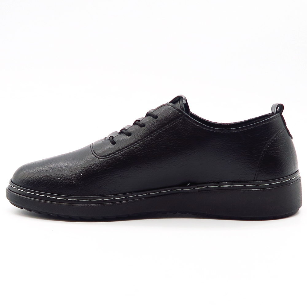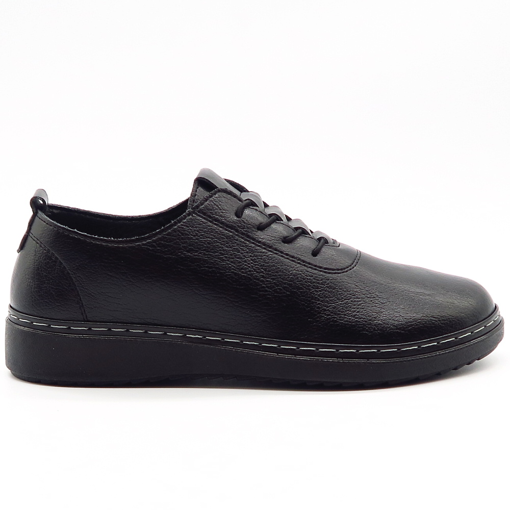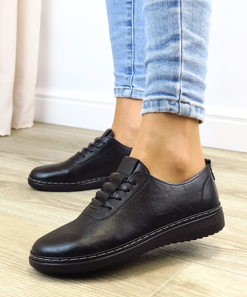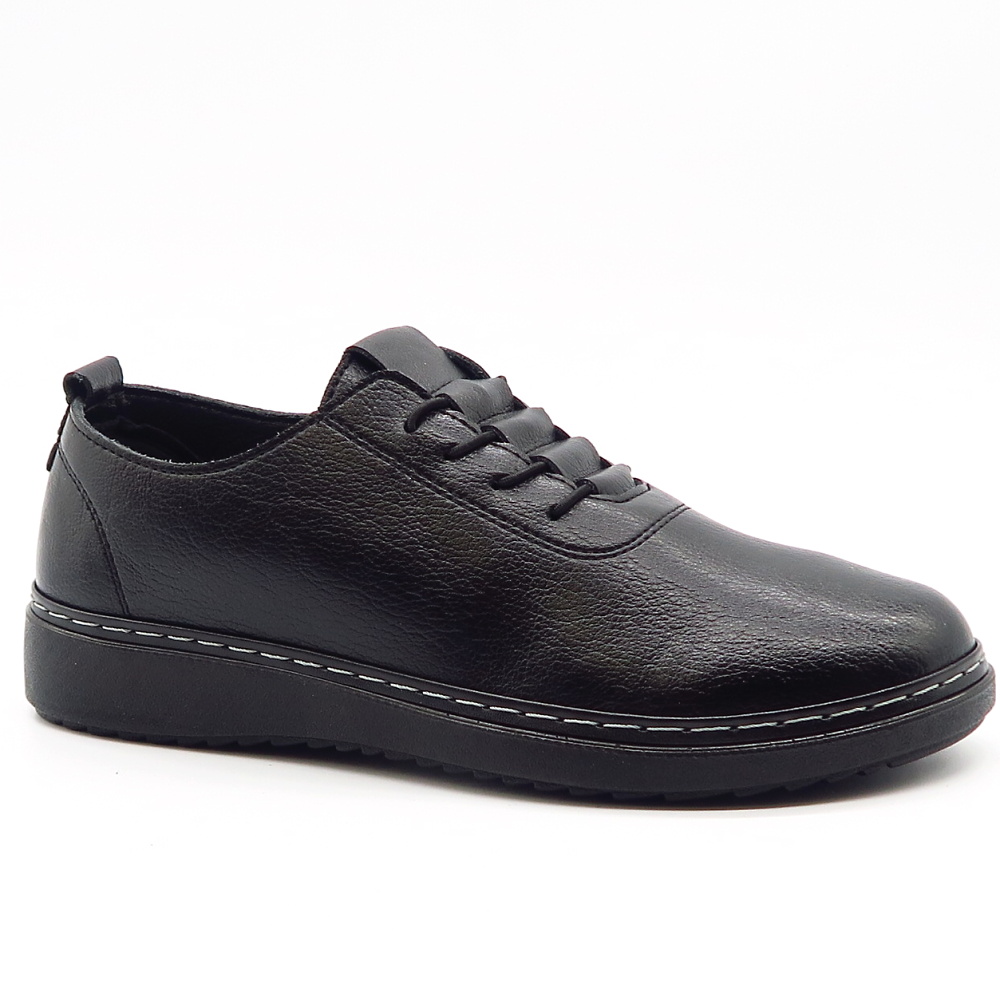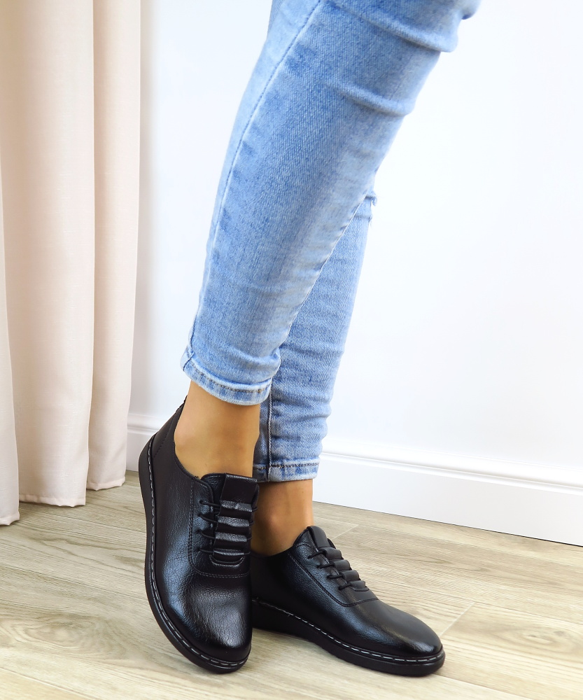 Pohodlné dámske poltopánky navrhnuté pre ženy, ktoré hľadajú spoľahlivú obuv na každý deň bez kompromisov medzi štýlom a komfortom. Zvršok vyrobený z ekologickej kože. Model v praktickej čiernej farbe. Elastické šnurovanie umožňuje rýchle obúvanie a pohodlné nosenie aj počas celého dňa. Výhodou je ich flexibilná podrážka a mäkká vnútorná stielka.
