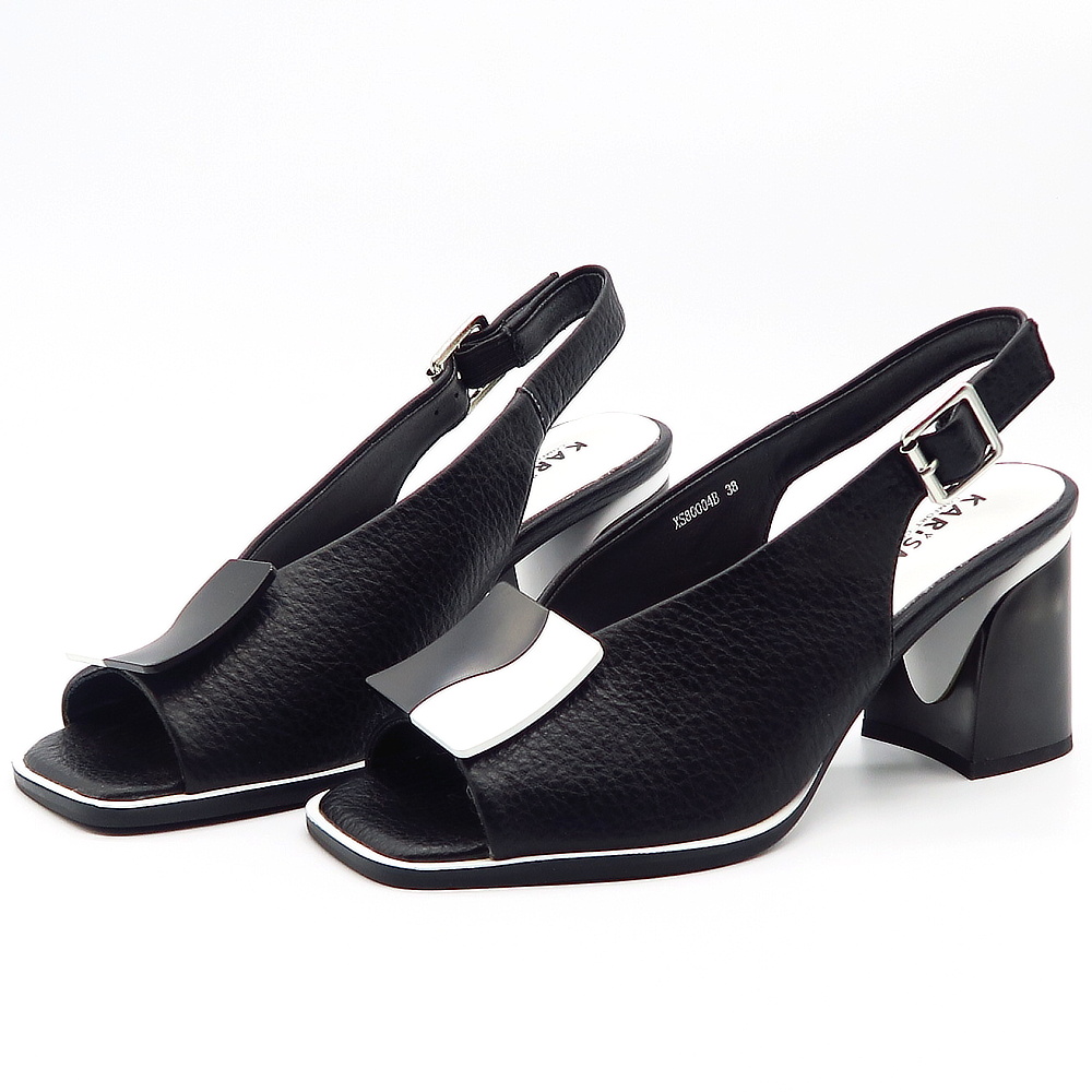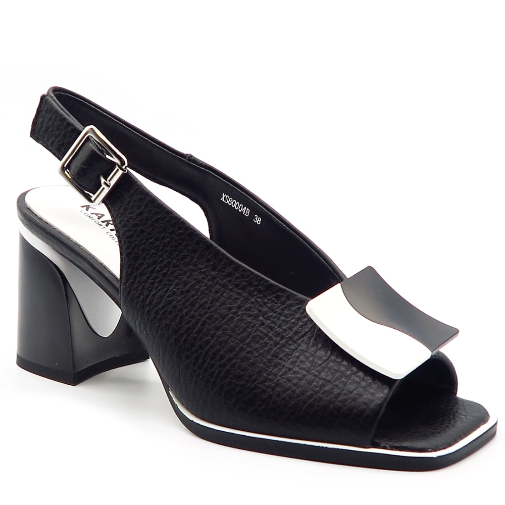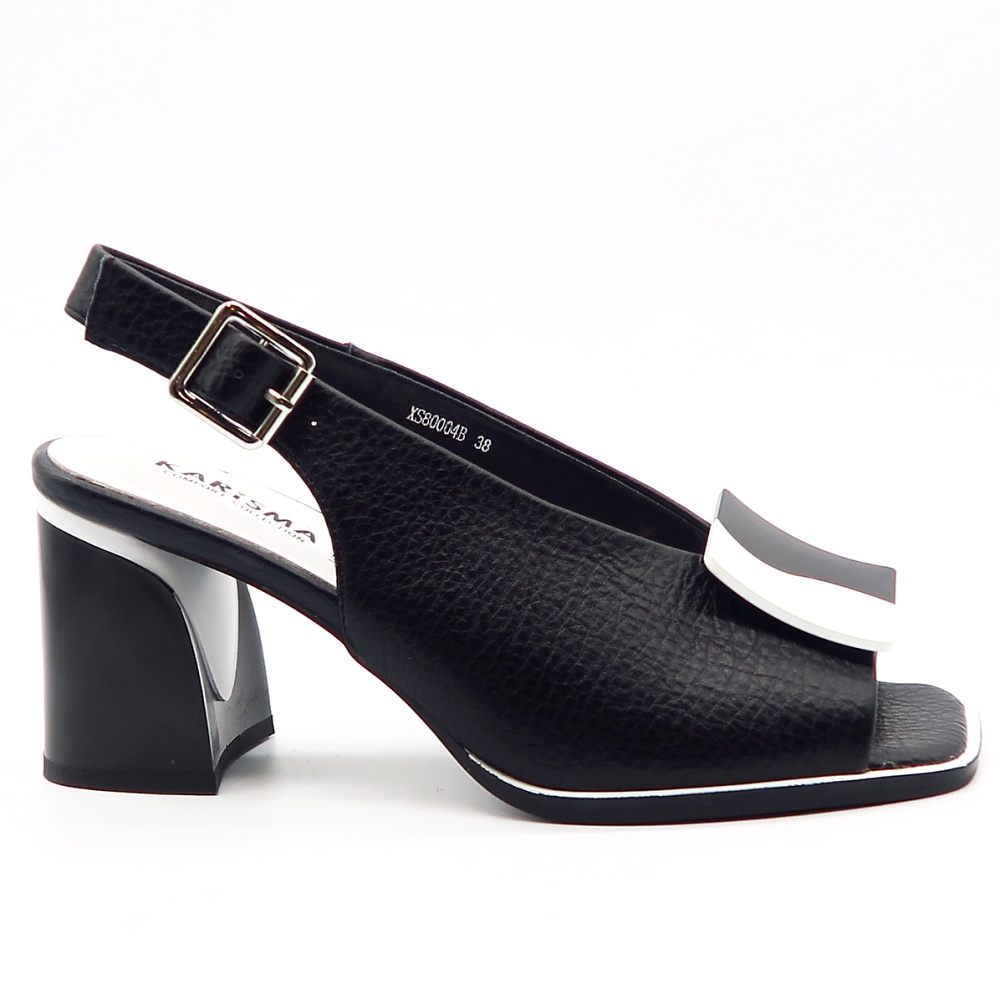 Štýlové dámske sandále, ktoré spájajú nadčasový dizajn s maximálnym komfortom. Elegantná čierna farba doplnená výrazným bielo-čiernym detailom na priehlavku vytvára originálny a sofistikovaný vzhľad, ktorý oživí každý outfit. Stabilný hrubší podpätok zabezpečuje pohodlnú chôdzu počas celého dňa aj večera. Vďaka nastaviteľnému ramienku okolo päty sa sandále dokonale prispôsobia nohe a poskytujú istotu pri každom kroku.