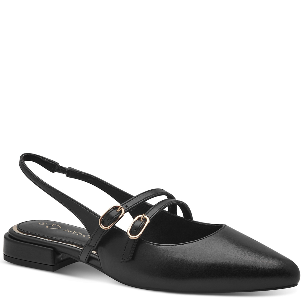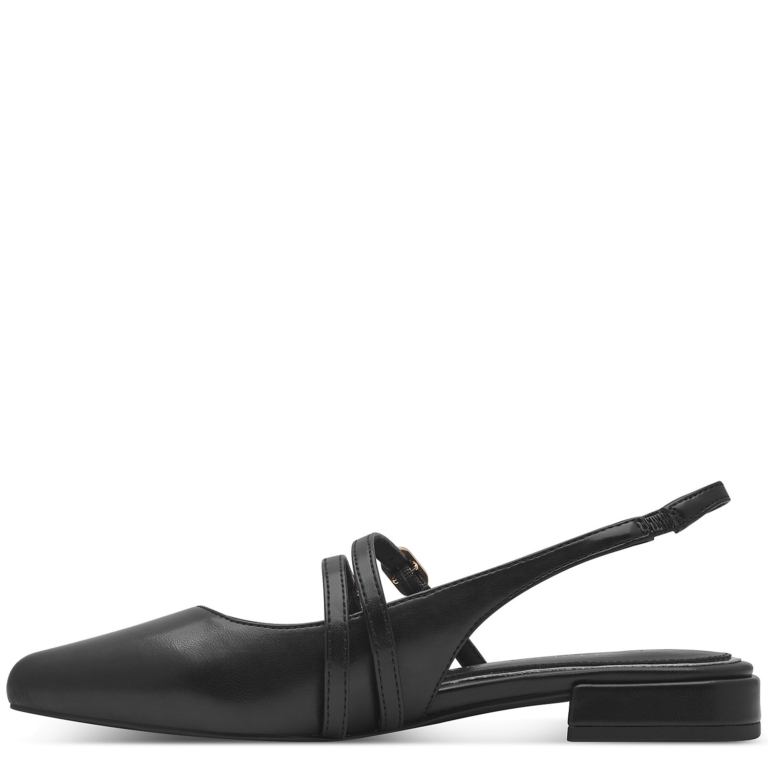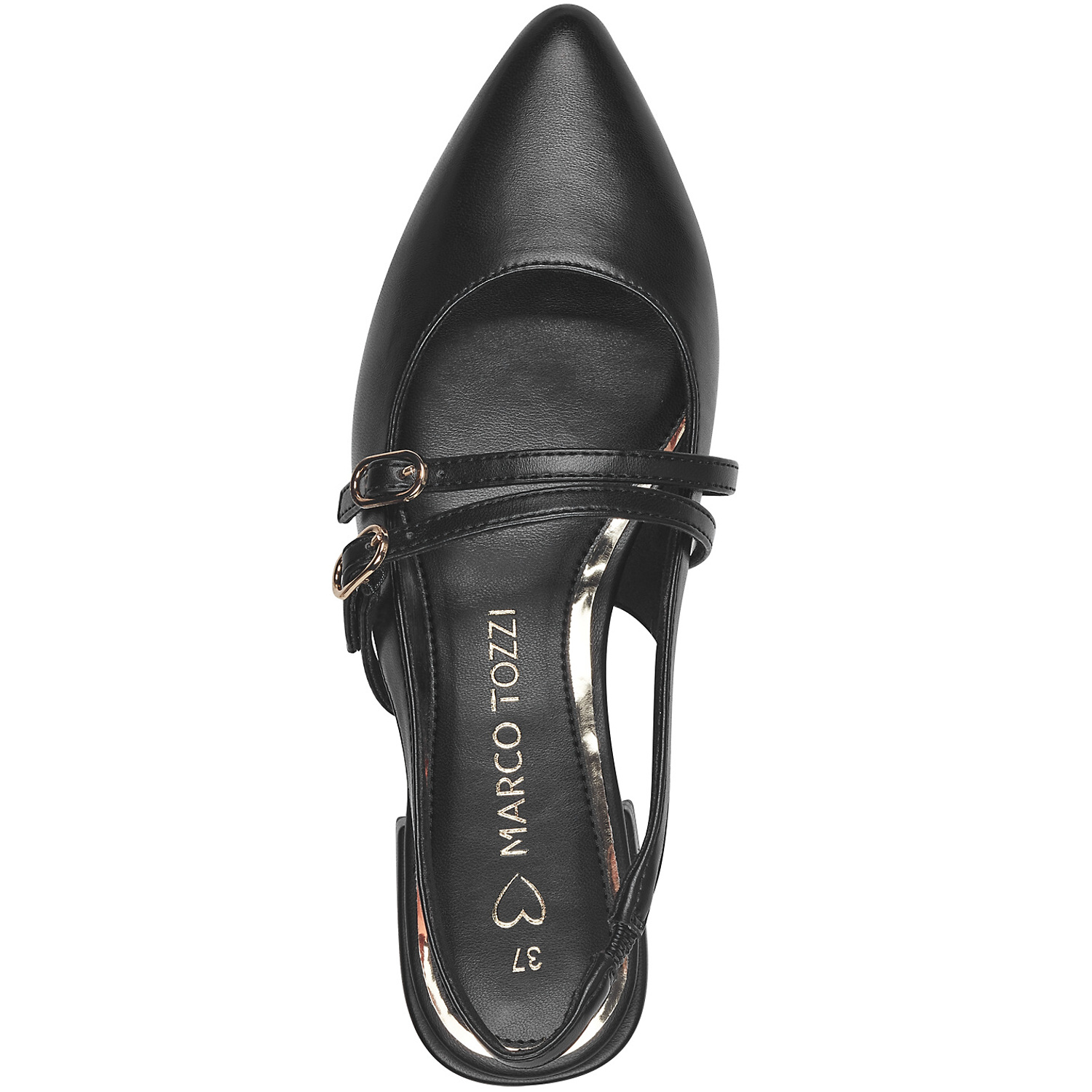 Dámske sandále od nemeckej značky MARCO TOZZI. Ak hľadáte spojenie štýlu, pohodlia tak tieto sandále budú tou správnou voľbou. Model v praktickej čiernej farbe, ktorá sa super hodí k rôznym outfitom. Dva tenké ramienka s kovovými prackami nielenže výborne držia nohu, ale zároveň pôsobia ako vkusný módny detail. Otvorená päta a nižší podpätok zaručujú pohodlie pri celodennom nosení.