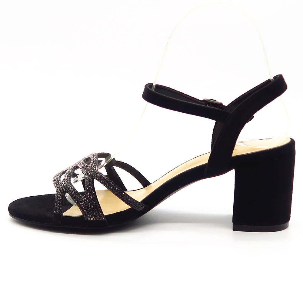 Elegantné dámske sandále na, ktoré okamžite upútajú pozornosť svojím jedinečným dizajnom. Čierne prevedenie pôsobí nadčasovo a ľahko sa kombinuje s rôznymi outfitmi. Dominantným prvkom je ozdobný ramienok na priehlavku, bohato zdobený trblietavými kamienkami, ktorý dodáva topánkam luxusný a sofistikovaný vzhľad. Stabilný, mierne rozšírený podpätok zabezpečuje pohodlie aj pri dlhšom nosení.