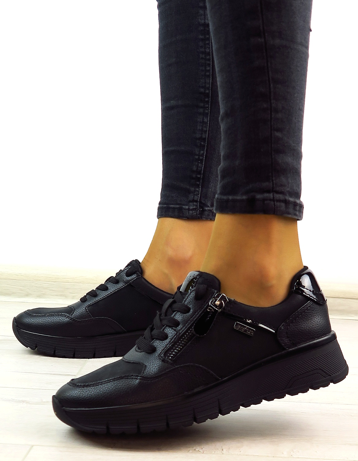Dámske sneakersy od nemeckej značky JANA. Topánky v čiernej farbe. Zvršok vyrobený z ekologickej kože. Na bočnej strane všitý zips, ktorý uľahčí obúvanie a zároveň je aj pekným doplnkom. Komfortný model na každodenné nosenie. Výhodou je ich mäkká pamäťová stielka SOFT LINE. TEX membrána Vám zaisti pocit sucha. Topánky vhodné na širšie chodidlo (kopyto H).