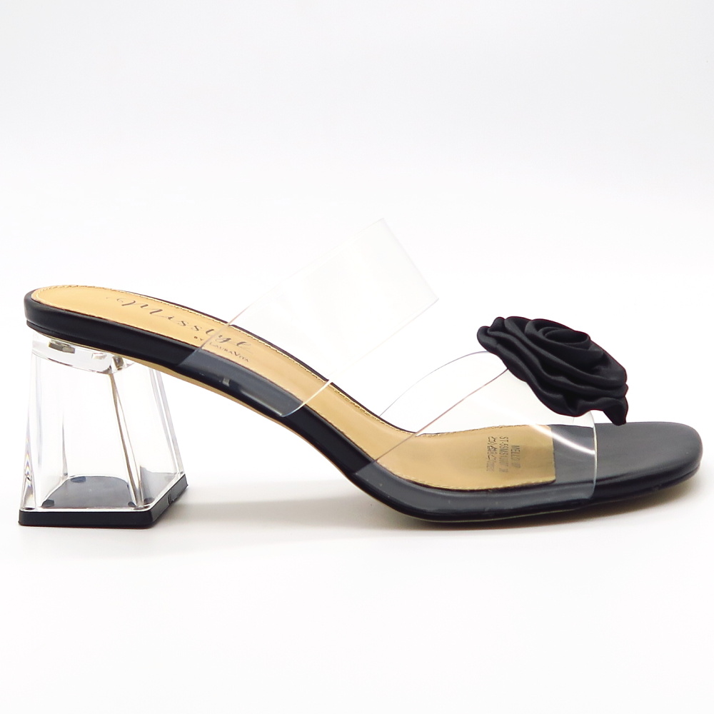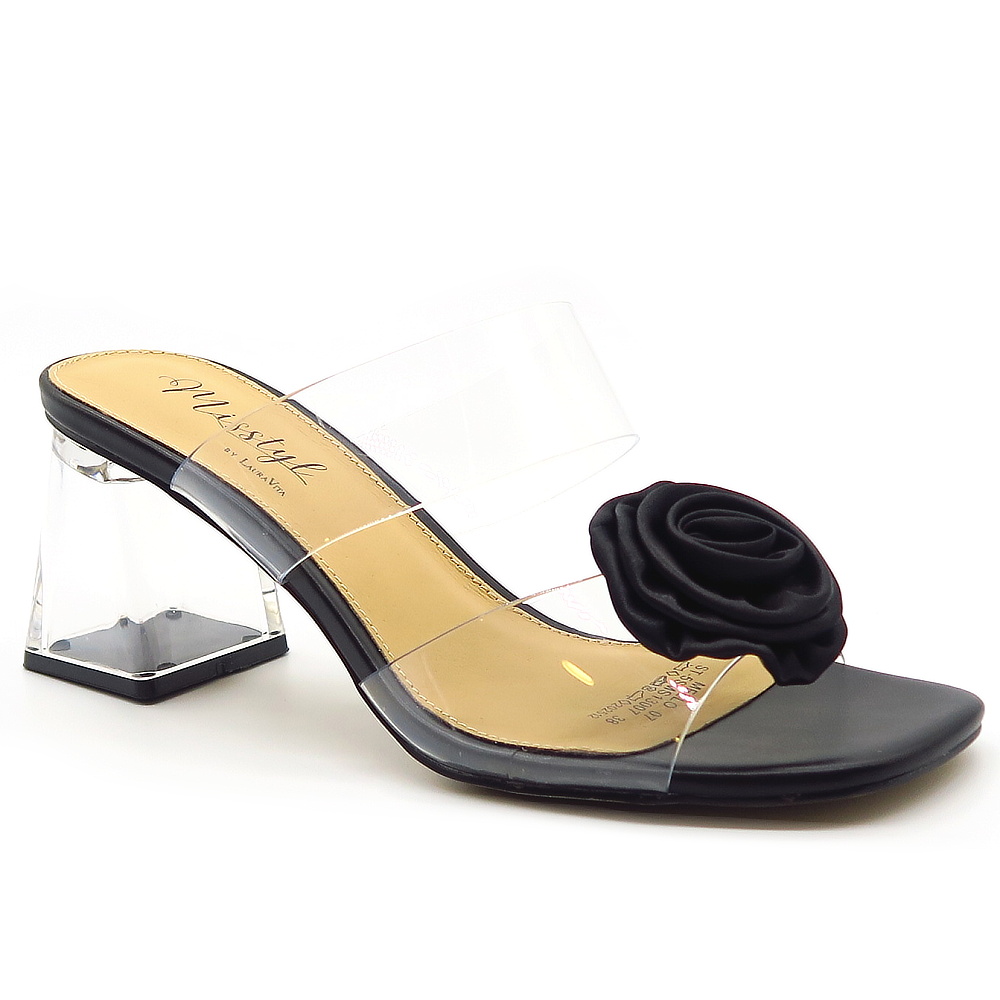 Moderné dámske sandále v minimalistickom dizajne, ktoré zaujmú kombináciou transparentných prvkov a výrazného detailu. Priehľadné pásiky opticky predlžujú nohy a dodávajú modelu ľahkosť, zatiaľ čo elegantná čierna ruža na špičke vytvára štýlový ženský akcent. Stabilný priehľadný podpätok pôsobí moderne a zároveň zabezpečuje pohodlné nosenie. Mäkká kožená stiekla sa prispôsobí chodidlu, čo oceníte pri dlhšom nosení.