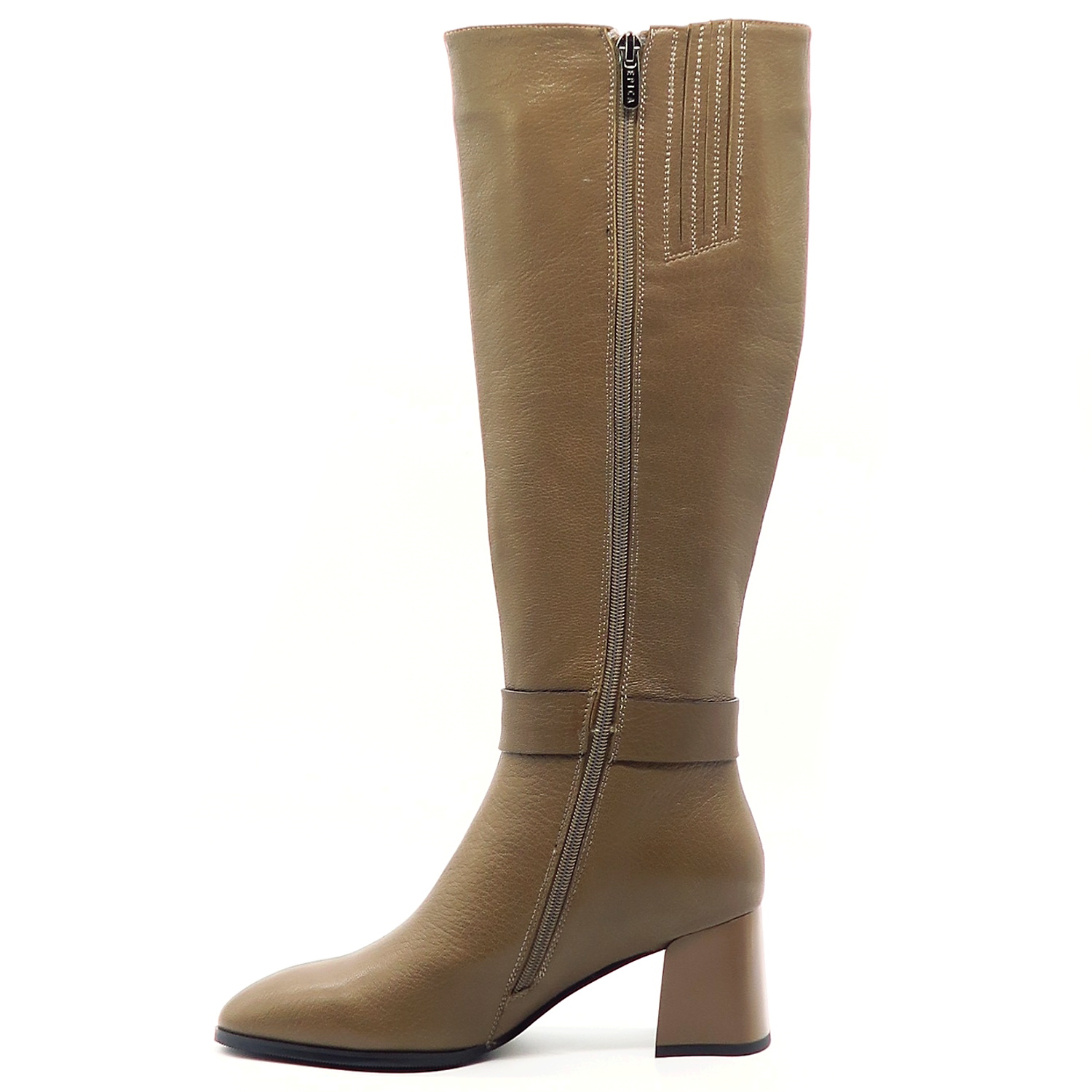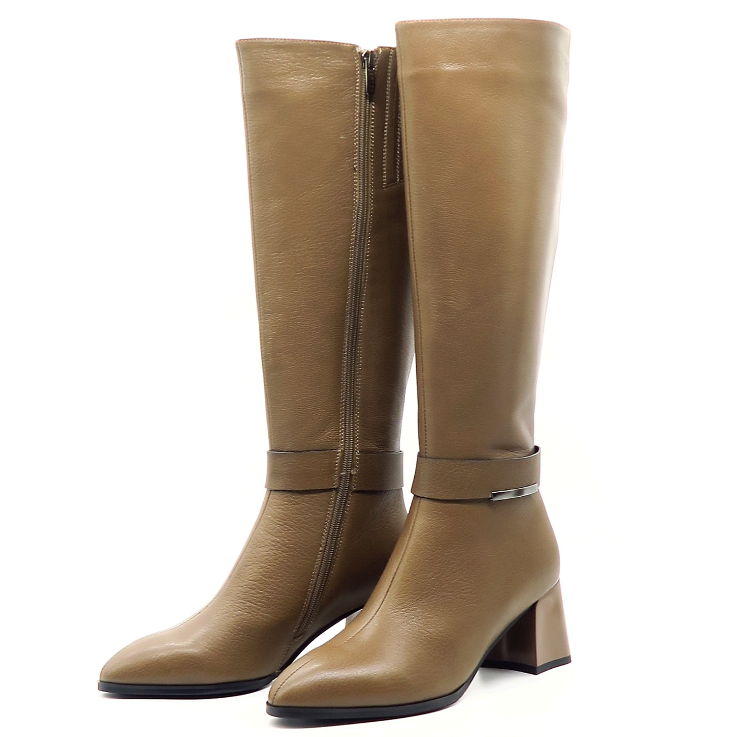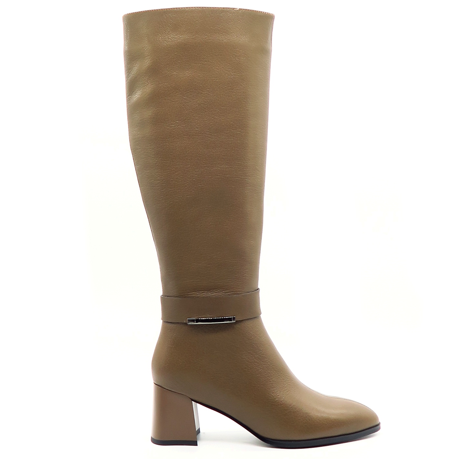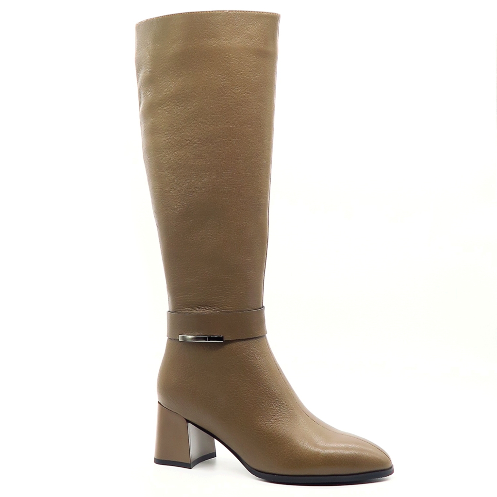 Elegantné dámske čižmy značky EPICA . Sivo-hnedý kožený zvršok vyniká svojím čistým a pekne tvarovaným strihom, ktorý krásne predĺži nohy. Vyšší stabilný podpätok dodáva postave eleganciu a zároveň poskytuje pohodlie pri chôdzi. Na boku sa nachádza decentná strieborná aplikácia, ktorá celý dizajn zvýrazni a dodá mu luxusný detail. Tieto čižmy sú ideálnou voľbou na každodenné nosenie aj do spoločnosti – dokonale doplnia sukne, šaty aj úzke nohavice.