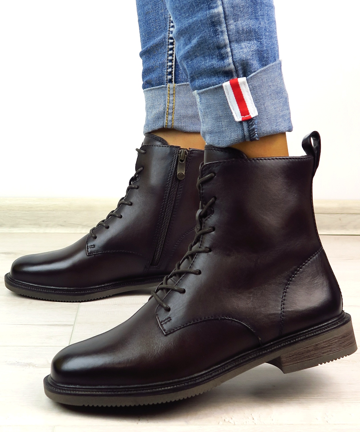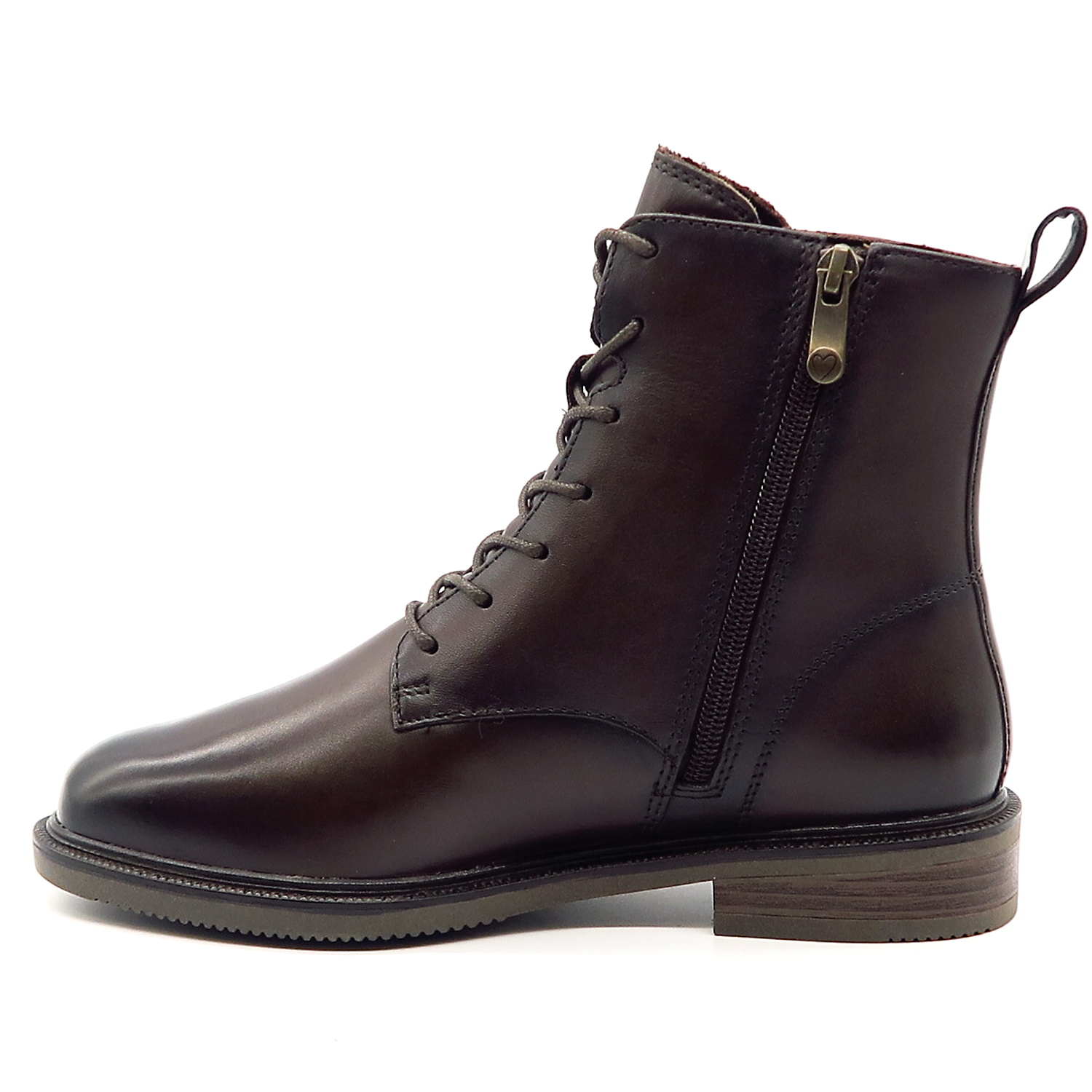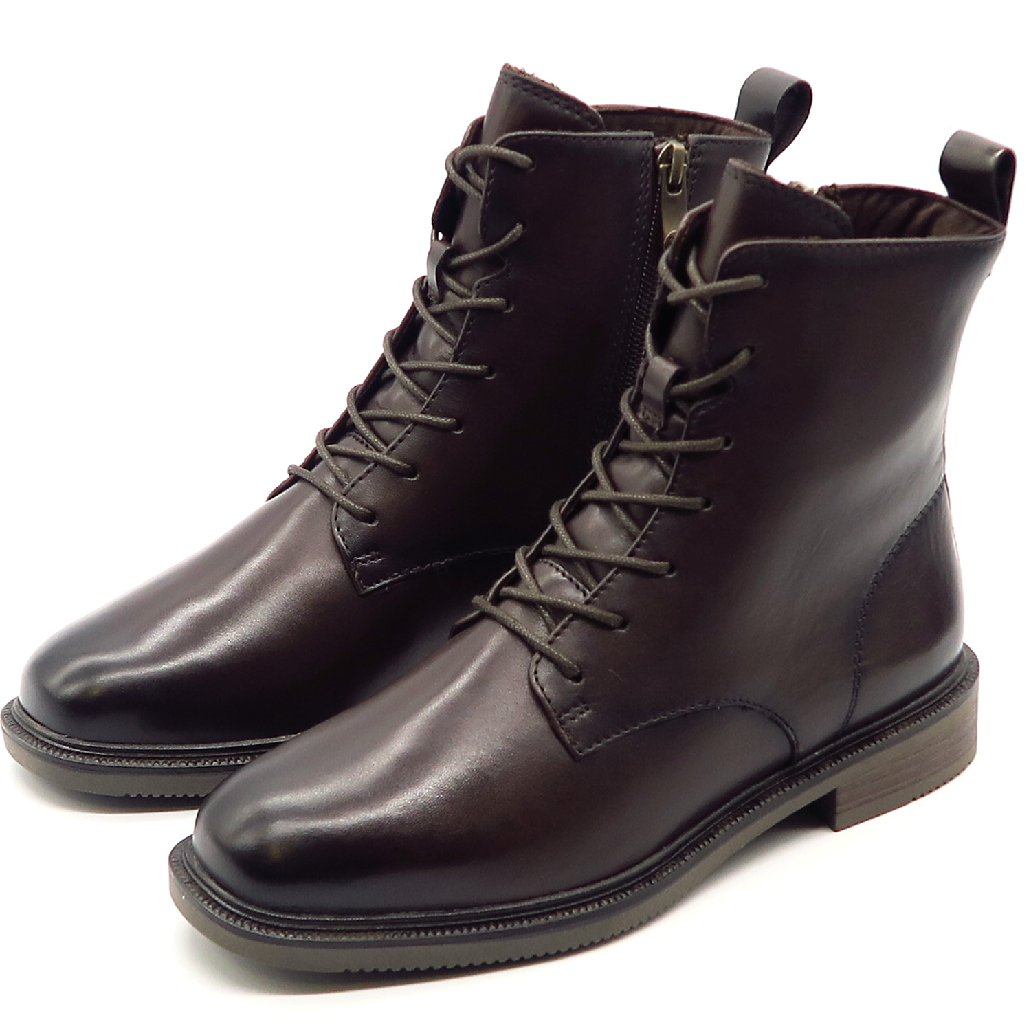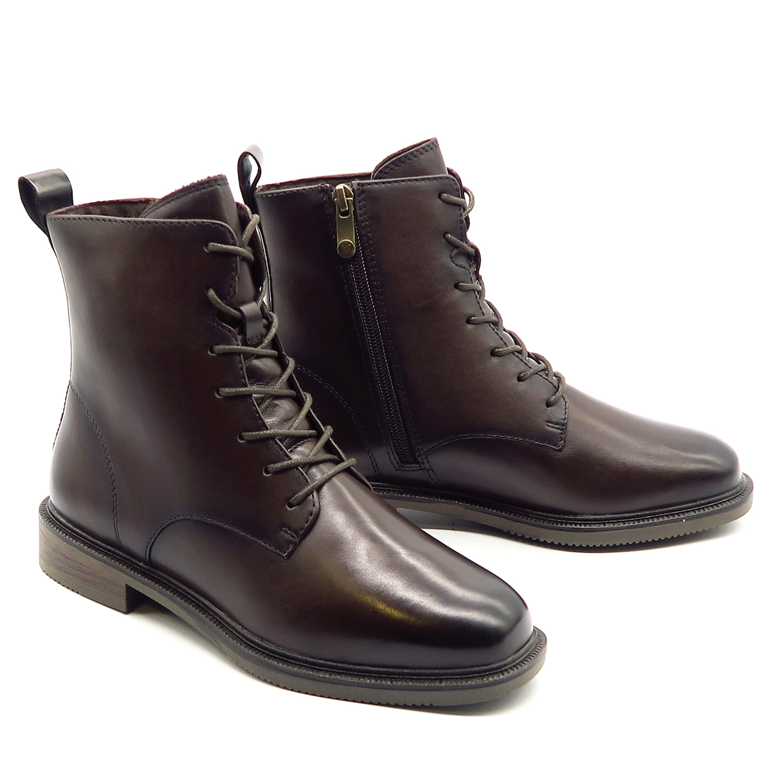 Dámske členkové topánky nemeckej značky MARCO TOZZI. Model v hnedej farbe. Zvršok vyrobený z prírodnej kože. Elegantné topánky v jednoduchom dizajne, ideálne na každodenné nosenie. Zapínanie – šnurovanie, ale aj bočný zips. Zateplené sú jemnou kožušinou. Nízky podpätok zabezpečí komfort počas celého dňa. Vďaka svojmu čistému vzhľadu a prktickosti sú tieto topánky ideálne na každodenné nosenie počas jesene aj zimy.