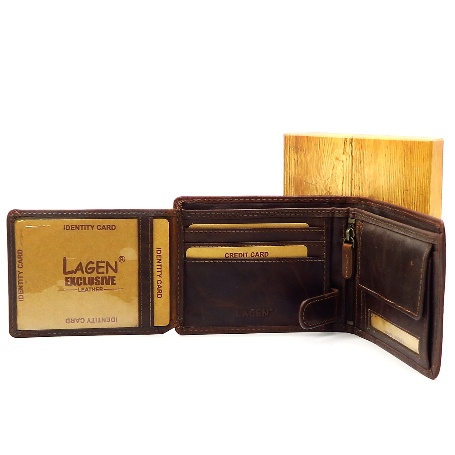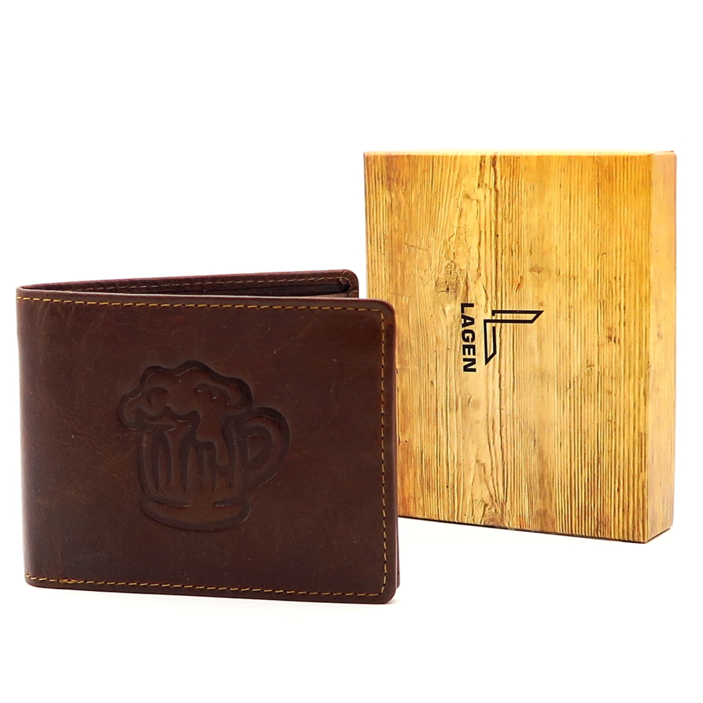 Pánska peňaženka značky LAGEN. Kvalitný model v hnedej farbe.