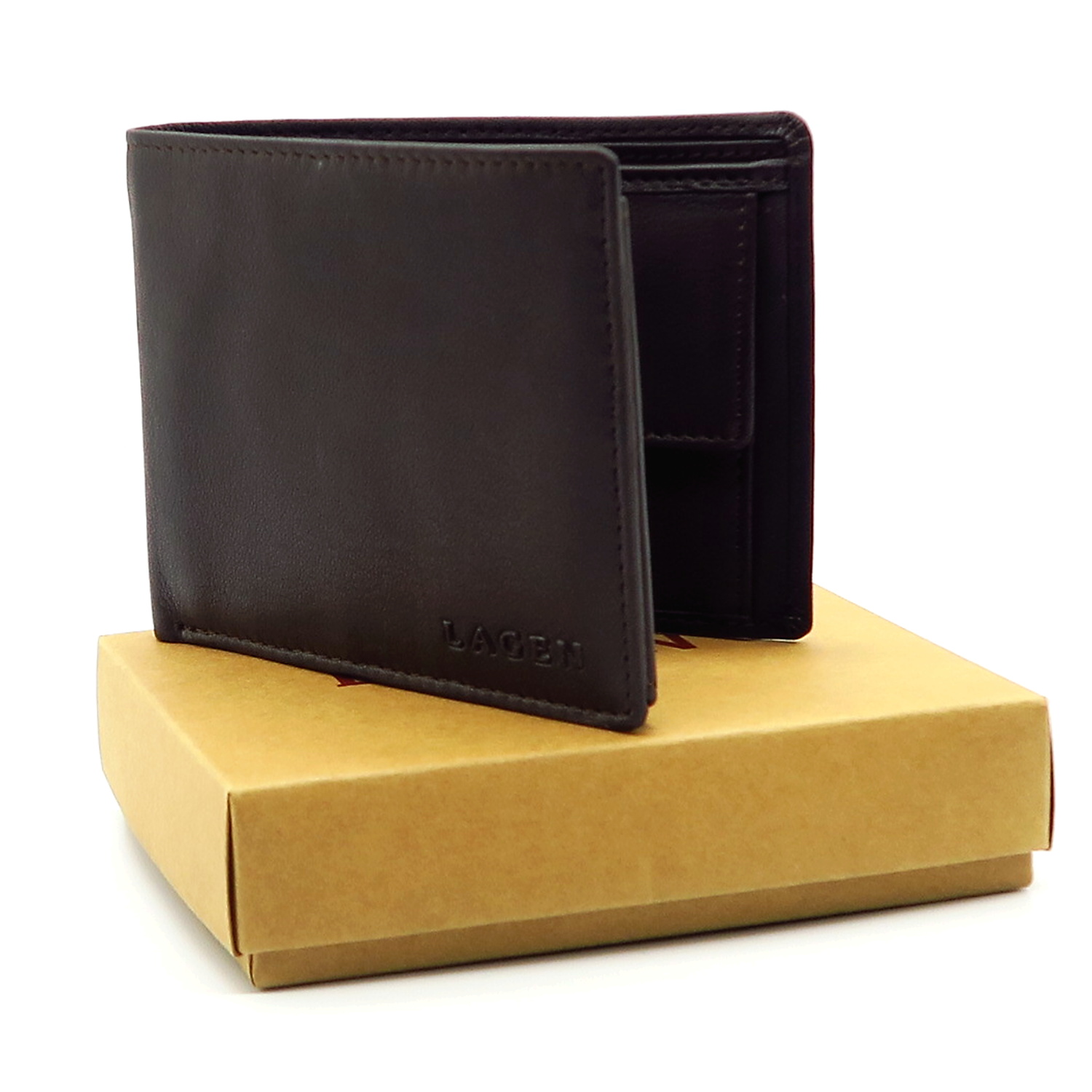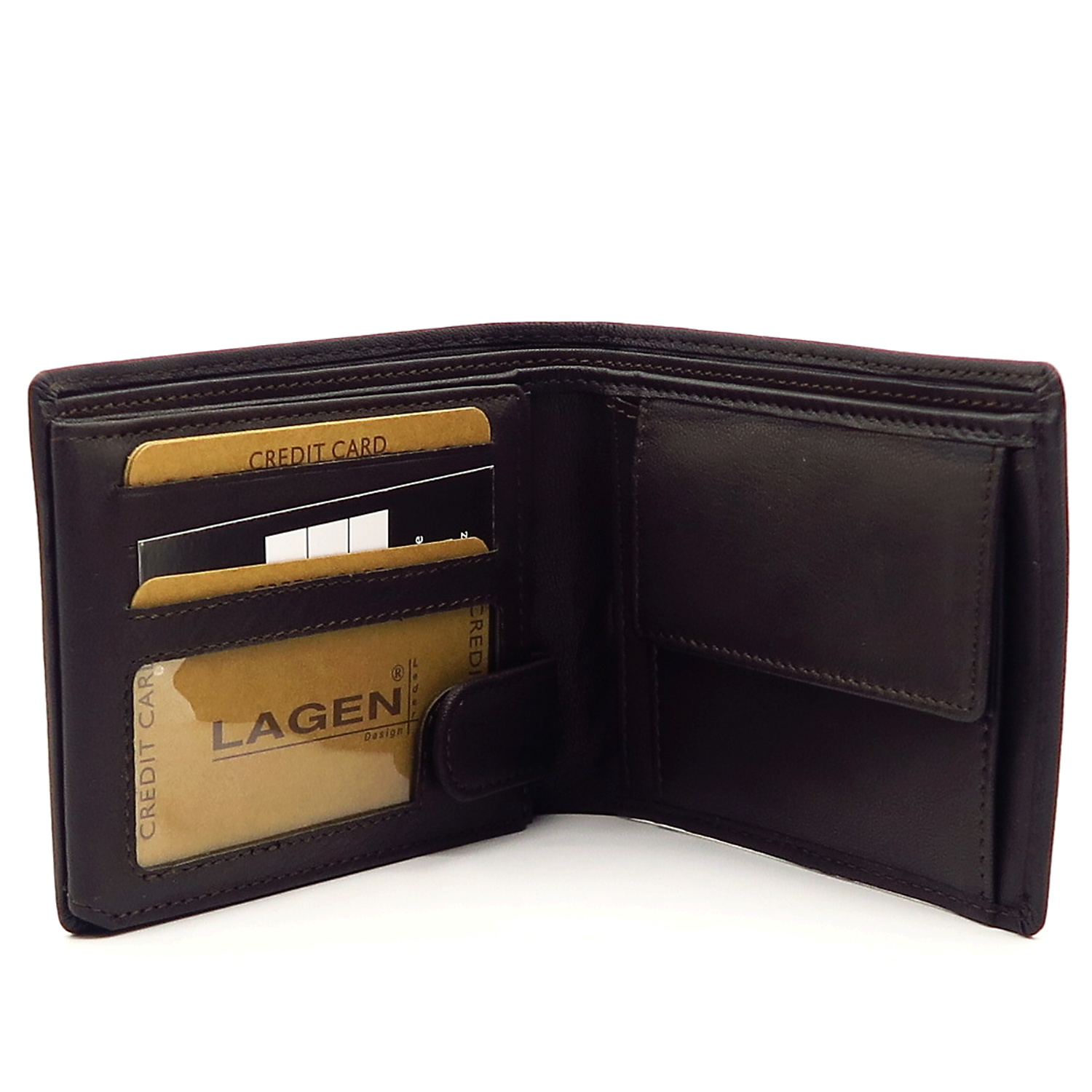 Pánska peňaženka značky LAGEN. Kožený model v hnedej farbe.